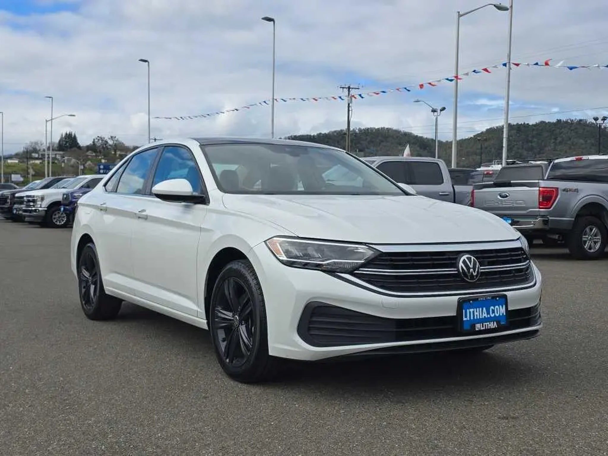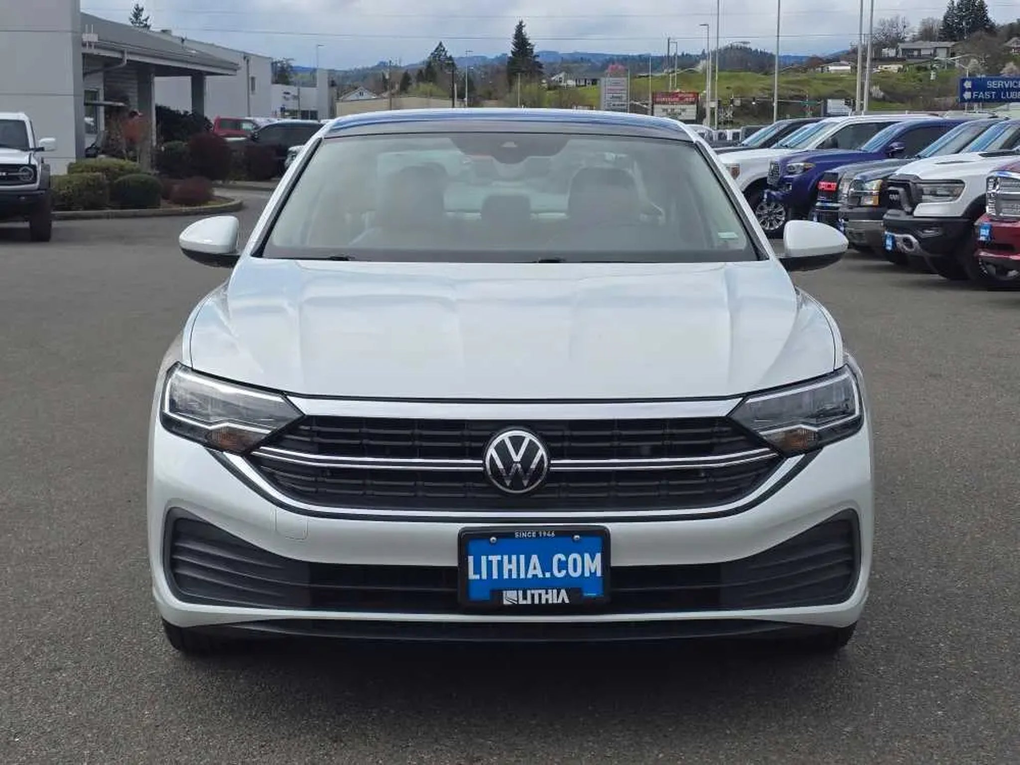 Ford Blue Certified, Carfax 1-Owner, Clean. Fuel Efficient 40 Mpg Hwy/29 Mpg City! Moonroof, Heated Seats, Brake Actuated Limited Slip Differential, Lane Keeping Assist, Cross-Traffic Alert, WiFi Hotspot, Dual Zone a/C Click Now! Key Features Include Heated Driver Seat, Back-Up Camera, iPod/MP3 Input, Onboard Communications System, Aluminum Wheels, Remote Engine Start, Dual Zone a/C, WiFi Hotspot, Cross-Traffic Alert, Lane Keeping Assist, Brake Actuated Limited Slip Differential, Blind Spot Monitor, Apple CarPlay®, Smart Device Integration, Heated Seats MP3 Player, Keyless Entry, Steering Wheel Controls, Child Safety Locks, Electronic Stability Control. Option Packages Panoramic Sunroof Package Dual Front Reading Lights, Overhead Storage Compartment, Illuminated Vanity Mirrors, Power Tilting & Sliding Panoramic Sunroof, retractable shade and wind deflector. 2023 Volkswagen Jetta with Opal White Pearl exterior and Storm Gray interior features a 4 Cylinder Engine with 158 HP at 5500 Rpm*. Non-Smoker vehicle Experts Rave Great Gas Mileage: 40 Mpg Hwy. Buy With Confidence AutoCheck One Owner Every Blue Certified used vehicle must pass a 139-point inspection, Service available at any Ford Dealer in the 50 states, and a manufacturer-backed 90-Day/4,000-Mile (whichever comes first) Comprehensive Limited Warranty, and Complimentary 24/7 Roadside Assistance, 11,000 FordPass Rewards Points to use towardscheduled maintenance visits or other rewards, Carfax Vehicle History Report included, Complimentary SiriusXM 3-month trial Our Offerings Lithia Ford of Roseburg is a Douglas County, or car dealer committed to earning customers for life. That means we respect your time, treat you like a neighbor and listen to what you are looking for and then give you straightforward information you need to make an intelligent decision.We proudly serve our neighbors in Roseburg and the surrounding I-5 corridor communities of Sutherlin, Winston, Green and even Eugene. Plus license and title, and $250 title and registration processing fee. Price does not include a charge for 0.40% Oregon Corporate Activity Tax. A 0.5% state privilege tax will be added to new vehicles. Not all sales at MSRP.