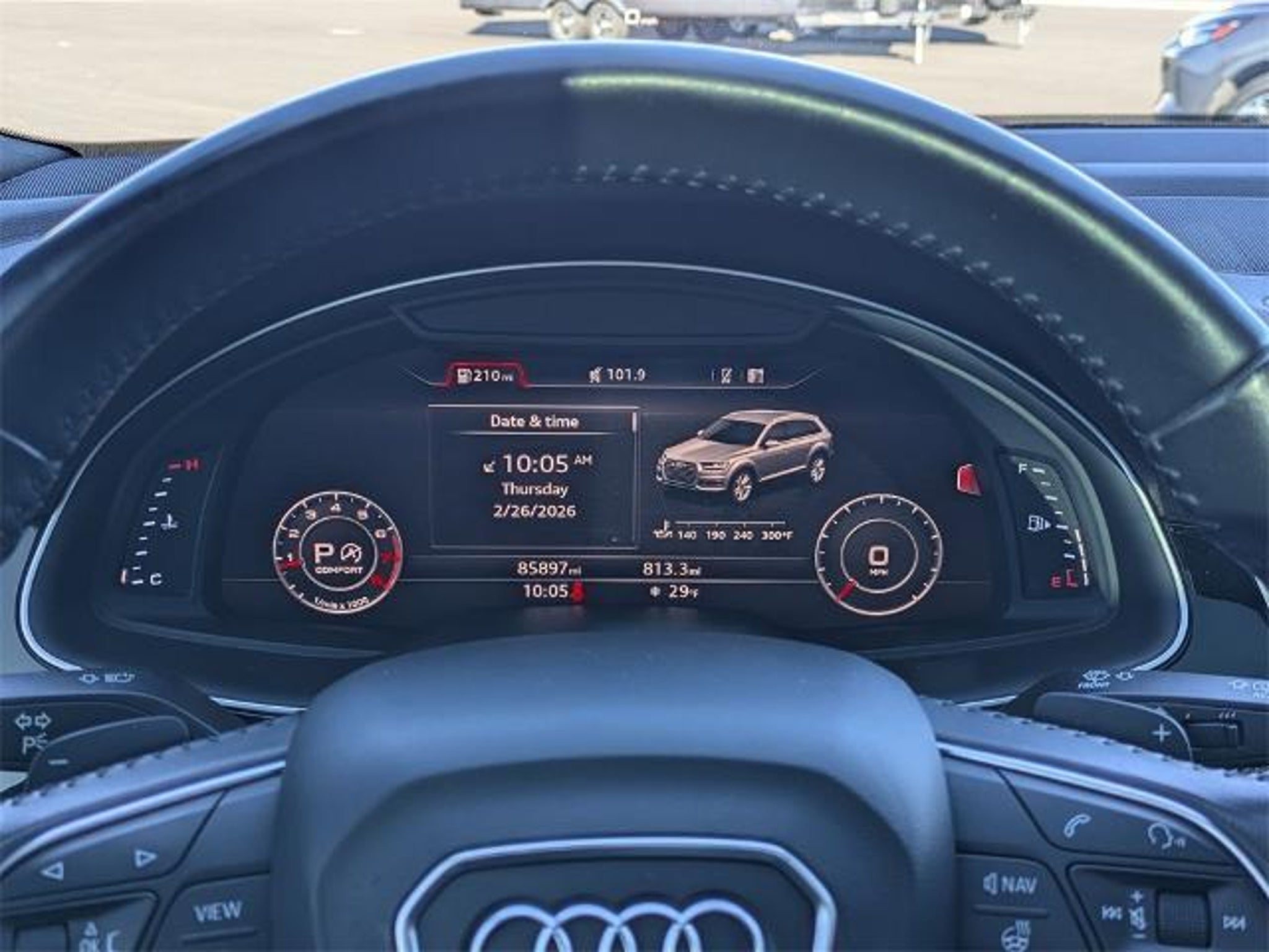 2018 Audi Q7 3.0T Prestige quattro quattro quattro 3.0L TFSI V6 DOHC 8-Speed Automatic with Tiptronic 3-Spoke Multifunction Steering Wheel w/Paddles, 3D Bose Surround Sound System, 4-Wheel Steering, Adaptive Chassis Package, Audi Active Lane Assist, Audi Adaptive Cruise Control w/Stop & Go, Audi Connect CARE, Audi Connect PRIME & PLUS, Audi MMI Navigation Plus Package, Audi MMI Navigation Plus w/MMI Touch, Audi Pre Sense Front, Audi Side Assist w/Pre Sense Rear, Audi Smartphone Interface, Black Rubber All-Weather Floor Mats (Set of 4), Cold Weather Package, Comfort Adaptive Air Suspension, Driver Assistance Package, Electric Tilt/Telescopic Steering Column w/Memory, Head-Up Display, Heated Auto-Dimming Power Folding Exterior Mirrors, Heated Rear Seats, High-Beam Assistant, LED Interior Lighting Package, LED Interior Lighting Package Plus, Power Closing Doors, Prestige Package, Traffic Sign Recognition, Vision Package, Warm Weather Package, Wheels: 20 10-Spoke-Star Design Bi-Color. Check out all these great options! Adaptive Chassis Package (4-Wheel Steering and Comfort Adaptive Air Suspension), Audi MMI Navigation Plus Package (Audi Connect CARE, Audi Connect PRIME & PLUS, Audi MMI Navigation Plus w/MMI Touch, and Audi Smartphone Interface), Cold Weather Package (3-Spoke Multifunction Steering Wheel w/Paddles, Black Rubber All-Weather Floor Mats (Set of 4), and Heated Rear Seats), Driver Assistance Package (Audi Active Lane Assist, Audi Adaptive Cruise Control w/Stop & Go, Audi Pre Sense Front, High-Beam Assistant, and Traffic Sign Recognition), LED Interior Lighting Package, LED Interior Lighting Package Plus, Prestige Package (3D Bose Surround Sound System, Audi Side Assist w/Pre Sense Rear, Electric Tilt/Telescopic Steering Column w/Memory, Head-Up Display, Heated Auto-Dimming Power Folding Exterior Mirrors, Power Closing Doors, and Wheels: 20 10-Spoke-Star Design Bi-Color), Vision Package (Audi Virtual Cockpit, Full LED Headlights, and Topview Camera System), Warm Weather Package (4-Zone Automatic Climate Control, Driver & Passenger Front Seats w/Ventilation, and Manual Window Shades For Rear Doors & Tailgate), Towing Package, 10 Speakers, 3.204 Axle Ratio, 3rd row seats: bench, 4-Wheel Disc Brakes, ABS brakes, Air Conditioning, Alloy wheels, AM/FM radio: SiriusXM, Audi Beam-Rings, Audi Guard Cargo Mat, Audi Travel Space Base Carrier Bars, Auto-dimming Rear-View mirror, Automatic temperature control, Black Cloth Headliner, Brake assist, Bumpers: body-color, CD player, Compass, Delay-off headlights, DE