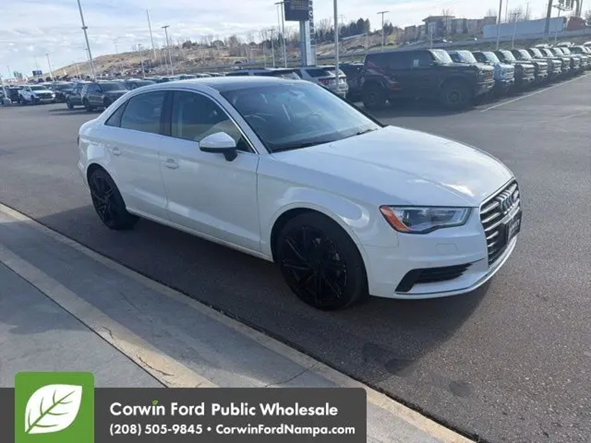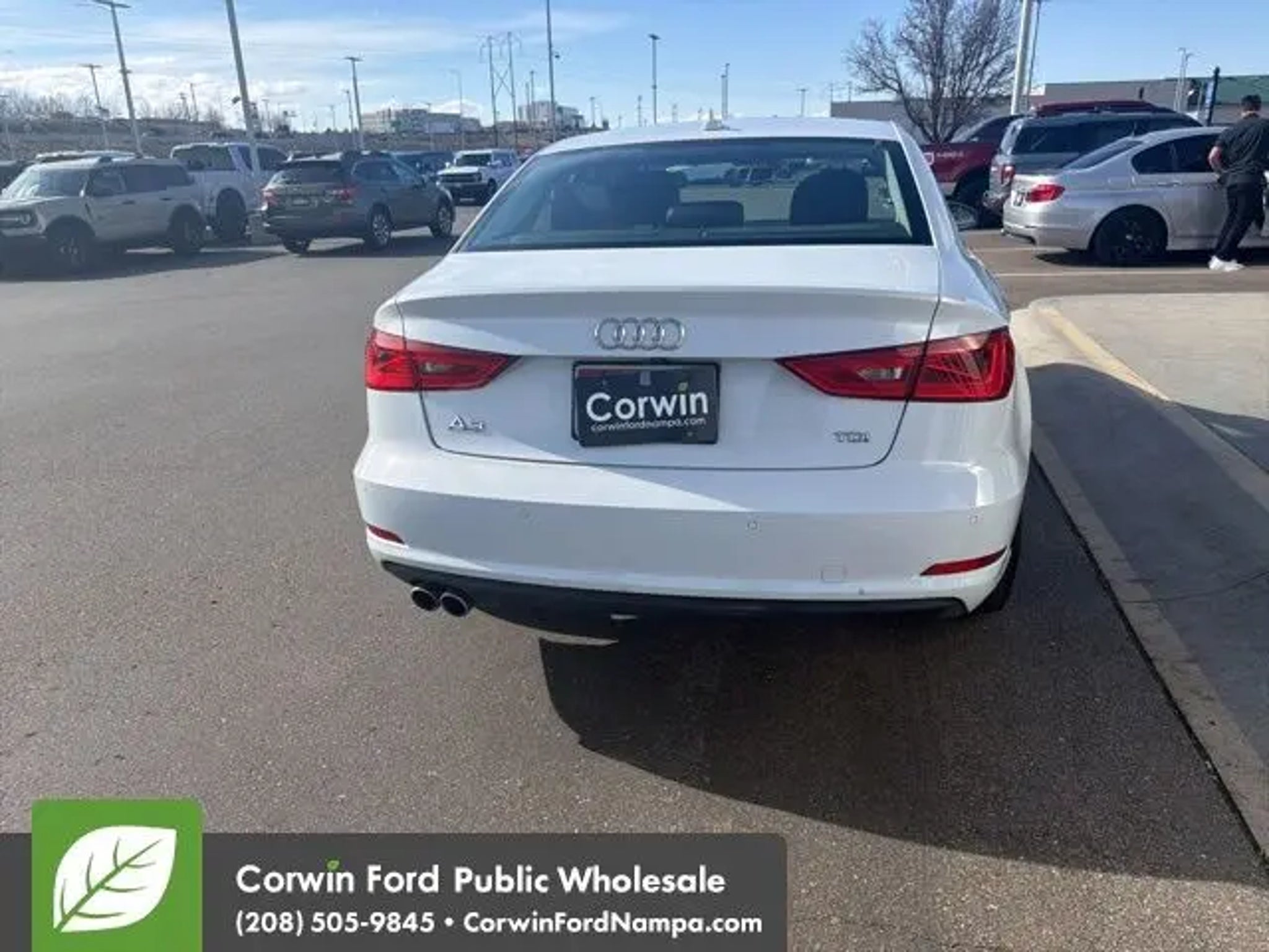 Our stylish 2015 Audi A3 2.0 TDI Premium Plus Sedan comes to you in Glacier White Metallic. Powered by a TurboCharged 2.0 Liter 4 Cylinder Diesel delivering 150hp tethered to a 6 Speed Automatic transmission to send you to 60mph in 8.1 seconds. This Front Wheel Drive compact luxury sedan will wow you with its responsive handling while you appreciate its ability to earn you up to 43mpg on the highway and relax you with a smooth ride. Our A3 also stands out with svelte styling highlighted by a panoramic sunroof, HID headlamps, LED daytime running lights, and multi-spoke alloy wheels. Our A3 Premium Plus' interior pampers you on long drives and offers remarkable versatility thanks to split-folding rear seats and a huge trunk. Some of the many amenities on hand include heated power leather front seats, a multi-function steering wheel, keyless entry/ignition, and dual-zone automatic climate control. Additionally, the full-color MMI infotainment system with Bluetooth®, HD/available satellite radio, an SD card reader, a USB input with iPod integration, and a superb sound system for your entertainment needs. Our Audi provides confidence and peace of mind with a range of innovative safety technologies. Rain-sensing windshield wipers, advanced airbags, ABS, and stability/traction control are just a few of the features that help keep you safe and secure. Our A3 Premium Plus is a fantastic sedan! Save this Page and Call for Availability. We Know You Will Enjoy Your Test Drive Towards Ownership! Corwin Ford Nampa! Friendly service and aggressive pricing is why we are your new and pre-owned vehicle dealer serving, Nampa, Boise, Meridian, Caldwell, Kuna, Eagle, Emmett, Idaho City, Wilder, New Plymouth, Star, Middleton, Weiser, Payette, Horseshoe Bend, Mountain Home, Idaho, and surrounding states.