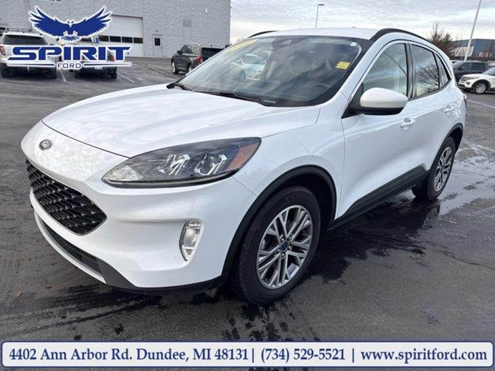 26/31 City/Highway MPGOxford White2022 Ford Escape SEL AWD8-Speed Automatic1.5L EcoBoost I-3Clean Carfax 1-Owner, Local Trade!, Not a Rental Vehicle, HEATED SEATS, Balance of Manufacture Warranty Remaining, BLUETOOTH, HANDS FREE, Keyless Ignition/Push Button Start, LEATHER SEATS, Escape SEL, 4D Sport Utility, 1.5L EcoBoost I-3, 8-Speed Automatic, AWD, Oxford White, Ebony w/Heated ActiveX Trimmed Front Sport Contour Bucket Seats, 3.81 Axle Ratio, Equipment Group 301A.CARFAX One-Owner.Odometer is 23698 miles below market average! 26/31 City/Highway MPGLocated directly adjacent to US-23 at Exit 17. Spirit Ford is conveniently located just 15 minutes from Monroe, Ann Arbor and Toledo. We are just across the street from the largest Cabela's store in the state. Please call or visit us today at (734) 529-5521 for more information on this vehicle.Open 24 hours at www.spiritfordofdundee.com. Spirit Ford serves all nearby cities including Milan, Monroe, Deerfield, Britton, Tecumseh, Carleton, Sylvania, Toledo, Ann Arbor, Ypsilanti, Adrian, Temperance, Lambertville, Petersburg, Saline, Maybee and Erie.