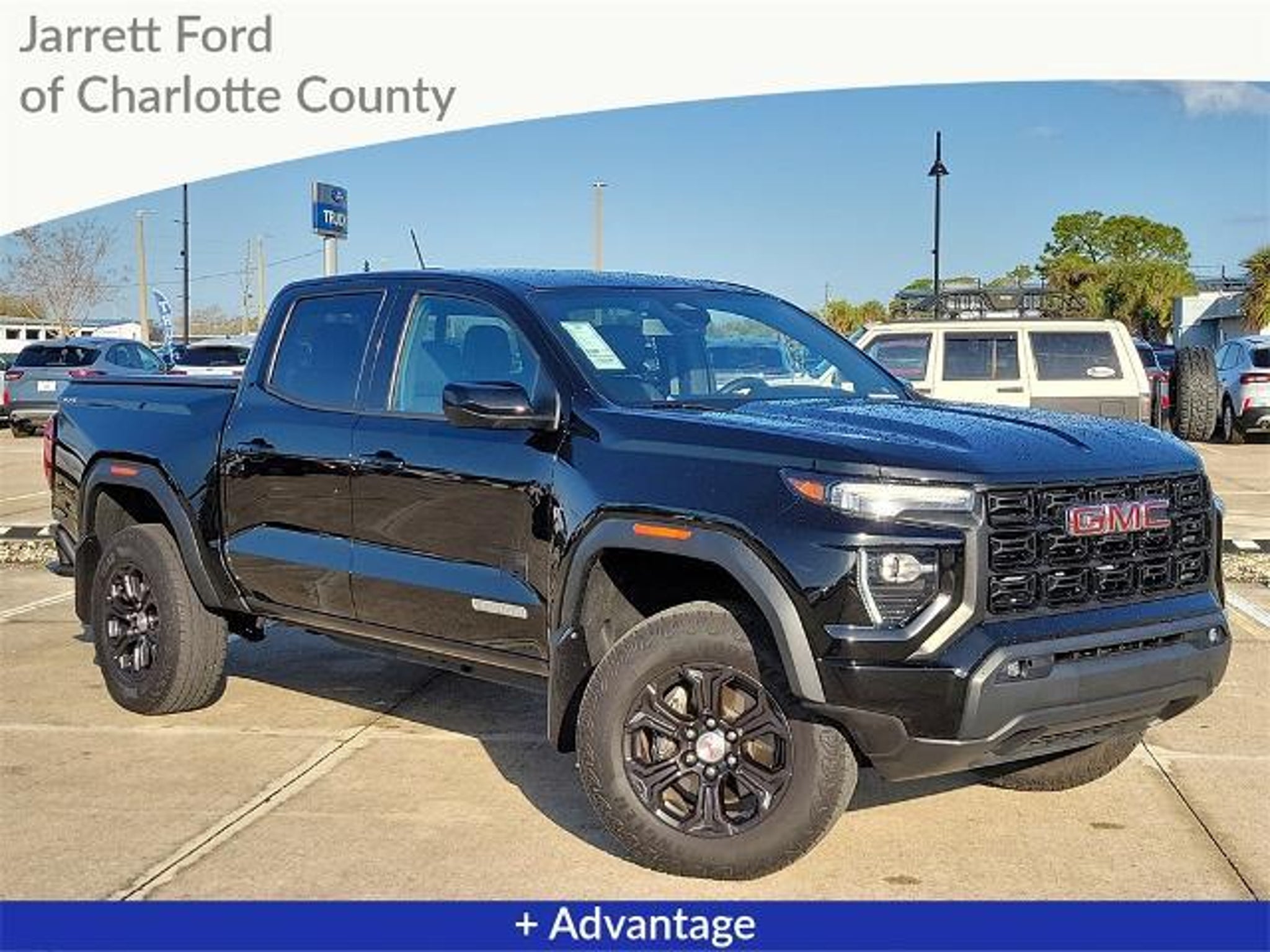 Big news at Jarrett Ford of Charlotte County! We've just received a stunning Onyx Black 2023 GMC Canyon Elevation. This beast is ready to tackle any terrain with its 4WD capability and powerful 2.7L Turbo engine. Imagine cruising down the highway, effortlessly shifting gears with the smooth 8-Speed Automatic transmission. Whether you're heading to work or embarking on a weekend adventure, this Canyon Elevation has got you covered. The sleek Onyx Black exterior turns heads wherever it goes, while the Elevation trim adds a touch of sophistication to this rugged pickup. It's the perfect blend of style and substance. As a recent arrival, this GMC Canyon is sure to attract attention. If you're in the market for a versatile and stylish pickup, this could be the one you've been waiting for!