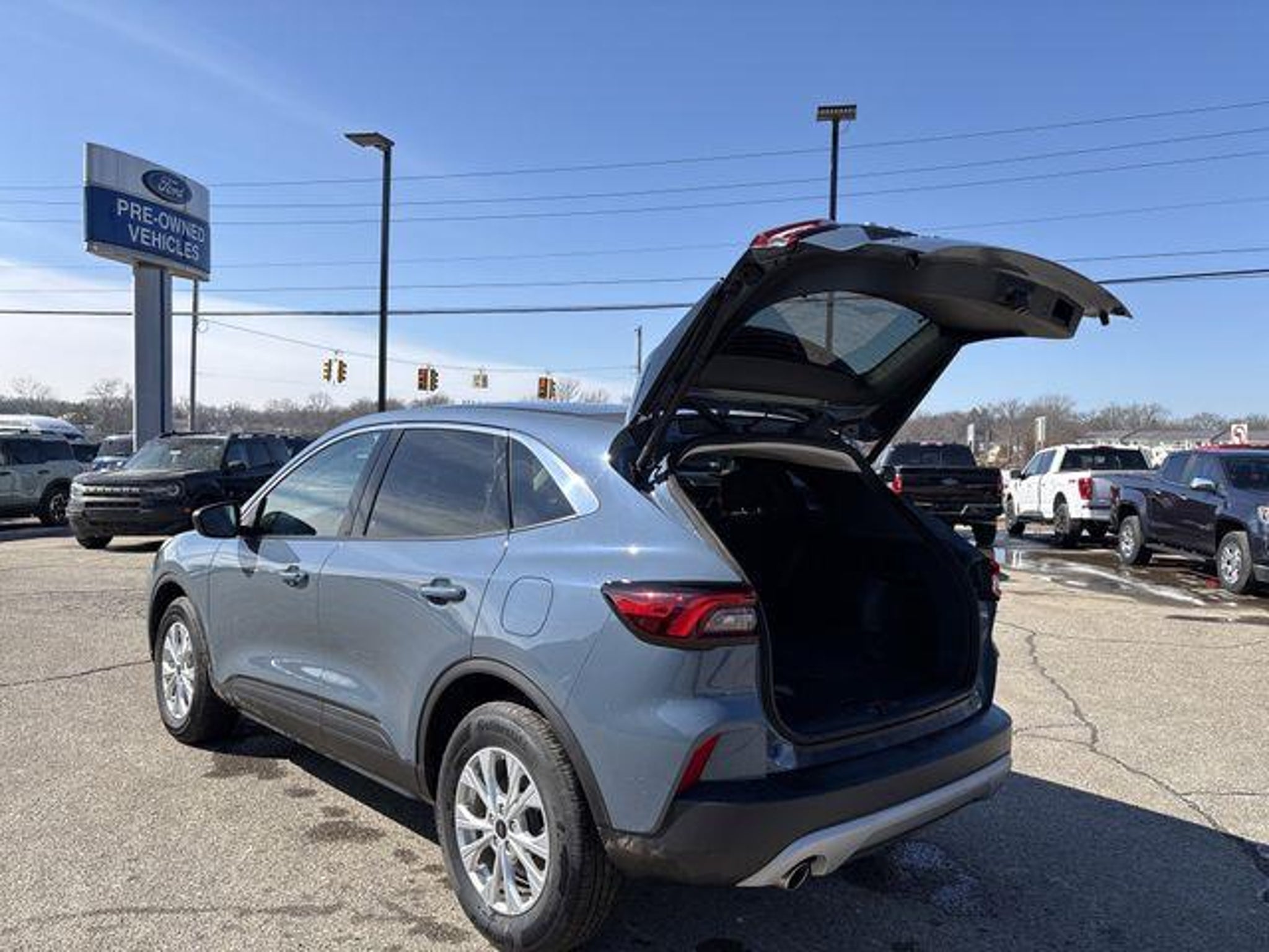 AWD. Certified. 2024 Ford Escape Active Vapor Blue Metallic Cold Weather Package (Heated Front Row Seats, Heated Sideview Mirrors, Heated Steering Wheel, and Remote Starter System), Equipment Group 200A, Ford Blue Certified Certified, AWD, 3.81 Axle Ratio, 4-Wheel Disc Brakes, 6 Speakers, ABS brakes, Air Conditioning, Alloy wheels, AM/FM radio: SiriusXM, AM/FM Stereo, Auto High-beam Headlights, Automatic temperature control, Brake assist, Bumpers: body-color, Compass, Delay-off headlights, Driver door bin, Driver vanity mirror, Dual front impact airbags, Dual front side impact airbags, Electronic Stability Control, Emergency communication system: SYNC 4 911 Assist, Exterior Parking Camera Rear, FordPass Connect, Four wheel independent suspension, Front & Rear Floor Liners w/Carpet Mats, Front anti-roll bar, Front Bucket Seats, Front Center Armrest, Front dual zone A/C, Front reading lights, Fully automatic headlights, Illuminated entry, Knee airbag, Low tire pressure warning, Occupant sensing airbag, Outside temperature display, Overhead airbag, Overhead console, Panic alarm, Passenger door bin, Passenger vanity mirror, Power door mirrors, Power driver seat, Power Liftgate, Power steering, Power windows, Radio data system, Rear anti-roll bar, Rear reading lights, Rear seat center armrest, Rear window defroster, Rear window wiper, Remote keyless entry, Speed control, Speed-sensing steering, Speed-Sensitive Wipers, Split folding rear seat, Spoiler, Steering wheel mounted audio controls, SYNC 4, Tachometer, Telescoping steering wheel, Tilt steering wheel, Traction control, Trip computer, Unique Cloth Front Bucket Seats, Variably intermittent wipers, and Wheels: 17 Shadow Silver-Painted Aluminum. Odometer is 9338 miles below market average! 26/32 City/Highway MPG Skalnek Ford has made several enhancements to our dealership sales practices to continue providing our customers the service and experience they deserve. Ability for complete online shopping experience with the new ExpressQuote shopping tool. Remote e-contracting for most vehicle transactions available. Value your trade online with KBB Instant Cash Offer. Our dedicated and professional sales staff is always waiting via phone, text, or chat to assist you.