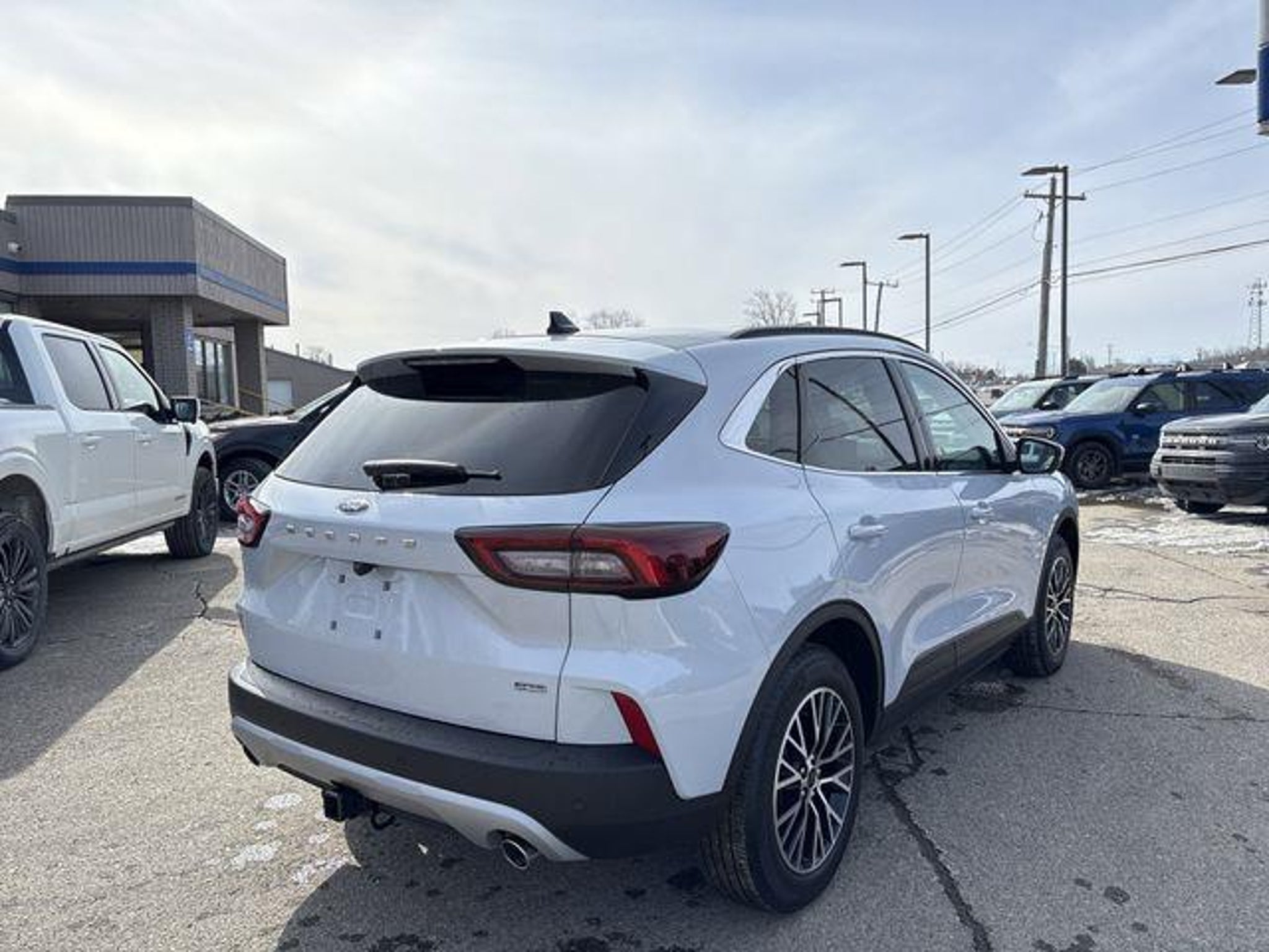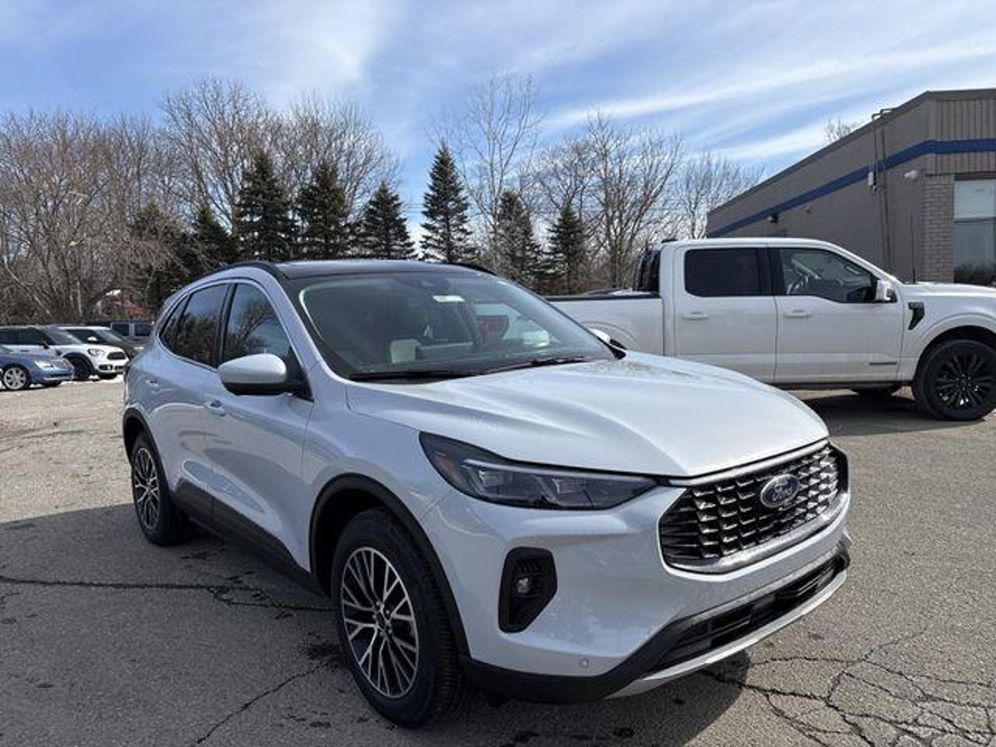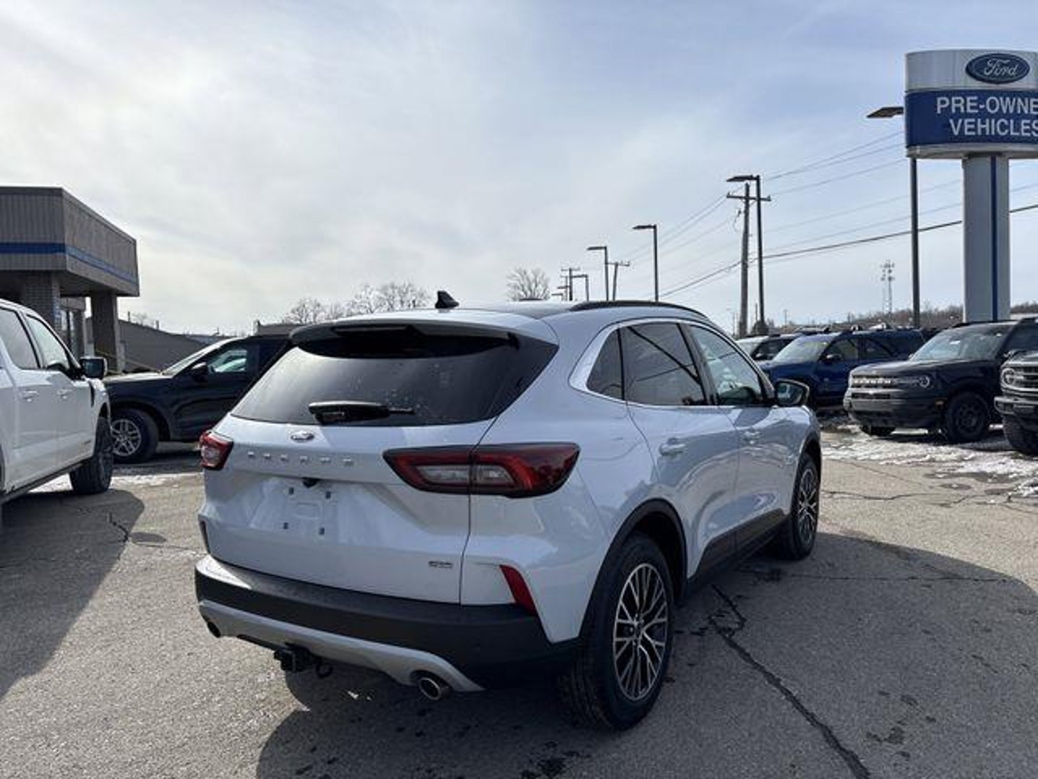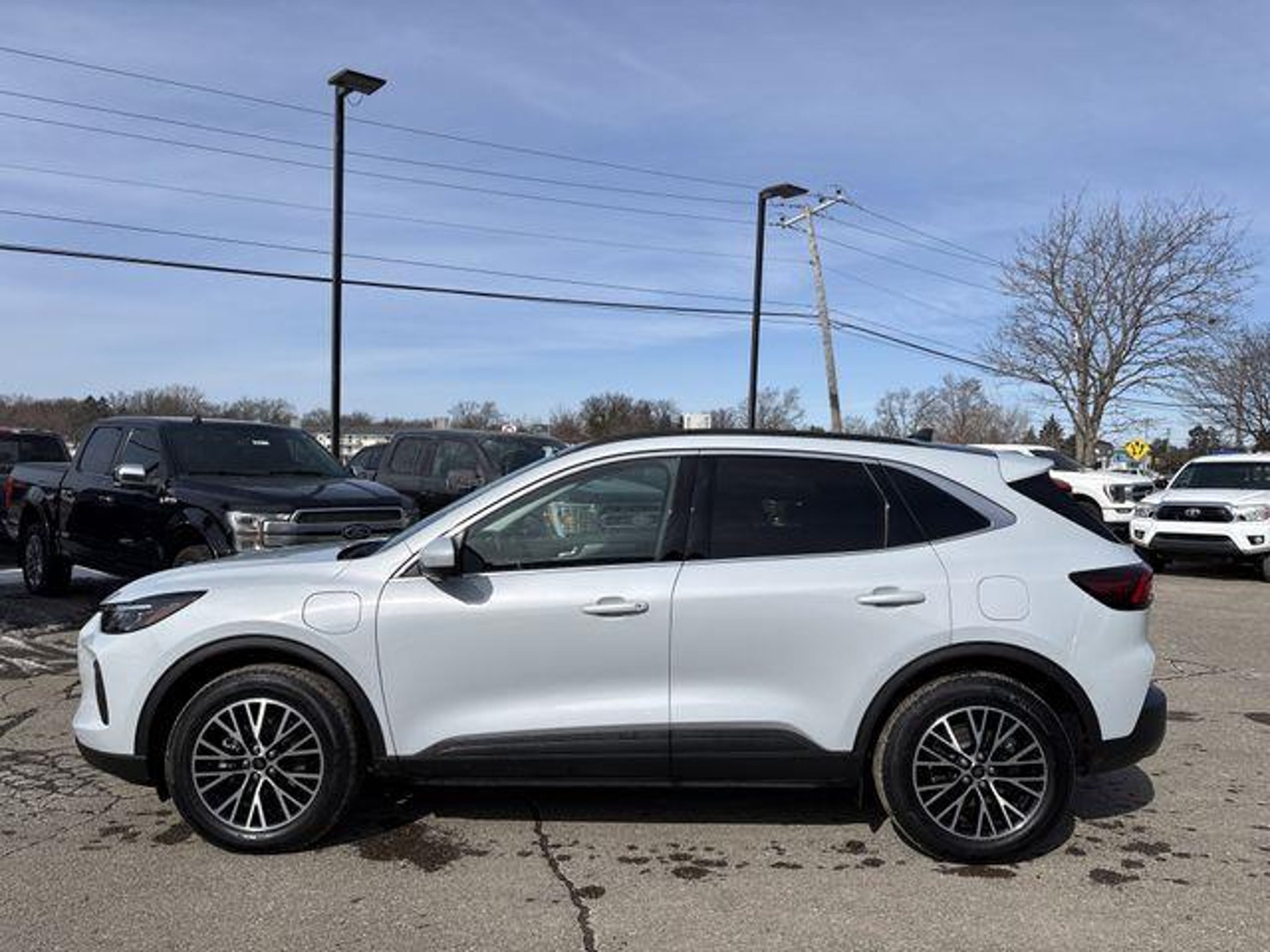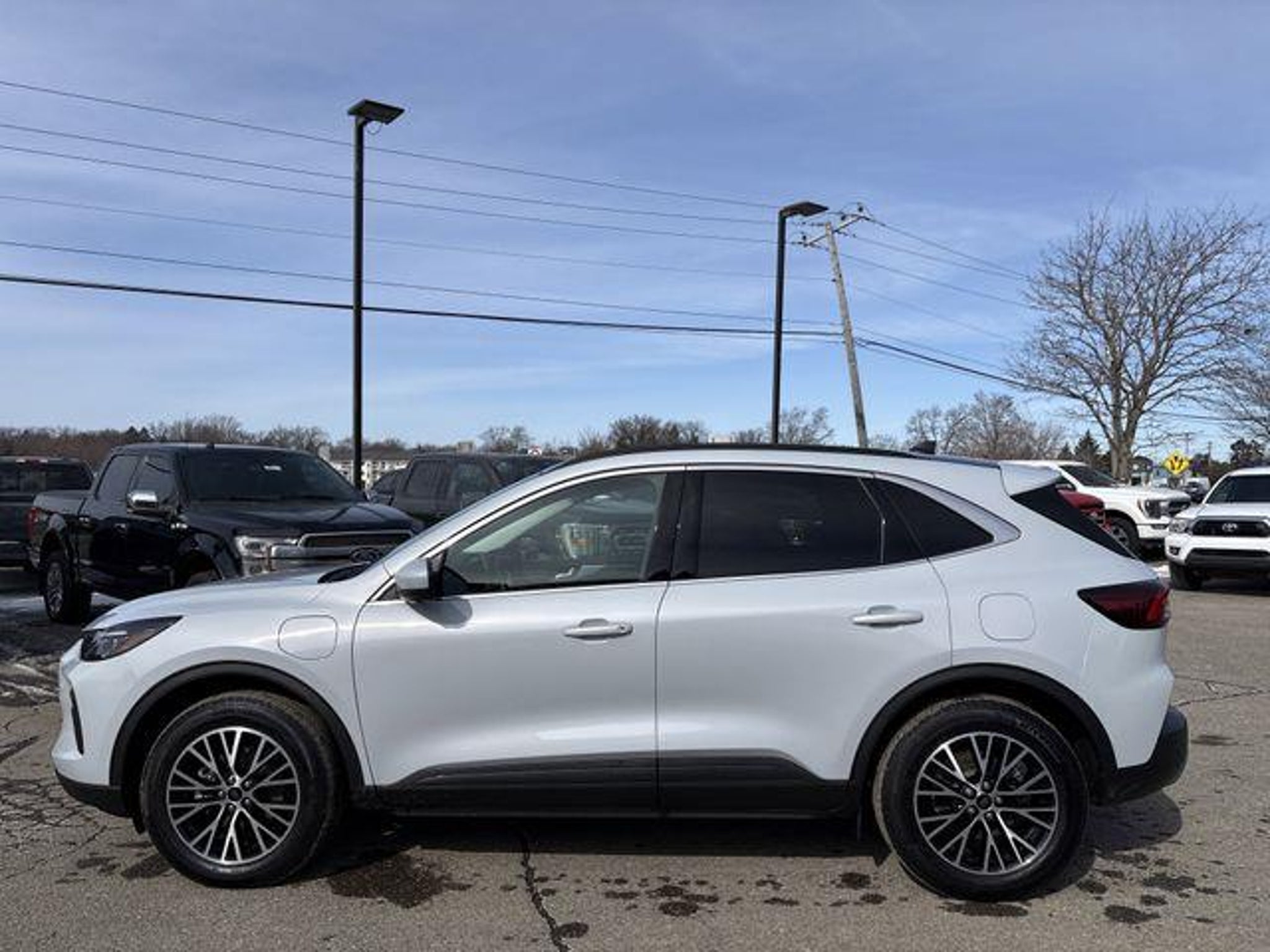 Recent Arrival! New Price! 2.5L iVCT. 2025 Ford Escape Plug-In Hybrid Silver Metallic Class II Trailer Tow Package, Equipment Group 700A, Memory Package, PHEV Premium Package (10-Way Power Driver's Seat, 12.3 Productivity Screen in Instrument Cluster, 360-Degree Camera w/Split View, 6-Way Power Passenger Seat, Auto-Dimming Rear-View Mirror, Front Parking Sensors, HD Radio, Head-Up Display, Heated ActiveX-Trimmed Front Sport Contour Seats, LED Lightbar Headlamps, Perimeter Alarm, Radio: B&O Sound System by Bang & Olufsen, Reverse Brake Assist, Universal Garage Door Opener (UGDO), and Wireless Charging Pad), 2.5L iVCT, 2.91 Axle Ratio, 4-Wheel Disc Brakes, 6 Speakers, ABS brakes, Air Conditioning, Alloy wheels, AM/FM radio: SiriusXM, AM/FM Stereo, Auto High-beam Headlights, Automatic temperature control, Black Roof-Rack Side Rails, Brake assist, Bumpers: body-color, Compass, Delay-off headlights, Driver door bin, Driver vanity mirror, Dual front impact airbags, Dual front side impact airbags, Electronic Stability Control, Emergency communication system: SYNC 4 911 Assist, FordPass Connect, Four wheel independent suspension, Front anti-roll bar, Front Bucket Seats, Front Center Armrest, Front dual zone A/C, Front fog lights, Front reading lights, Fully automatic headlights, Heated door mirrors, Heated front seats, Heated steering wheel, Heated Vinyl/Cloth Front Sport Contour Bucket Seats, Illuminated entry, Internet access capable: FordPass Connect 4G, Knee airbag, Low tire pressure warning, Navigation system: Connected Navigation, Occupant sensing airbag, Outside temperature display, Overhead airbag, Overhead console, Panic alarm, Panoramic Vista Roof, Passenger door bin, Passenger vanity mirror, Power door mirrors, Power driver seat, Power Liftgate, Power steering, Power windows, Radio data system, Rear anti-roll bar, Rear reading lights, Rear seat center armrest, Rear window defroster, Rear window wiper, Remote keyless entry, Speed control, Speed-sensing steering, Speed-Sensitive Wipers, Split folding rear seat, Spoiler, Steering wheel mounted audio controls, SYNC 4 w/Enhanced Voice Recognition, Telescoping steering wheel, Tilt steering wheel, Traction control, Trip computer, Variably intermittent wipers, and Wheels: 18 Machined-Face Magnetic Aluminum. Skalnek Ford has made several enhancements to our dealership sales practices to continue providing our customers the service and experience they deserve. Ability for complete online shopping experience with the new ExpressQuote shopping tool. Remote e-con