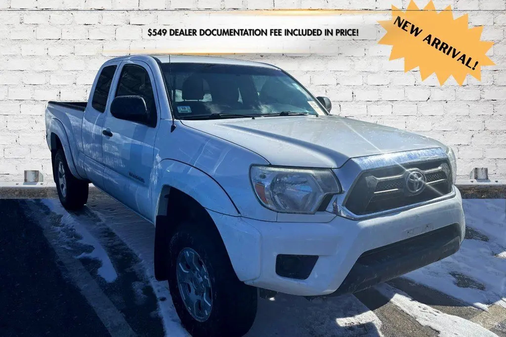 ***Dealer Documentation Fee ($549) Included*** KEY FEATURES: Complete Service Records, CD player, Driver Lumbar Support, Dual Sunvisors w/Mirrors & Extenders, Privacy Glass, Remote Keyless Entry System, SR5 Package, Tailgate-Handle Integrated Backup Camera, Awards: 2014 KBB.com Best Resale Value Awards. The 2014 Toyota Tacoma Base in crisp Super White delivers legendary durability and compact versatility in a midsize truck renowned for its strong resale value and reliable performance. It features a CD player for your favorite tunes, remote keyless entry for easy access, and a tailgate-handle integrated backup camera for confident maneuvering. Comfort includes driver lumbar support, dual sunvisors with mirrors and extenders, and carpet floor mats with door sill protectors, while safety stays strong with anti-whiplash front head restraints, low tire pressure warning, occupant sensing airbag, and privacy glass for added security. With good fuel economy options, many configurations, and a convenient size that handles big tasks without the bulk, this Tacoma remains a top choice for dependable daily driving or weekend adventures. Come in for a test drive today at 1 Main Street in Greenfield, Ma off of exit 43 (Previously exit 26) on I-91. Proudly serving Franklin & Hampshire County. Including Greenfield, Montague, Millers Falls, Erving, Gill, Northfield, Deerfield, Sunderland, Bernardston, Hadley, Amherst and Northampton, Massachusetts. Minutes from Brattleboro, VT & Keene, NH. Price excludes, tax, title, and registration fees.