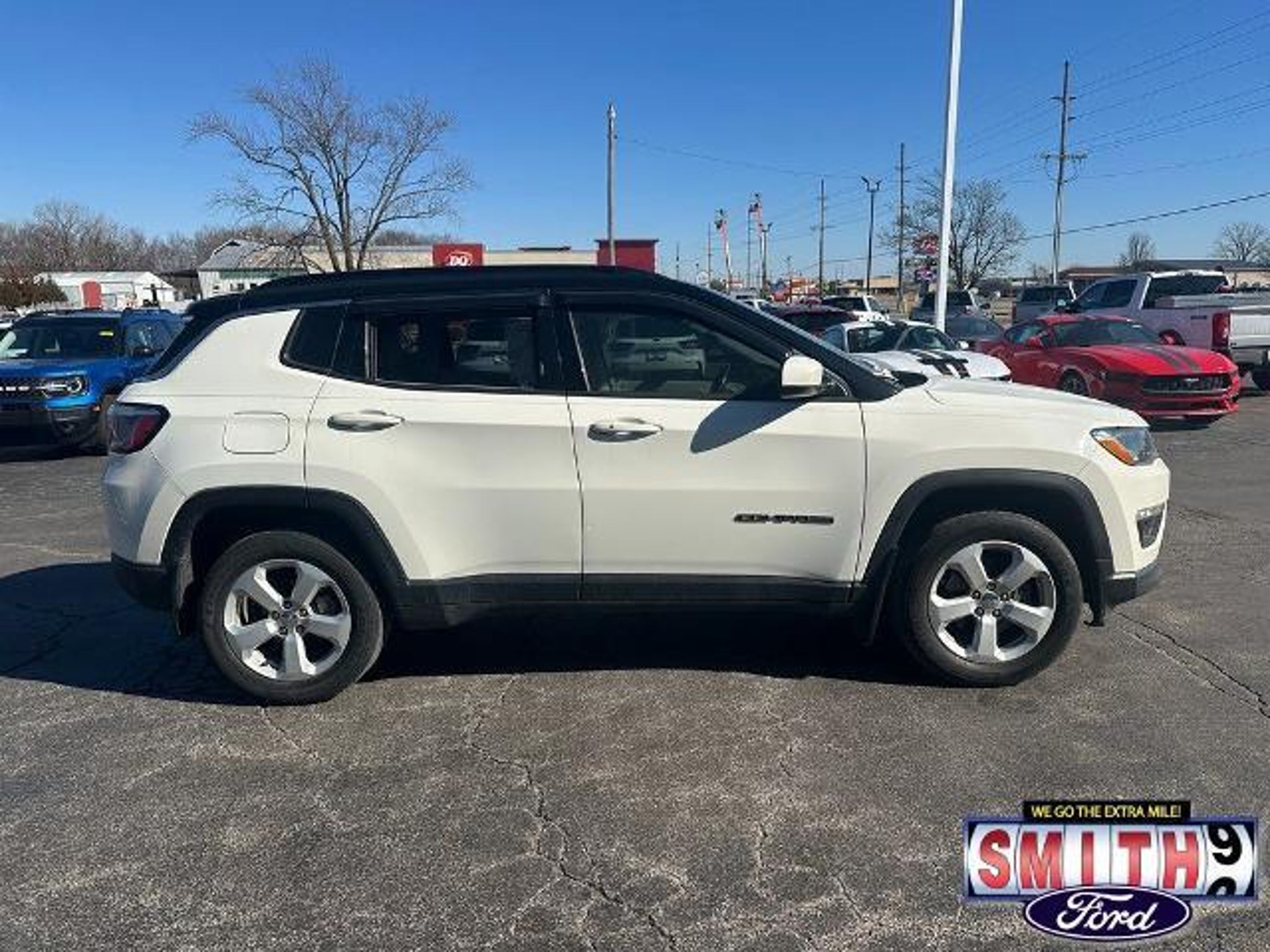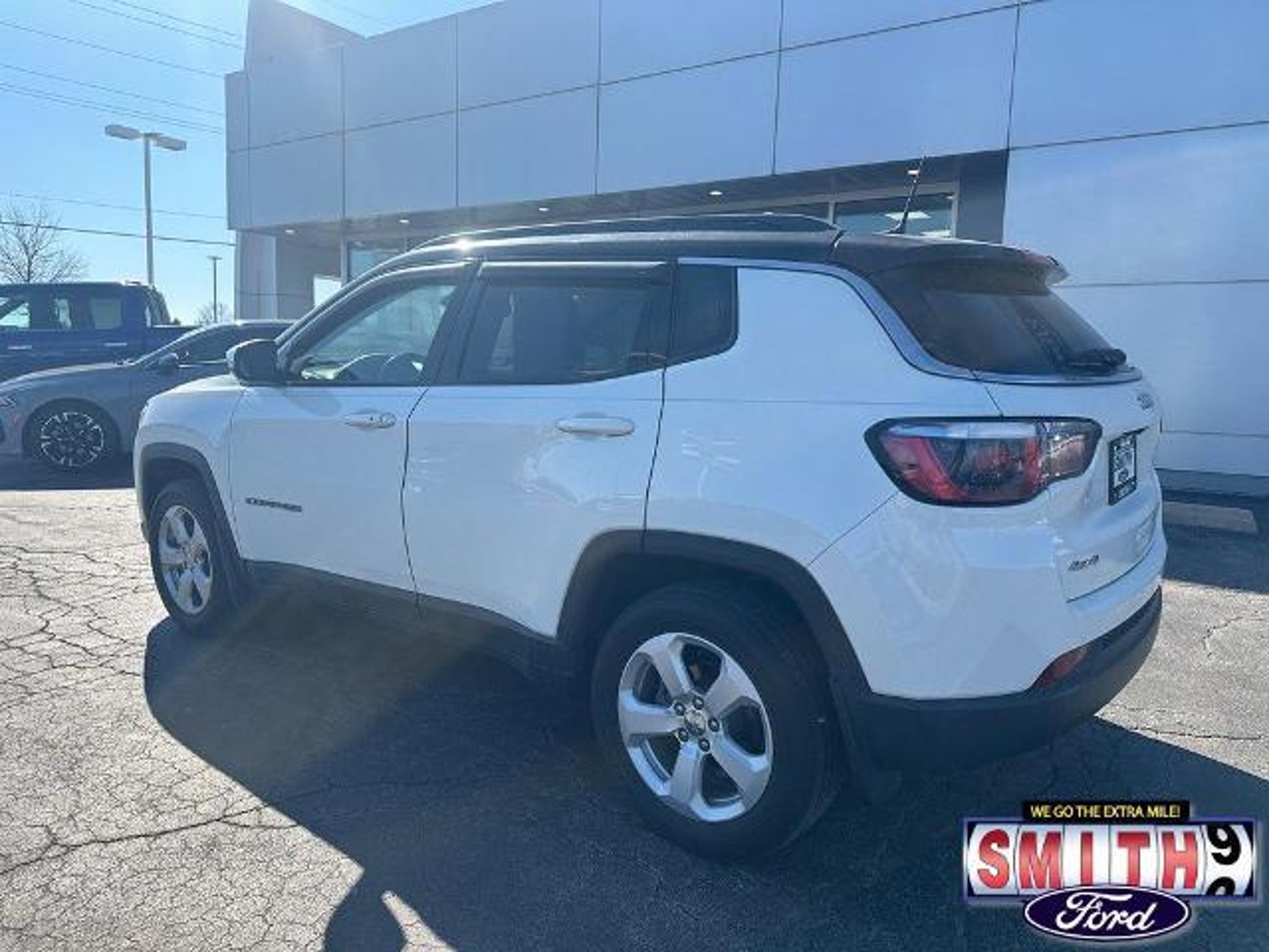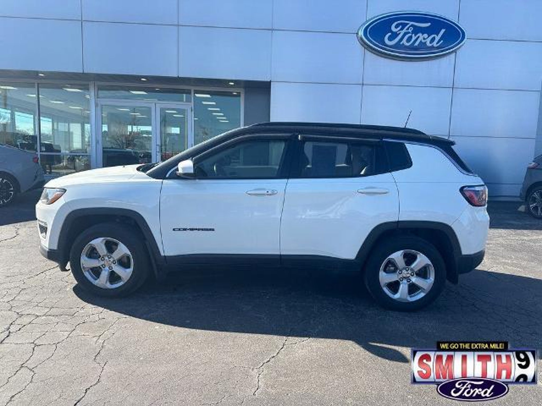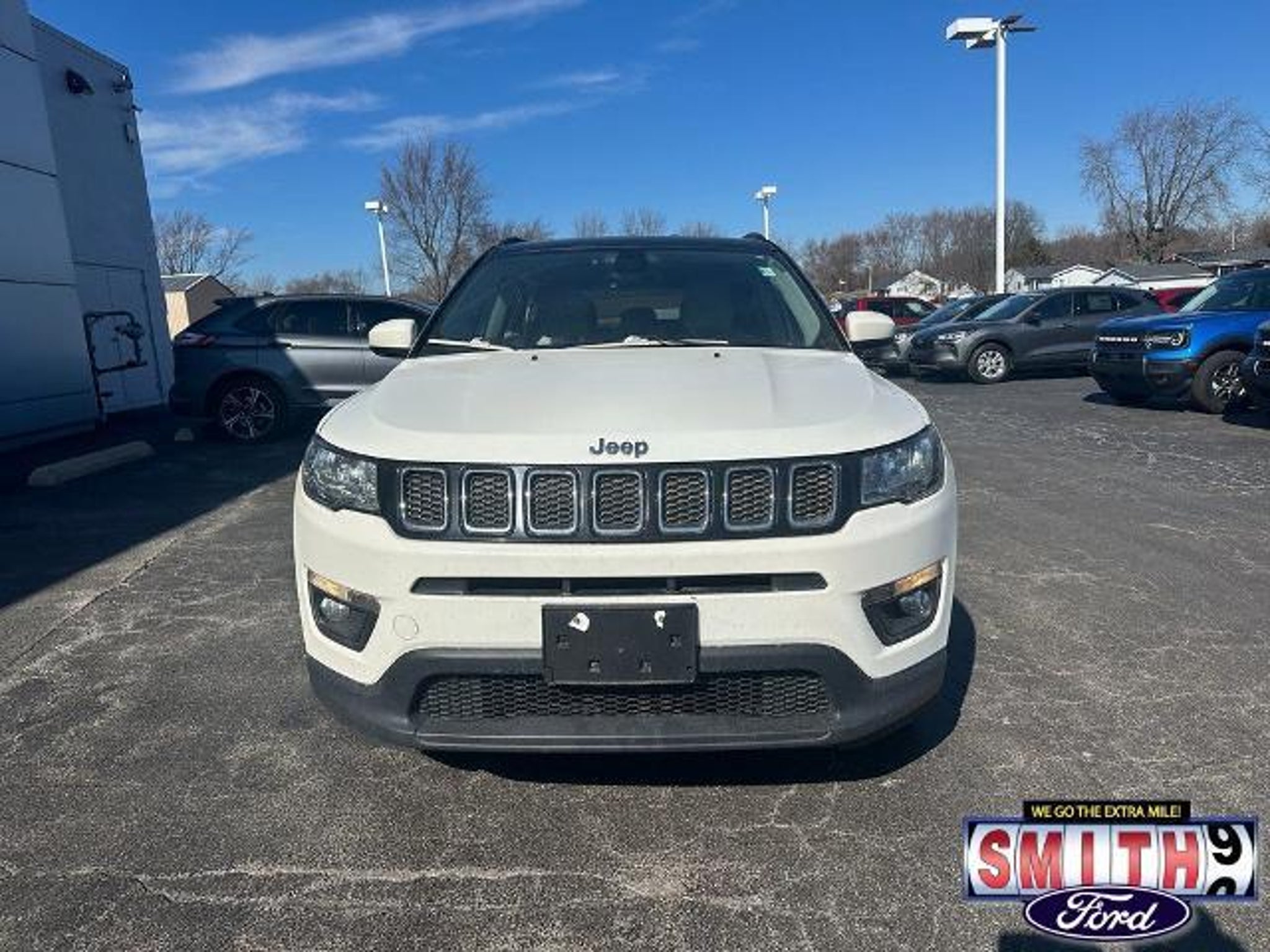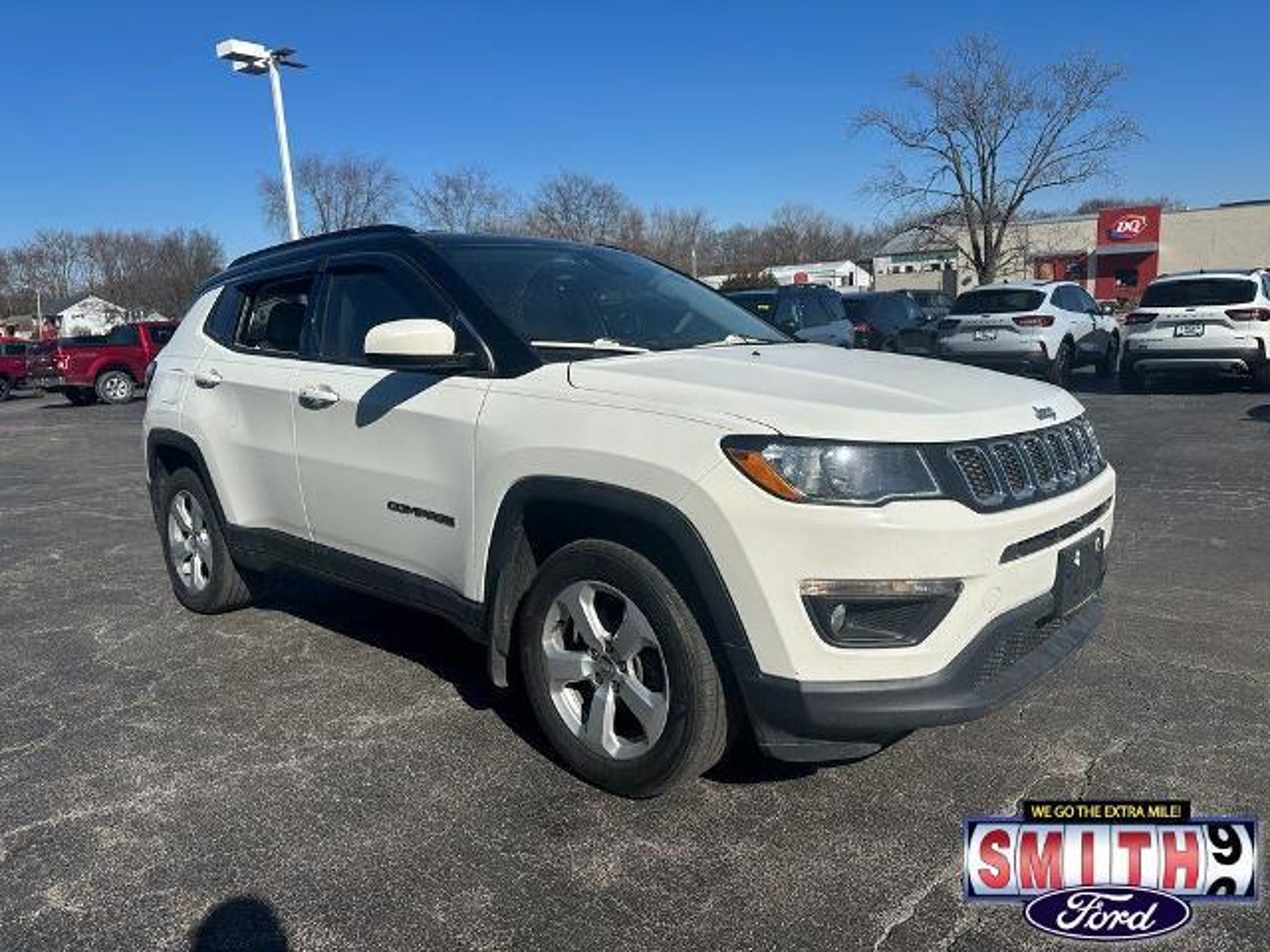 Experience the perfect blend of capability and comfort with this 2018 Jeep Compass Latitude 4WD. Dressed in a sleek White Clearcoat, this versatile SUV is designed to handle Indiana winters and weekend adventures with ease, thanks to its reliable 4X4 drivetrain and efficient 2.4L I4 engine. Inside, you?ll find a tech-forward cabin featuring the Popular Equipment Group. Stay connected and informed with the 7.0 Touch Screen Display and a matching Cluster Color Driver Info Display. Comfort is a priority with a Power 8-Way Driver Seat, an auto-dimming rear-view mirror, and a 115V auxiliary power outlet to keep your devices charged on the go. Safety and convenience are built-in with a ParkView Rear Back-Up Camera and Bluetooth hands-free connectivity. With a Clean CARFAX and a well-maintained vehicle history, this Compass is ready for its next owner. It stands out on the road with its stylish Black Roof and Quick Order Package 27J, offering a premium look without the premium price tag. Smith Ford of Lowell: The Trusted New & Used Ford Dealer Serving Northwest Indiana and Chicagoland, we are the home of the NO BULL Difference. Our upfront pricing means the price you see online is the price you see on paper?guaranteed. With over 120 years of combined experience, we proudly serve Lowell, Valparaiso, Merrillville, Hobart, Highland, Demotte, Matteson, Homewood, and South Chicago. Call us today at 219-696-8971 to schedule your test drive! 2018 Jeep Compass Latitude, used Jeep Compass for sale, 4x4 SUV, clean CARFAX, backup camera, Bluetooth, Smith Ford of Lowell, Northwest Indiana used cars, Lowell Jeep dealer, 4WD SUV Indiana
