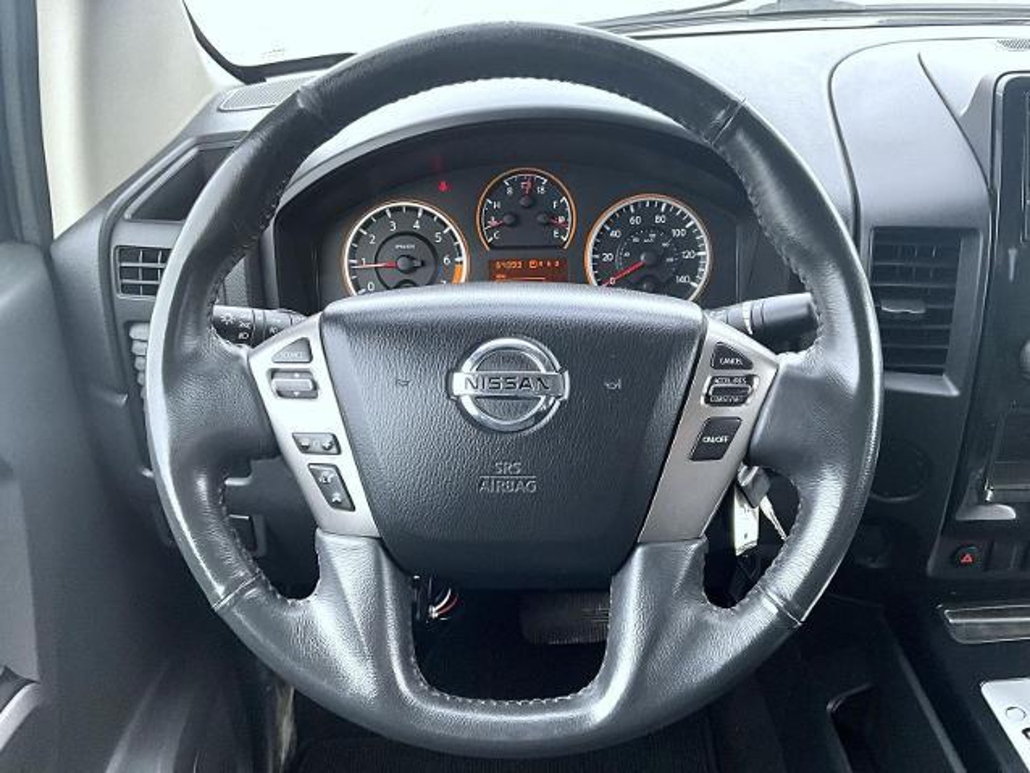 Magnetic Black 2015 Nissan Titan SV RWD 5-Speed Automatic 5.6L V8 120V Console Outlet, 18 Aluminum Alloy Wheels, 2.937 Axle Ratio, 20 Wheels, 4-Wheel Disc Brakes, 40/20/40 Manual Split Bench Front Seat, 7-Pin Wiring Harness, 8 Speakers, ABS brakes, Air Conditioning, Alloy wheels, AM/FM radio, AM/FM/CD Audio System, AM/FM/CD Audio System w/8 Speakers, Anti-whiplash front head restraints, Bedliner SWB, Black Step Rails, Black Wheel Arch Moldings, Bluetooth Hands-Free Phone System, Bodyside moldings, Brake assist, Bumpers: chrome, CD player, Class IV Integrated Receiver Hitch, Driver door bin, Driver vanity mirror, Dual Front Captain's Chairs, Dual front impact airbags, Dual front side impact airbags, Electronic Stability Control, Fog Lights, Front anti-roll bar, Front Center Armrest w/Storage, Front reading lights, Front wheel independent suspension, Illuminated entry, Leather Wrapped Steering Wheel w/Audio Controls, Leather-Wrapped Floor-Mounted Shifter, Lockable Bedside Storage Compartment, Lockable Center Console, Low tire pressure warning, MP3 decoder, Nissan Connect w/Navigation, Occupant sensing airbag, Outside temperature display, Overhead airbag, Overhead console, Panic alarm, Passenger door bin, Passenger vanity mirror, Power door mirrors, Power steering, Power windows, Radio data system, Rear HVAC Vents, Rear reading lights, Rear seat center armrest, Rear Sonar System, Rear step bumper, Rear window defroster, RearView Monitor, Remote keyless entry, Security system, Speed control, Speed-sensing steering, Speed-Sensitive Wipers, Split folding rear seat, SV Style Cloth Seating Surfaces, SV Value Truck Package, Tachometer, Tilt steering wheel, Traction control, Trailer Brake Pre-Wiring (Under Instrument Panel), Trip computer, Value Truck Package Floor Mats, Variably intermittent wipers, Voltmeter, Wheels: 20 SL Alloy w/Dark Hyper Silver Finish. Experience reliability, convenience, and personalized service when you shop for your next pre-owned vehicle at Woodhouse Ford in Plattsmouth. As you explore our extensive inventory of pre-owned cars, trucks, and SUVs, youâre met with meticulously inspected vehicles that have been carefully prepared for resale. From budget-friendly options to premium models, we provide a range of choices to suit various preferences and needs. With flexible financing options, extended warranties, and ongoing support from our certified service department, we make it easy to purchase your next pre-owned vehicle. Whether youâre a first-time buyer or looking to upgrade, shoppi