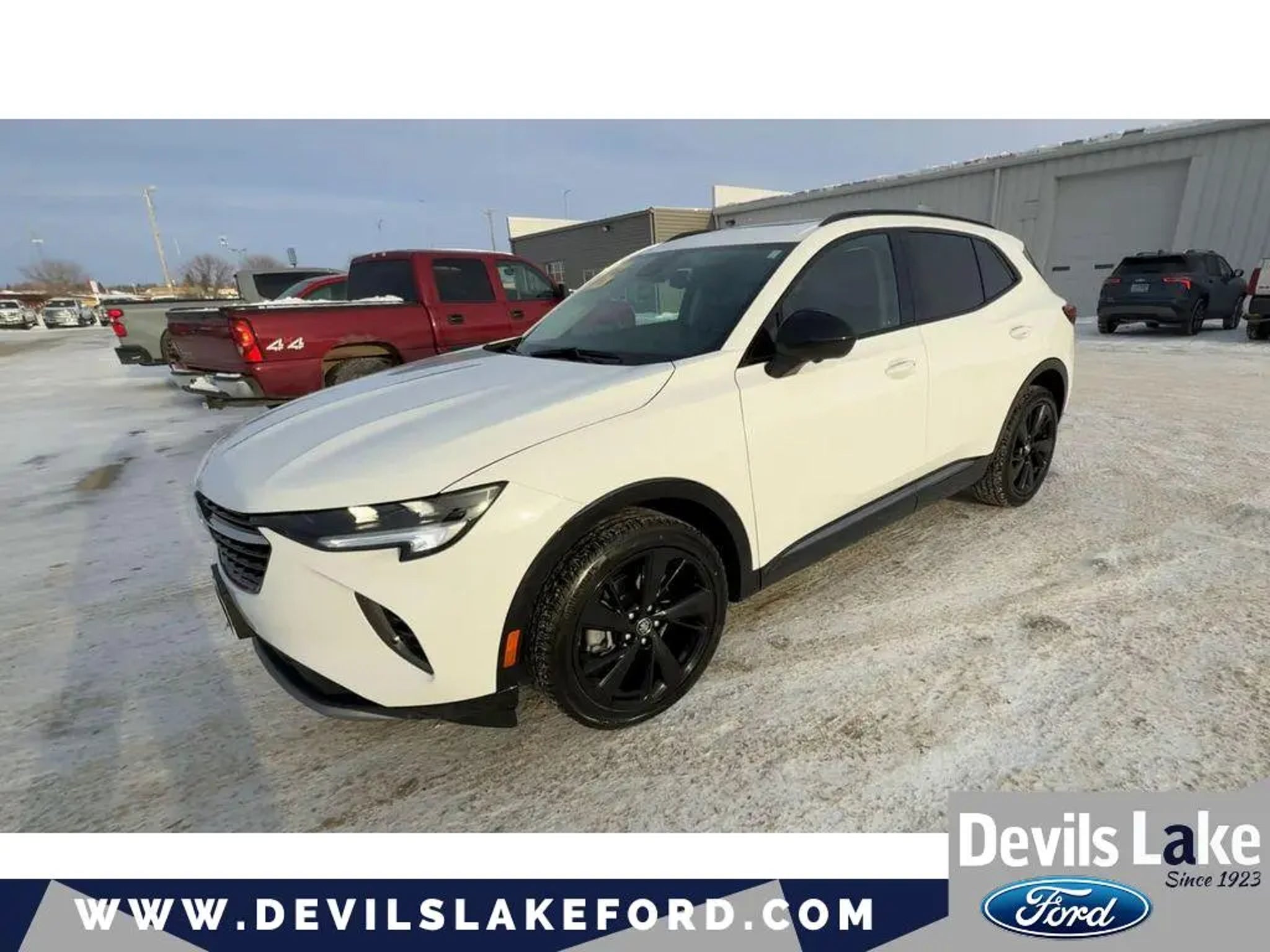 Summary Buy and Drive with Confidence - Devil's Lake Worry Free Guarantee - 3 Day / 300 Mile Return or Exchange, 3 Month / 3,000 mile coverage on powertrain, brakes, bulbs, batteries and tires $0 Deductible. 750 4.8 STARS POSITIVE REVIEWS ON GOOGLE. See why people from all over the country do business with us! Serving North Dakota for over 100 years! Fast, Easy and Great Vehicles. For all the details on this vehicle call me Jodie Longie . This unit stays safely in its lane with Lane Keep Assist. This 2022 Buick Envision features a high end BOSE stereo system. It offers Apple CarPlay for seamless connectivity. The vehicle's Lane Departure Warning helps keep you in your lane. Our dealership has already run the CARFAX report and it is clean. A clean CARFAX is a great asset for resale value in the future. The leather seats in this 2022 Buick Envision are a must for buyers looking for comfort, durability, and style. This vehicle is a certified CARFAX 1-owner. The installed navigation system will keep you on the right path. Keep your hands warm all winter with a heated steering wheel in the Buick Envision . This 1/2 ton suv offers Android Auto for seamless smartphone integration. Protect this Buick Envision from unwanted accidents with a cutting edge backup camera system. Never get into a cold vehicle again with the remote start feature on the Buick Envision. Packages Safety Package: Rear Cross Traffic Alert; Lane Change Alert with Side Blind Zone Alert. Sport Touring Package: Body-Color Door Handles; Rear Cargo Compartment Cover; Black Roof Rails; Sport Alloy Pedals; 20 Aluminum Wheels with Dark Finish; Lower Trim/wheel Arch Moldings; Carpeted Front and Rear Floor Mats. Technology Package I: HD Surround Vision; Head-Up Display; Front and Rear Park Assist; Buick Infotainment System AM/FM Radio with Navigation; 3-Channel Programmable Universal Home Remote. Preferred Equipment Group 1SL: Heated Steering Wheel; Heated Driver and Front Passenger Seats. Premium Seat Package: Front Passenger 4-Way Power Lumbar Seat Adjuster; Driver 4-Way Power Lumbar Seat Adjuster. Power Panoramic Tilt-Sliding Moonroof. **Equipment listed is based on original vehicle build and subject to change. Please confirm the accuracy of the included equipment by calling the dealer prior to purchase.** Equipment This unit stays safely in its lane with Lane Keep Assist. This 2022 Buick Envision features a high end BOSE stereo system. It offers Apple CarPlay for seamless connectivity. The vehicle's Lane Departure Warning helps keep you in your lane. Our dealership has already run the CARFAX report and it is clean. A clean CARFAX is a great asset for resale value in the future. The leather seats in this 2022 Buick Envision are a must for buyers looking for comfort, durability, and style. This vehicle is a certified CARFAX 1-owner. The installed navigation system will keep you on the right path. Keep your hands warm all winter with a heated steering wheel in the Buick Envision . This 1/2 ton suv offers Android Auto for seamless smartphone integration. Protect this Buick Envision from unwanted accidents with a cutting edge backup camera system. Never get into a cold vehicle again with the remote start feature on the Buick Envision. Packages Safety Package: Rear Cross Traffic Alert; Lane Change Alert with Side Blind Zone Alert. Sport Touring Package: Body-Color Door Handles; Rear Cargo Compartment Cover; Black Roof Rails; Sport Alloy Pedals; 20 Aluminum Wheels with Dark Finish; Lower Trim/wheel Arch Moldings; Carpeted Front and Rear Floor Mats. Technology Package I: HD Surround Vision; Head-Up Display; Front and Rear Park Assist; Buick Infotainment System AM/FM Radio with Navigation; 3-Channel Programmable Universal Home Remote. Preferred Equipment Group 1SL: Heated Steering Wheel; Heated Driver and Front Passenger Seats. Premium Seat Package: Front Passenger 4-Way Power Lumbar Seat Adjuster; Driver 4-Way Power Lumbar Seat Adjuster. Power Panoramic Tilt-Sliding Moonroof. **Equipment listed is based on original vehicle build and subject to change. Please confirm the accuracy of the included equipment by calling the dealer prior to purchase.**