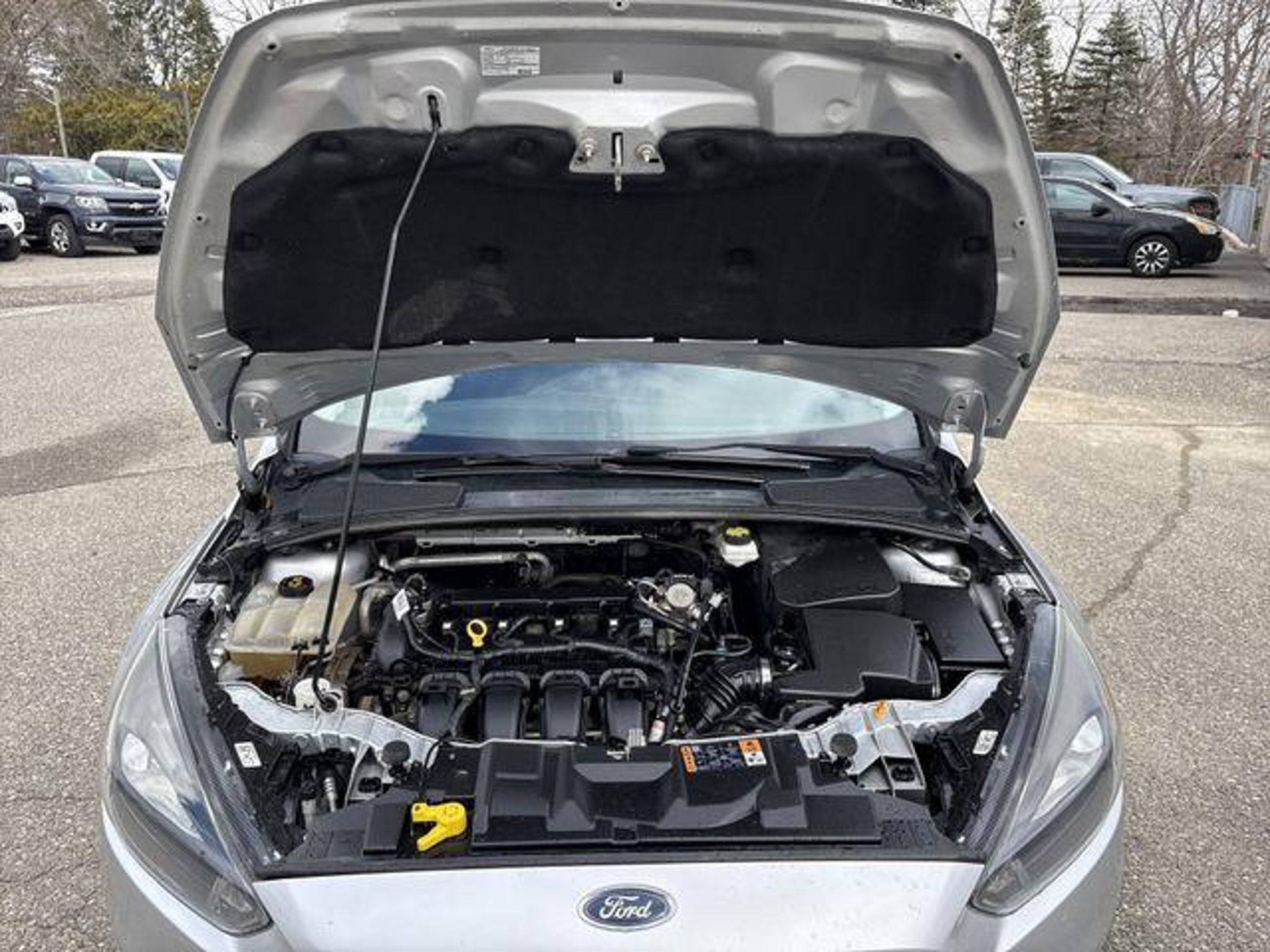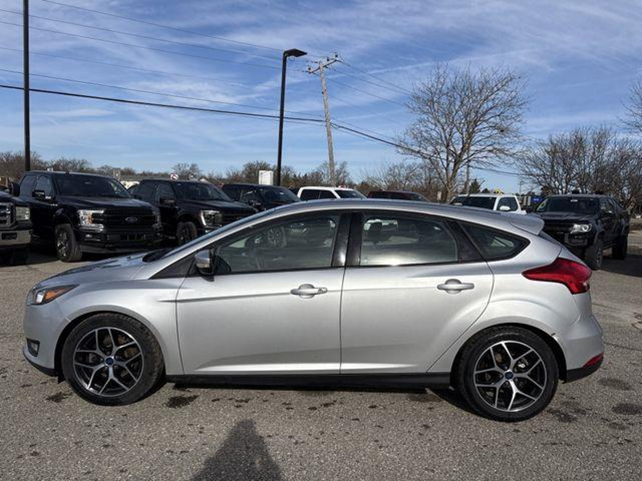 2018 Ford Focus SEL Ingot Silver Cold Weather Package (3 Point Leather-Wrapped Heated Steering Wheel, All-Weather Floor Mats, Heated Front-Seats, and Heated Mirrors), Equipment Group 250A, 10 Speakers, 17 Machined-Aluminum Wheels, 4-Wheel Disc Brakes, ABS brakes, Air Conditioning, Alloy wheels, AM/FM radio: SiriusXM, AppLink/Apple CarPlay and Android Auto, Automatic temperature control, Brake assist, Bumpers: body-color, CD player, Cloth Front Bucket Seats, Compass, Delay-off headlights, Driver door bin, Driver vanity mirror, Dual front impact airbags, Dual front side impact airbags, Electronic Stability Control, Emergency communication system, Exterior Parking Camera Rear, Four wheel independent suspension, Front anti-roll bar, Front Bucket Seats, Front Center Armrest, Front dual zone A/C, Front fog lights, Front reading lights, Fully automatic headlights, Illuminated entry, Knee airbag, Low tire pressure warning, Occupant sensing airbag, Outside temperature display, Overhead airbag, Overhead console, Panic alarm, Passenger door bin, Passenger vanity mirror, Power door mirrors, Power moonroof, Power steering, Power windows, Radio data system, Radio: Sony AM/FM Single-CD/MP3-Capable, Rear anti-roll bar, Rear Parking Sensors, Rear window defroster, Rear window wiper, Remote keyless entry, Security system, SelectShift, Speed control, Split folding rear seat, Spoiler, Steering wheel mounted audio controls, SYNC 3 Communications & Entertainment System, Tachometer, Telescoping steering wheel, Tilt steering wheel, Traction control, Trip computer, Turn signal indicator mirrors, and Variably intermittent wipers. 24/34 City/Highway MPG Awards: * 2018 KBB.com Brand Image Awards * 2018 KBB.com 10 Most Awarded Brands Skalnek Ford has made several enhancements to our dealership sales practices to continue providing our customers the service and experience they deserve. Ability for complete online shopping experience with the new ExpressQuote shopping tool. Remote e-contracting for most vehicle transactions available. Value your trade online with KBB Instant Cash Offer. Our dedicated and professional sales staff is always waiting via phone, text, or chat to assist you.