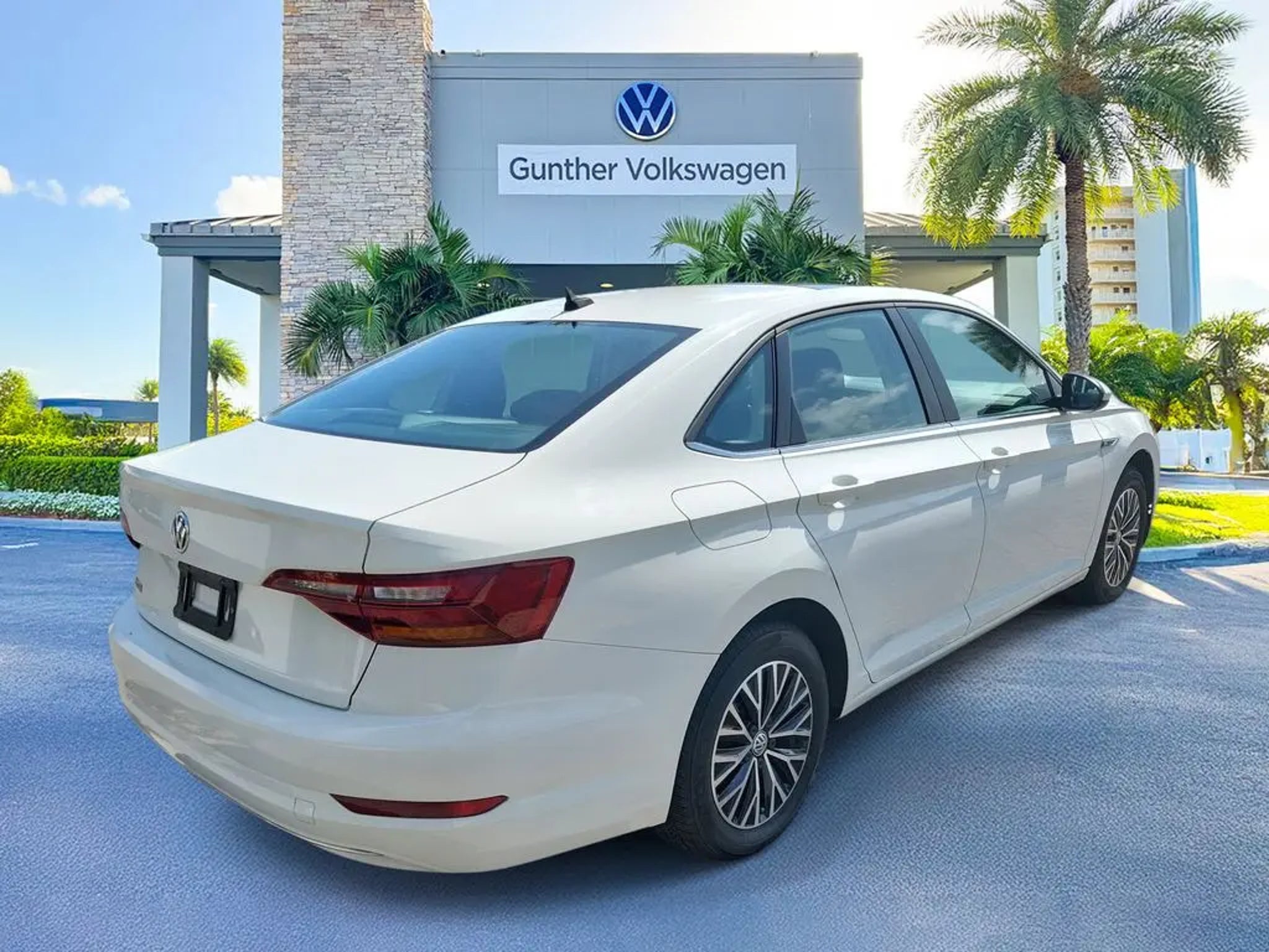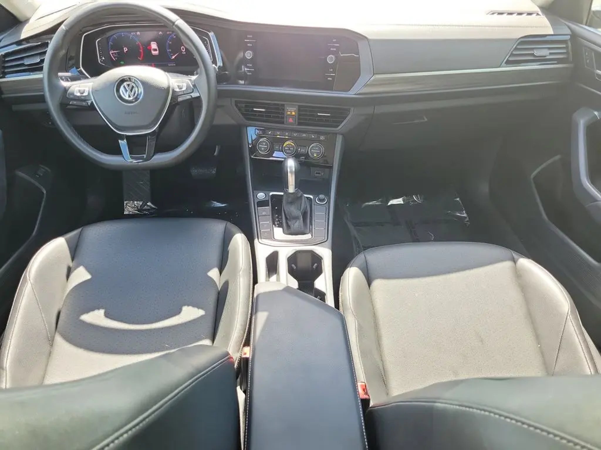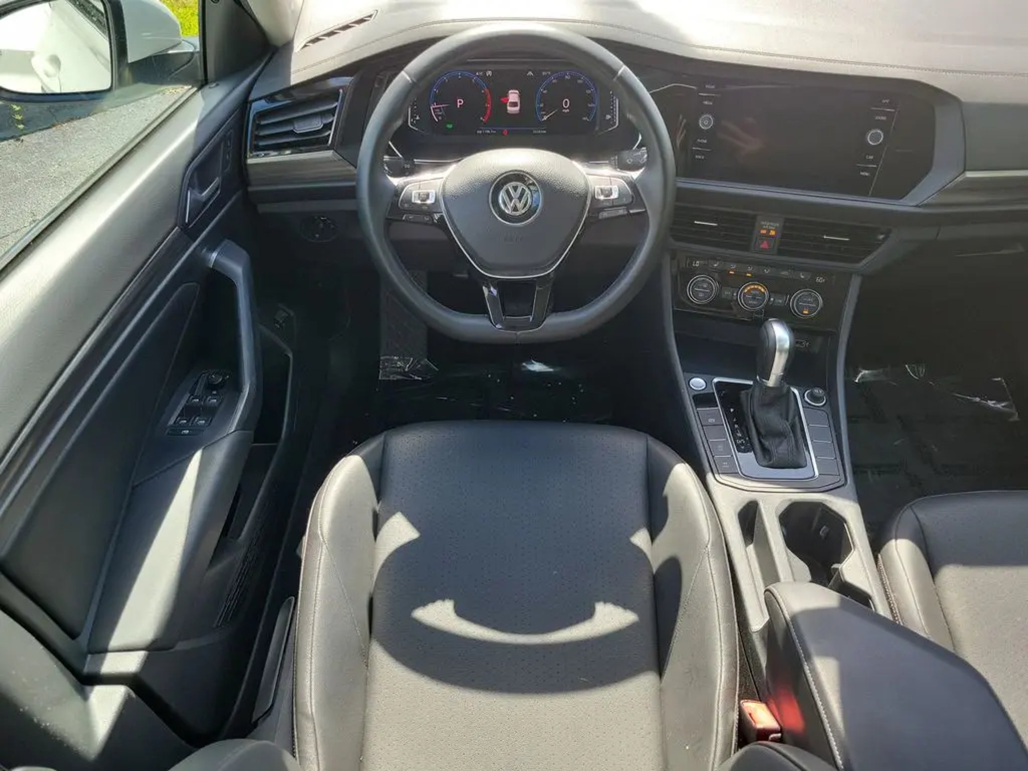 Pure White 2019 Volkswagen Jetta SEL Odometer is 19115 miles below market average! 30/40 City/Highway MPG Equipped with 4-Wheel Disc Brakes, 9 Speakers, ABS brakes, Air Conditioning, Alloy wheels, AM/FM radio: SiriusXM, Auto High-beam Headlights, Auto-dimming Rear-View mirror, Automatic temperature control, Brake assist, Bumpers: body-color, Delay-off headlights, Driver door bin, Driver vanity mirror, Dual front impact airbags, Dual front side impact airbags, Electronic Stability Control, Emergency communication system: VW Car-Net services (capabilities require enrollment or subscription), Exterior Parking Camera Rear, Front anti-roll bar, Front Bucket Seats, Front Center Armrest, Front dual zone A/C, Front reading lights, Front wheel independent suspension, Fully automatic headlights, Heated door mirrors, Heated Front Comfort Seats, Heated front seats, Heavy Duty Trunk Liner w/VW CarGo Blocks, Illuminated entry, Leather Shift Knob, Low tire pressure warning, Monster Mats w/Logo Rubber Mats Kit (Set of 4), Occupant sensing airbag, Outside temperature display, Overhead airbag, Overhead console, Panic alarm, Passenger door bin, Passenger vanity mirror, Perforated V-Tex Leatherette Seat Trim, Power door mirrors, Power moonroof, Power steering, Power windows, Radio data system, Radio: Composition Media w/8 Touchscreen, Rain sensing wipers, Rear anti-roll bar, Rear reading lights, Rear seat center armrest, Rear window defroster, Remote CD player, Remote keyless entry, Speed control, Speed-sensing steering, Split folding rear seat, Steering wheel mounted audio controls, Tachometer, Telescoping steering wheel, Tilt steering wheel, Traction control, Trip computer, Variably intermittent wipers, and Wheels: 16 Two-Tone Rama Black. Sale price shown excludes $989.00 Predelivery Service Charge, $395.00 Electronic Registration Filing Fee, all government fees, registration fees, titling fees, and Sales Tax VAUTO USED.