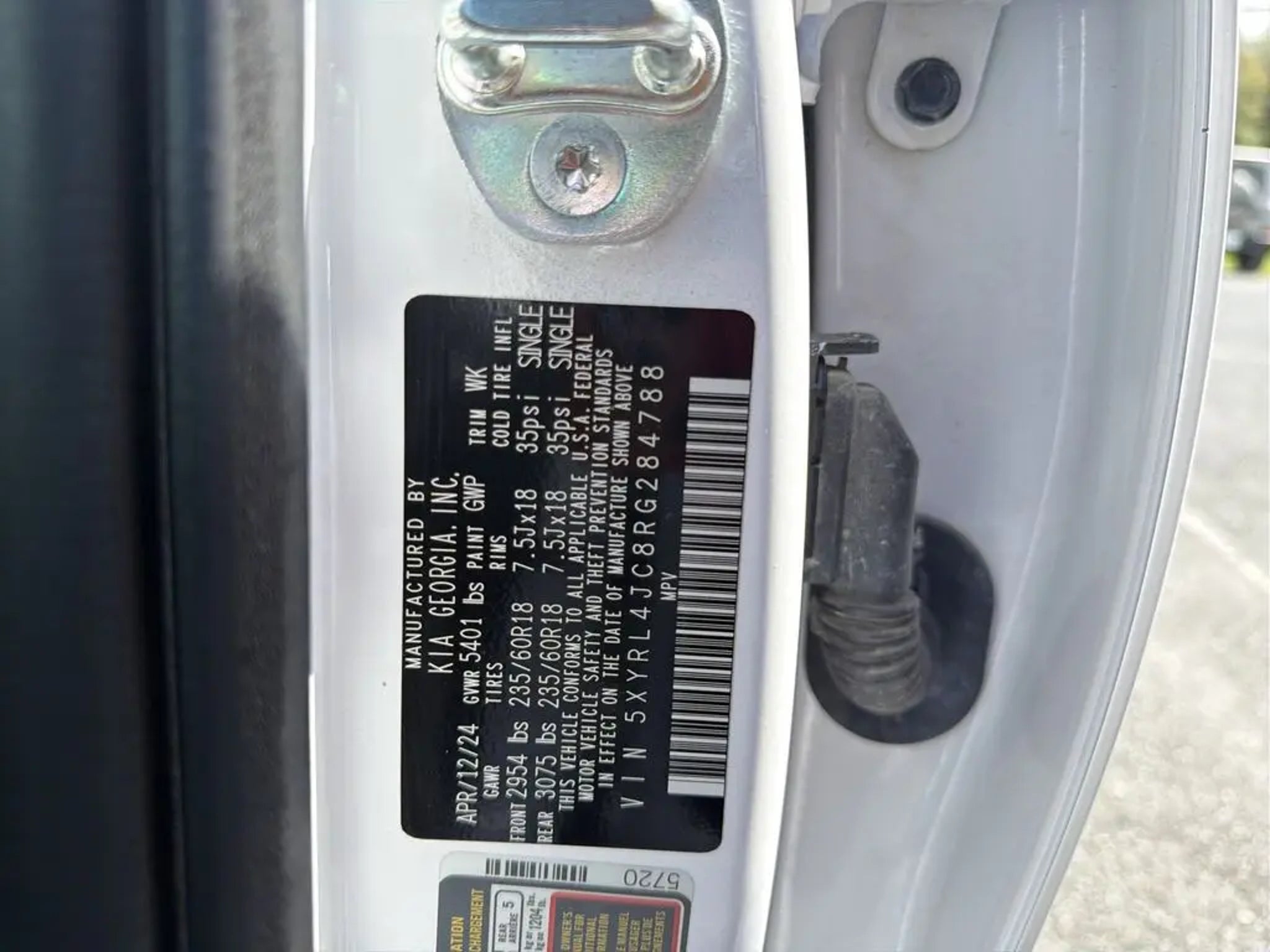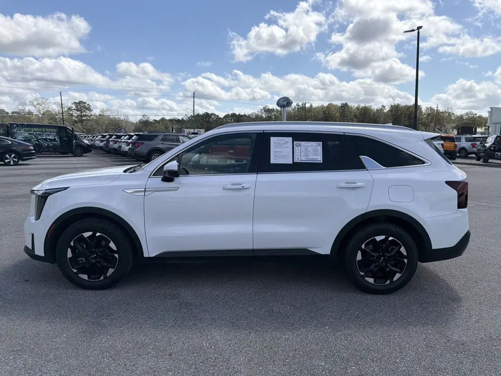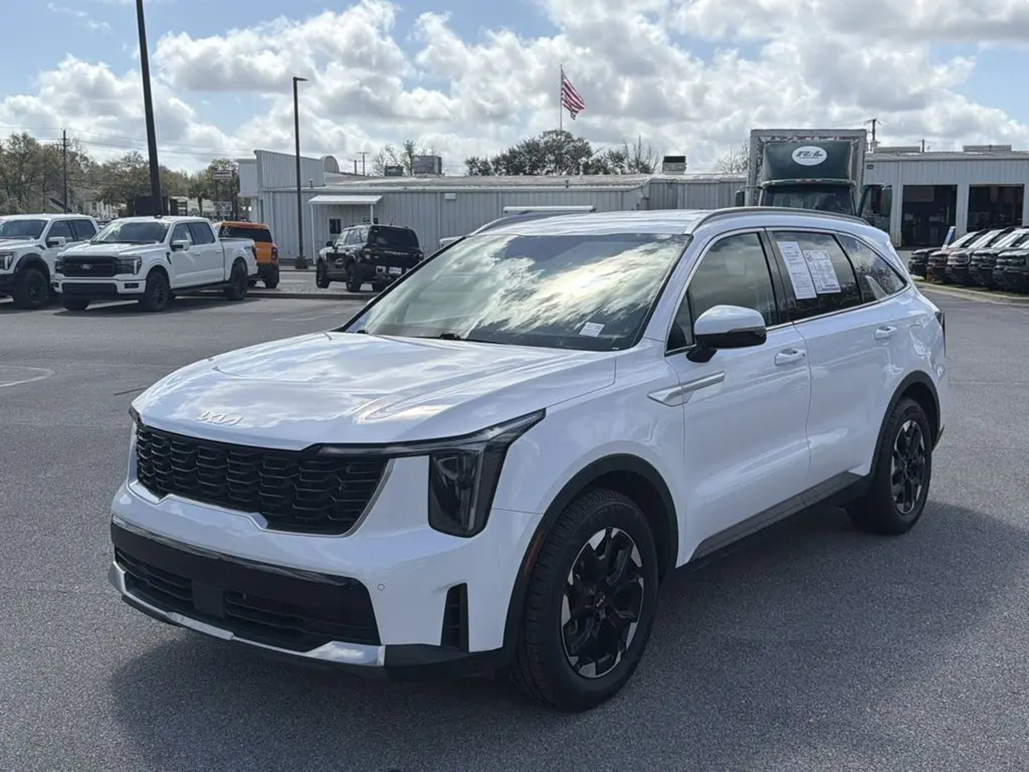 CLEAN CARFAX NO ACCIDENTS, CARFAX ONE OWNER, Navigation System. Navigation System, 3.798 Axle Ratio, 3rd row seats: split-bench, 4-Wheel Disc Brakes, 6 Speakers, ABS brakes, Air Conditioning, Alloy wheels, AM/FM radio: SiriusXM, Apple CarPlay & Android Auto, Auto High-beam Headlights, Automatic temperature control, Brake assist, Bumpers: body-color, Carpeted Floor Mats, Delay-off headlights, Driver door bin, Driver vanity mirror, Dual front impact airbags, Dual front side impact airbags, Electronic Stability Control, Emergency communication system: 911 Connect, Exterior Parking Camera Rear, Four wheel independent suspension, Front anti-roll bar, Front Bucket Seats, Front Center Armrest, Front dual zone A/C, Front fog lights, Front reading lights, Fully automatic headlights, Heated door mirrors, Heated Front Bucket Seats, Heated front seats, Illuminated entry, Knee airbag, Leather Shift Knob, Leather steering wheel, Low tire pressure warning, Occupant sensing airbag, Outside temperature display, Overhead airbag, Overhead console, Panic alarm, Passenger door bin, Passenger vanity mirror, Power door mirrors, Power driver seat, Power steering, Power windows, Radio data system, Radio: AM/FM Audio System, Rear anti-roll bar, Rear reading lights, Rear seat center armrest, Rear side impact airbag, Rear window defroster, Rear window wiper, Remote keyless entry, Security system, Smart Key w/ Push Button and Remote Start, Speed control, Speed-sensing steering, Split folding rear seat, Spoiler, Steering wheel mounted audio controls, SynTex Artificial Leather Seat Trim, Tachometer, Telescoping steering wheel, Tilt steering wheel, Traction control, Trip computer, Turn signal indicator mirrors, Variably intermittent wipers, and Wheels: 7.5J x 18 Alloy w/Machine Finish. Glacial White Pearl 2024 Kia Sorento S FWD 8-Speed Automatic 2.5L I4 DGI DOHC 16V LEV3-SULEV30 191hp
