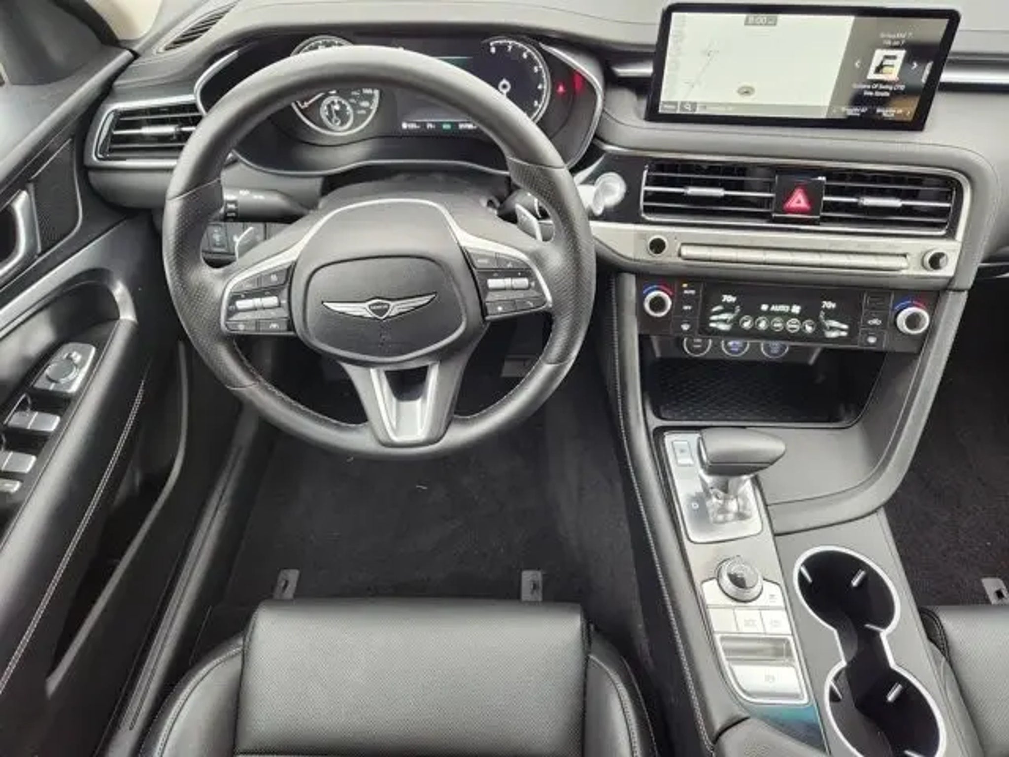 CARFAX One-Owner. Clean CARFAX. G70 2.5T 4-Wheel Disc Brakes, 6 Speakers, ABS brakes, Air Conditioning, Alloy wheels, AM/FM radio: SiriusXM, Android Auto & Apple CarPlay, Anti-whiplash front head restraints, Auto High-beam Headlights, Auto-dimming Rear-View mirror, Automatic temperature control, Brake assist, Bumpers: body-color, Delay-off headlights, Driver door bin, Driver vanity mirror, Dual front impact airbags, Dual front side impact airbags, Electronic Stability Control, Emergency communication system: Genesis Connected Services, Exterior Parking Camera Rear, Four wheel independent suspension, Front anti-roll bar, Front Bucket Seats, Front Center Armrest, Front dual zone A/C, Front reading lights, Fully automatic headlights, Garage door transmitter: HomeLink, Heated door mirrors, Heated front seats, Heated Multi-Adjustable Front Bucket Seats, Illuminated entry, Knee airbag, Leather steering wheel, Leatherette Seating Surfaces, Low tire pressure warning, Navigation System, Occupant sensing airbag, Outside temperature display, Overhead airbag, Overhead console, Panic alarm, Passenger door bin, Passenger vanity mirror, Power door mirrors, Power driver seat, Power passenger seat, Power steering, Power windows, Radio: AM/FM/SiriusXM/HD Audio System, Rear anti-roll bar, Rear reading lights, Rear seat center armrest, Rear side impact airbag, Rear window defroster, Remote keyless entry, Security system, Speed control, Speed-Sensitive Wipers, Split folding rear seat, Steering wheel mounted audio controls, Tachometer, Telescoping steering wheel, Traction control, Trip computer, Turn signal indicator mirrors, Variably intermittent wipers, Wheels: 19 x 8.0J Fr & 19 x 8.5J Rr Alloy. Recent Arrival!