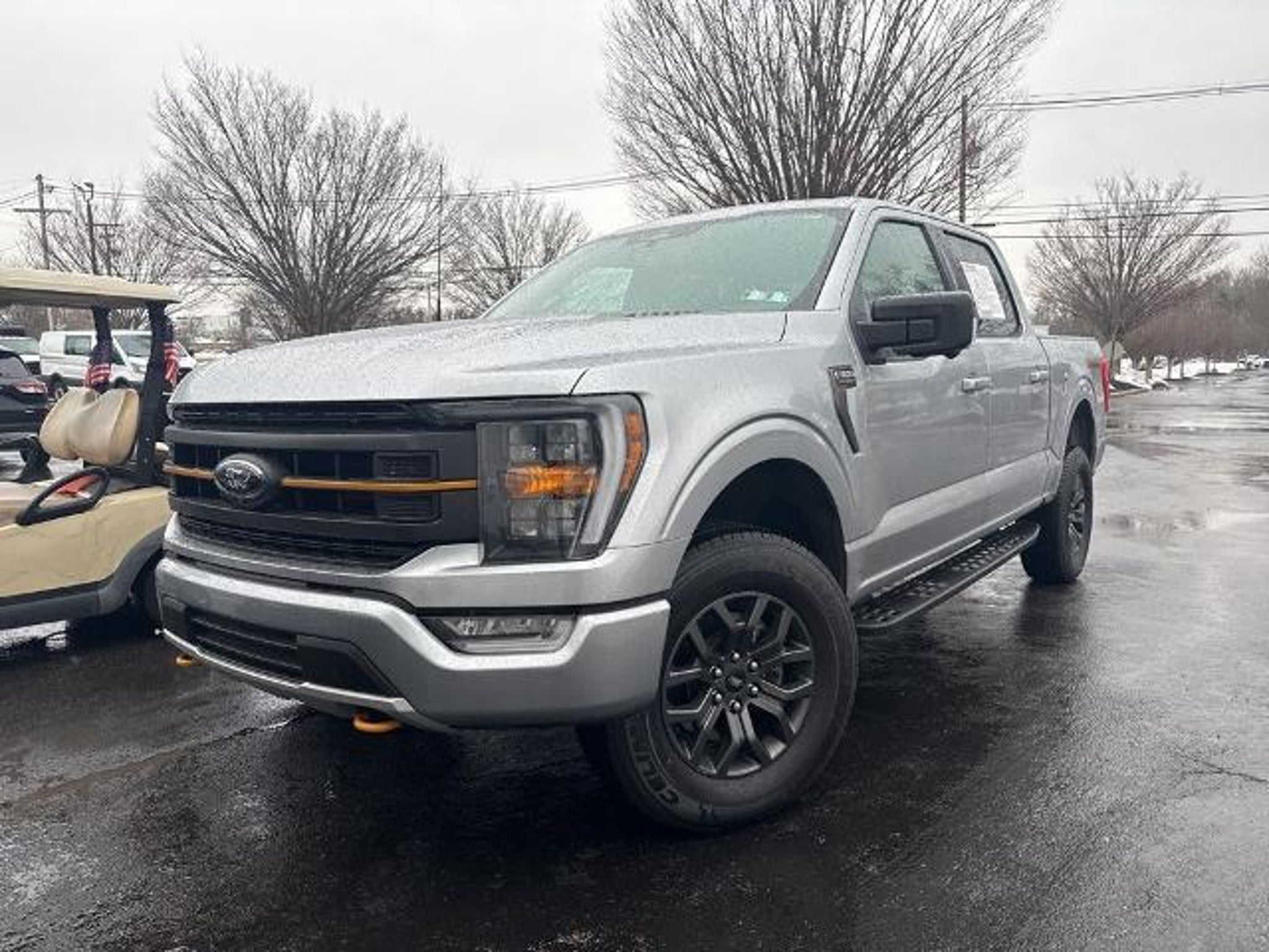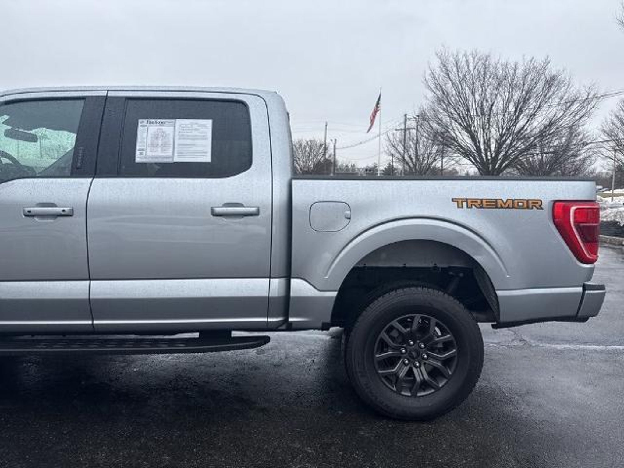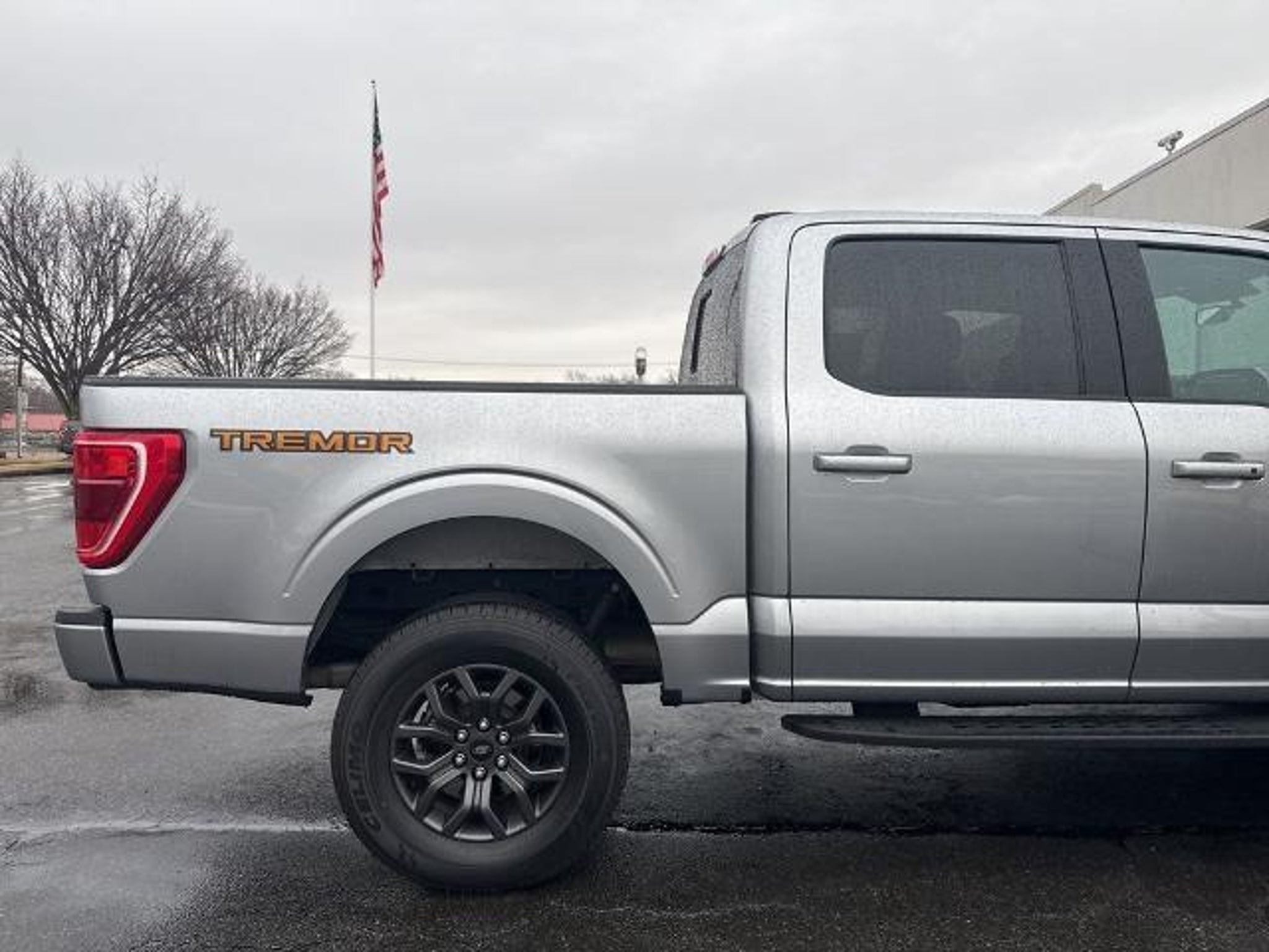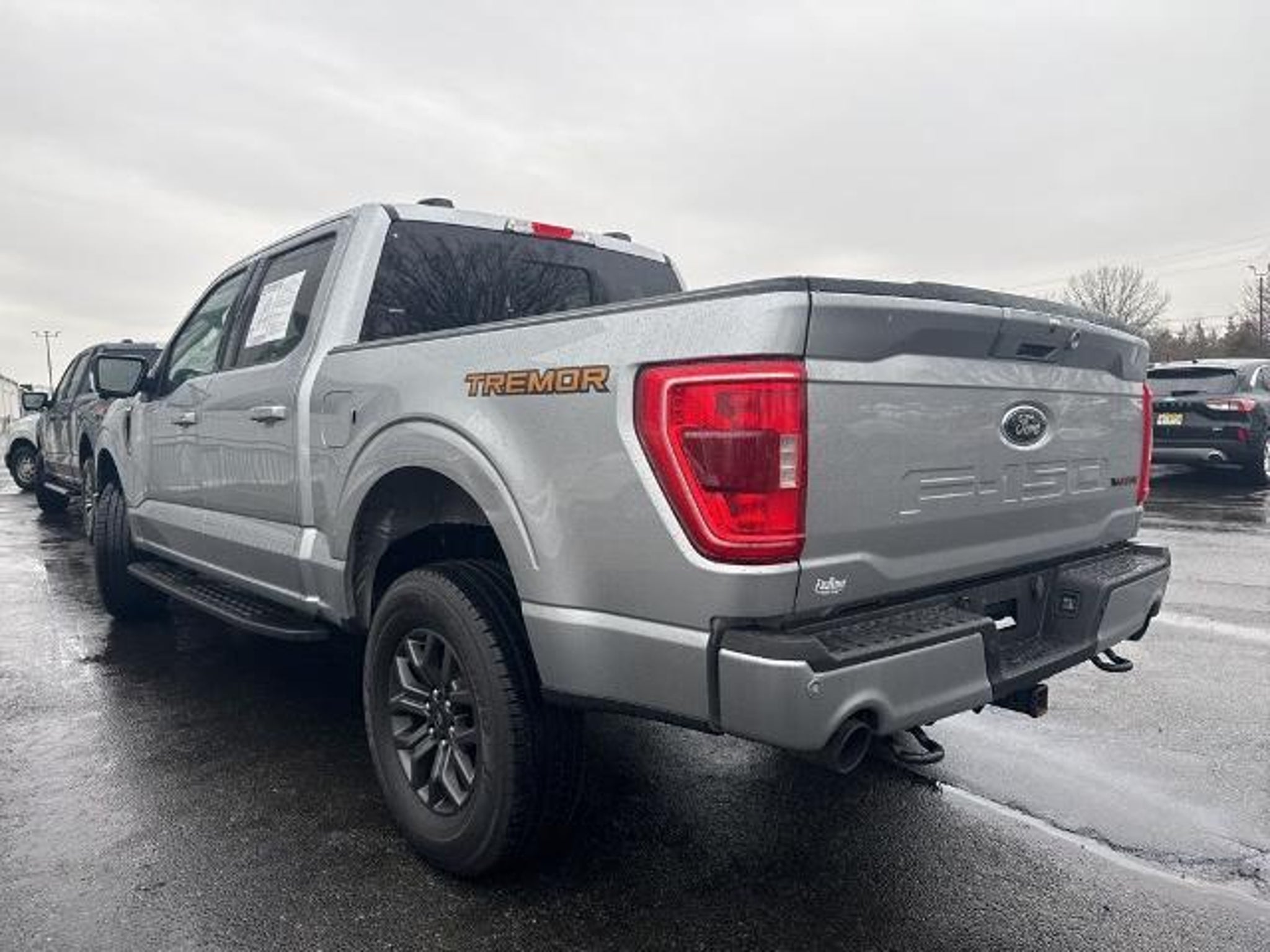 2023 Ford F-150 Tremor Silver Metallic 4WD 10-Speed Automatic 5.0L V8 4WD, 4-Wheel Disc Brakes, ABS brakes, Air Conditioning, Auto High-beam Headlights, Bed Utility Package, BoxLink, Brake assist, Class IV Trailer Hitch Receiver, Compass, Delay-off headlights, Driver door bin, Dual front impact airbags, Dual front side impact airbags, Electronic Locking w/3.73 Axle Ratio, Electronic Stability Control, Emergency communication system: SYNC 4 911 Assist, Exterior Parking Camera Rear, Front anti-roll bar, Front License Plate Bracket, Front reading lights, Front wheel independent suspension, Fully automatic headlights, Heated door mirrors, Illuminated entry, Integrated Trailer Brake Controller, LED Box Lighting, Low tire pressure warning, Occupant sensing airbag, Outside temperature display, Overhead airbag, Overhead console, Panic alarm, Passenger door bin, Passenger vanity mirror, Power door mirrors, Power steering, Power windows, Radio data system, Rear step bumper, Remote keyless entry, Security system, Speed control, Speed-sensing steering, Split folding rear seat, Steering wheel mounted audio controls, SYNC 4 w/Enhanced Voice Recognition, Tachometer, Tailgate Step w/Tailgate Work Surface, Telescoping steering wheel, Tilt steering wheel, Traction control, Trailer Tow Package, Trip computer, Variably intermittent wipers, Voltmeter, 4WD.