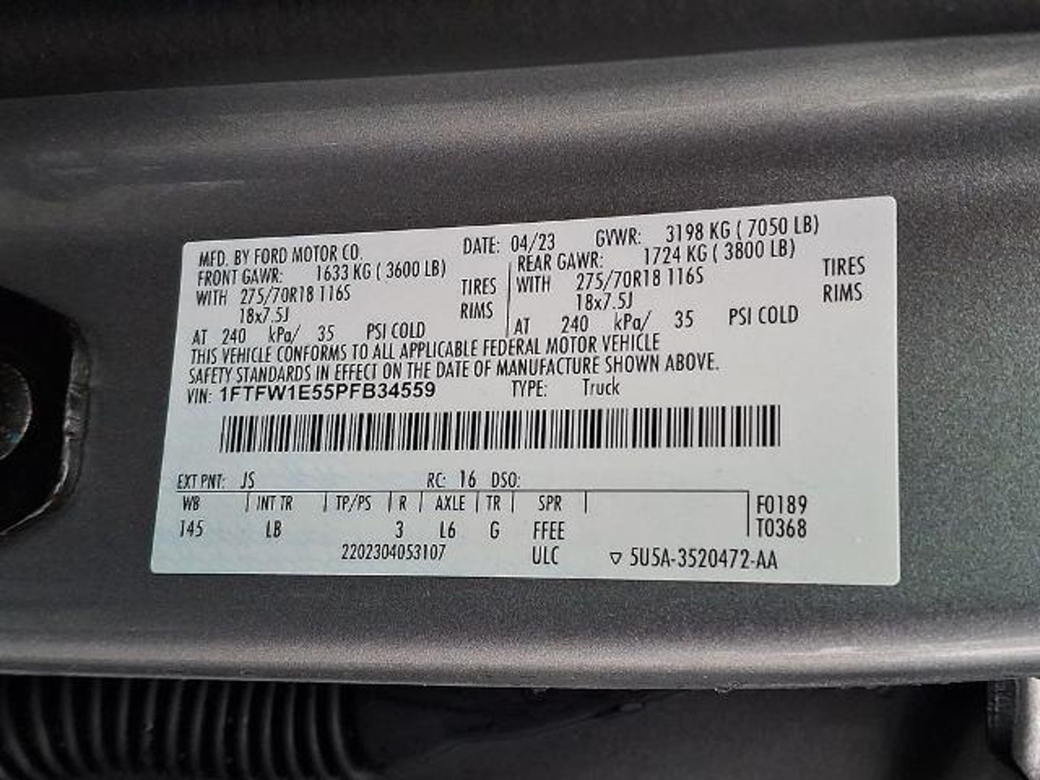 2023 Ford F-150 Tremor Silver Metallic 4WD 10-Speed Automatic 5.0L V8 4WD, 4-Wheel Disc Brakes, ABS brakes, Air Conditioning, Auto High-beam Headlights, Bed Utility Package, BoxLink, Brake assist, Class IV Trailer Hitch Receiver, Compass, Delay-off headlights, Driver door bin, Dual front impact airbags, Dual front side impact airbags, Electronic Locking w/3.73 Axle Ratio, Electronic Stability Control, Emergency communication system: SYNC 4 911 Assist, Exterior Parking Camera Rear, Front anti-roll bar, Front License Plate Bracket, Front reading lights, Front wheel independent suspension, Fully automatic headlights, Heated door mirrors, Illuminated entry, Integrated Trailer Brake Controller, LED Box Lighting, Low tire pressure warning, Occupant sensing airbag, Outside temperature display, Overhead airbag, Overhead console, Panic alarm, Passenger door bin, Passenger vanity mirror, Power door mirrors, Power steering, Power windows, Radio data system, Rear step bumper, Remote keyless entry, Security system, Speed control, Speed-sensing steering, Split folding rear seat, Steering wheel mounted audio controls, SYNC 4 w/Enhanced Voice Recognition, Tachometer, Tailgate Step w/Tailgate Work Surface, Telescoping steering wheel, Tilt steering wheel, Traction control, Trailer Tow Package, Trip computer, Variably intermittent wipers, Voltmeter, 4WD.