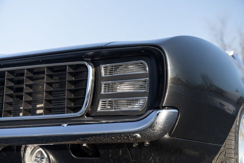 This RS/SS Convertible maintains its iconic 1969 presence while incorporating modern enhancements. The RS/SS front grille pairs with a custom Stingray hood to create an aggressive yet refined profile. LS3 badging subtly hints at the performance within. Carbon fiber mirrors and door handles add contemporary contrast, while LED billet taillights modernize the rear appearance. The electric-powered convertible top provides effortless open-air cruising. Riding on American Racing wheels and equipped with Wilwood 6-piston disc brakes, this Camaro balances classic muscle aesthetics with serious stopping power. A Ridetech fuel cap and convertible cover complete the detailed exterior package.