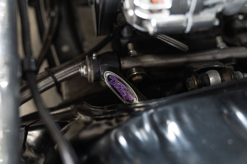 Inside, the cabin blends vintage style with modern comfort and custom craftsmanship. Custom TMI bucket seats and leather door panels create a refined yet performance-oriented feel. A custom leather-wrapped dash integrates Classic Instrument gauges for a clean, purposeful display. An IDIDIT polished adjustable steering column enhances driver ergonomics, while the left-mounted ignition system adds a subtle performance-inspired detail. Comfort and technology are elevated with Vintage Air AC/Heat and a Pioneer Bluetooth audio system integrated into a custom center console. Billet door vents add another level of precision detailing.