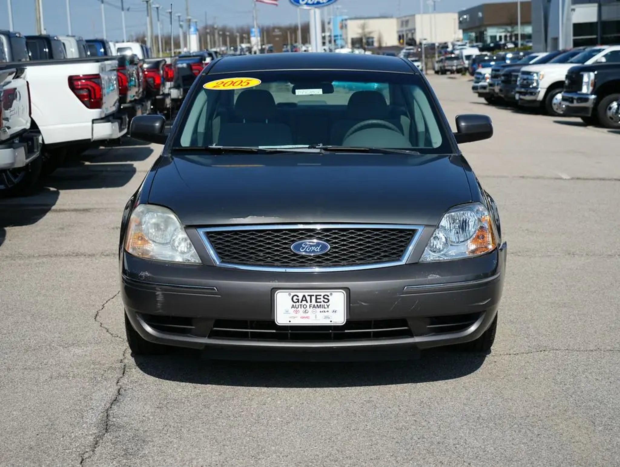 Clean CARFAX. Gray 2005 Ford Five Hundred SE FWD 6-Speed Automatic Duratec 3.0L V6 24V 17 7-Spoke Aluminum Wheels w/Painted Finish, 4 Speakers, 4-Wheel Disc Brakes, ABS brakes, Air Conditioning, Alloy wheels, AM/FM radio, AM/FM Stereo/Clock/Single CD, Bodyside moldings, Bumpers: body-color, CD player, Cloth Bucket Seats, Driver door bin, Driver vanity mirror, Dual front impact airbags, Four wheel independent suspension, Front anti-roll bar, Front Bucket Seats, Front Center Armrest, Front reading lights, Illuminated entry, Occupant sensing airbag, Overhead console, Panic alarm, Passenger door bin, Passenger vanity mirror, Power door mirrors, Power driver seat, Power steering, Power windows, Rear anti-roll bar, Rear reading lights, Rear seat center armrest, Rear window defroster, Remote keyless entry, Speed control, Split folding rear seat, Tachometer, Tilt steering wheel, Variably intermittent wipers. We are a family owned and operated business that began in 1915. We are now in our 4th generation of family ownership. As a family-run business, it's never been about gimmicks to get customers. We believe in earning our business the hard way - the only way - with referrals and satisfied customers. We're very proud of our business and dedication to superior customer service, but we couldn't have done it without our customers. 21/29 City/Highway MPG We are open online 24/7! Get pre-approved, receive a prompt trade evaluation and purchase from the comfort of your home. We will do the rest. Within a 100 mile radius, we offer free delivery to your door for any new or pre-owned vehicle. Call us, message us via online chat or email us to get started! Thank you for allowing our family the opportunity to serve your family. ***GATES FORD LINCOLN ***