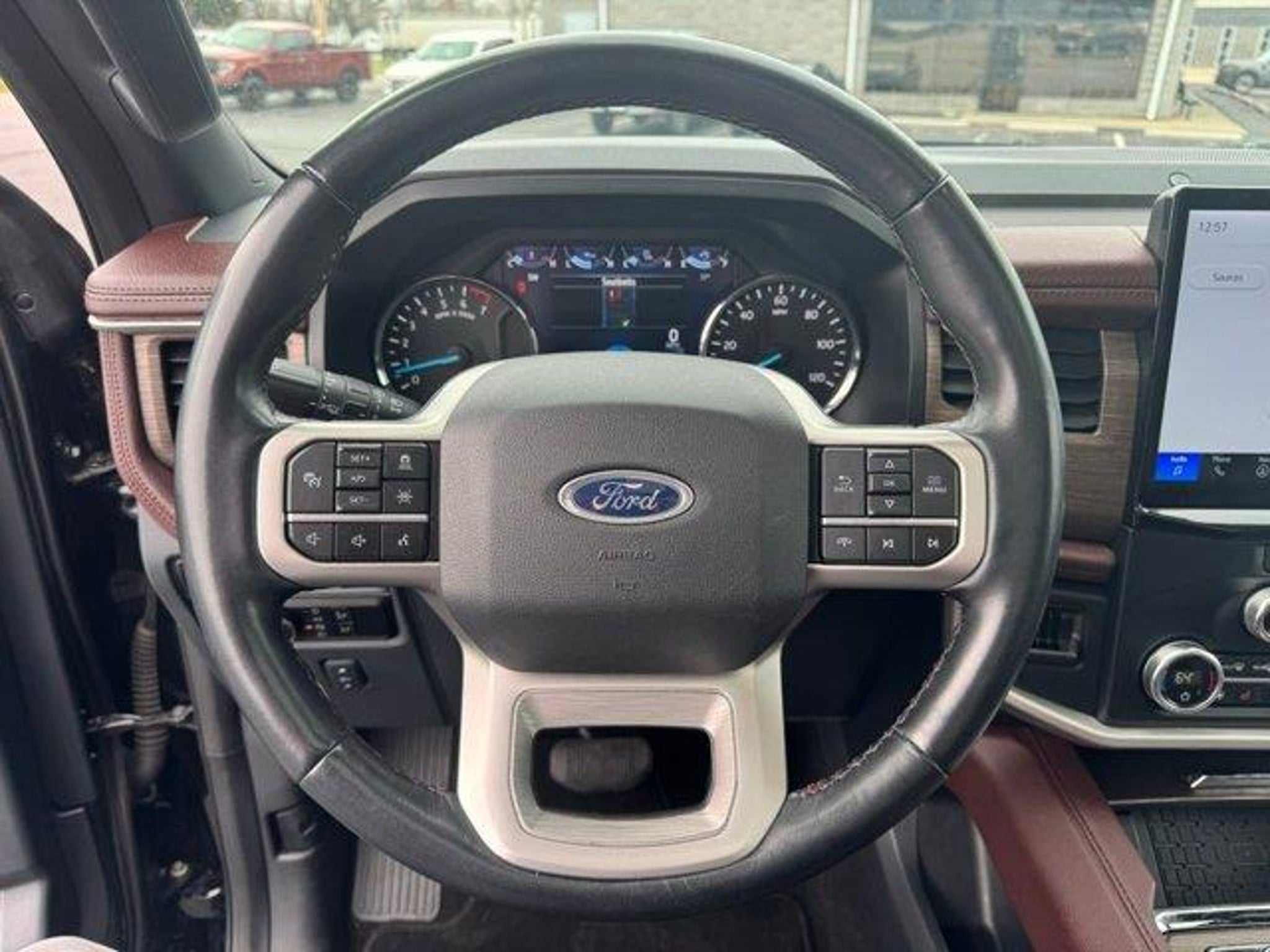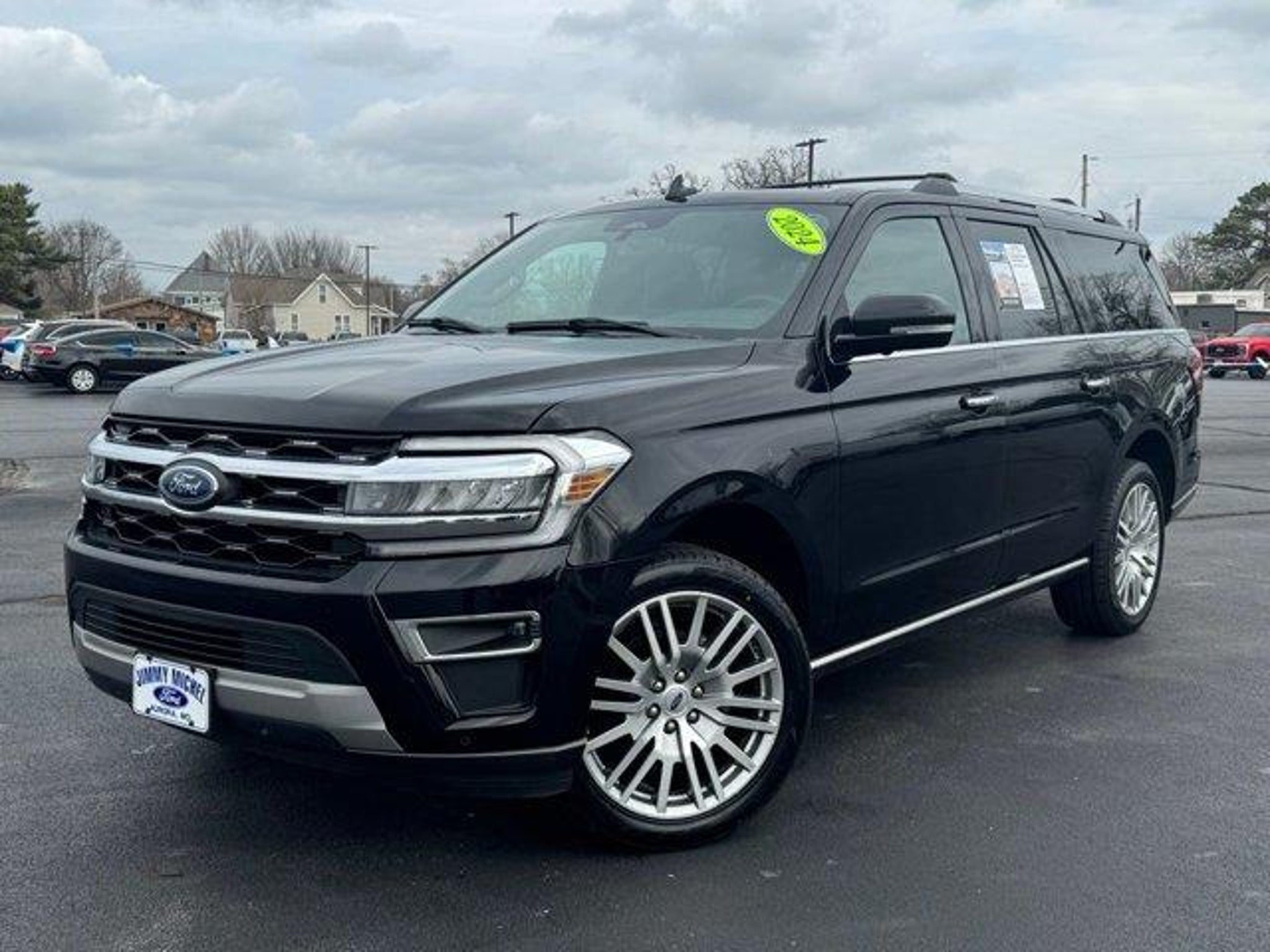 2024 Ford Expedition Max Limited 4D Sport Utility Expedition Max Limited, 4D Sport Utility, EcoBoost 3.5L V6 GTDi DOHC 24V Twin Turbocharged, 10-Speed Automatic, 4WD, Black Metallic, Mahogany Leather, Ebony Black Mesh Grille, Equipment Group 302A High Package, Heavy-Duty Independent Suspension, Magnetic-Painted Power Deployable Running Boards, Navigation system: Connected Navigation, Power moonroof, Power-Folding Sideview Mirrors w/Autofold, Wheels: 22 12-Spoke Polished Aluminum, 12 Speakers, 3.31 Axle Ratio, 360-Degree Camera w/Split View, 3rd row seats: split-bench, 4-Wheel Disc Brakes, ABS brakes, Adjustable pedals, Advanced Cargo Manager, Air Conditioning, Alloy wheels, AM/FM radio: SiriusXM with 360L, Auto High-beam Headlights, Auto-dimming door mirrors, Auto-dimming Rear-View mirror, Automatic temperature control, Black Roof-Rail Crossbars, Brake assist, Bumpers: body-color, Compass, Connected Navigation, Delay-off headlights, Driver door bin, Driver vanity mirror, Dual front impact airbags, Dual front side impact airbags, Electronic Stability Control, Emergency communication system: SYNC 4 911 Assist, Exterior Parking Camera Rear, Four wheel independent suspension, Front anti-roll bar, Front Bucket Seats, Front Center Armrest, Front dual zone A/C, Front fog lights, Front License Plate Bracket, Front reading lights, Fully automatic headlights, Garage door transmitter, Heated & Ventilated Leather Front Captain's Chairs, Heated door mirrors, Heated front seats, Heated rear seats, Heated steering wheel, Illuminated entry, Leather steering wheel, Low tire pressure warning, Memory seat, Occupant sensing airbag, Outside temperature display, Overhead airbag, Overhead console, Panic alarm, Passenger door bin, Passenger vanity mirror, Pedal memory, Power door mirrors, Power driver seat, Power Liftgate, Power passenger seat, Power steering, Power windows, Radio data system, Radio: B&O Sound System by Bang & Olufsen, Rain sensing wipers, Rear air conditioning, Rear anti-roll bar, Rear reading lights, Rear window defroster, Rear window wiper, Reclining 3rd row seat, Remote keyless entry, Reverse Brake Assist, Security system, SiriusXM w/360L, Speed control, Speed-sensing steering, Speed-Sensitive Wipers, Split folding rear seat, Spoiler, Steering wheel memory, Steering wheel mounted audio controls, SYNC 4 w/Enhanced Voice Recognition, Tachometer, Telescoping steering wheel, Tilt steering wheel, Traction control, Trip computer, Turn signal indicator mirrors, Variably intermittent wipers, Ventilated front seats
