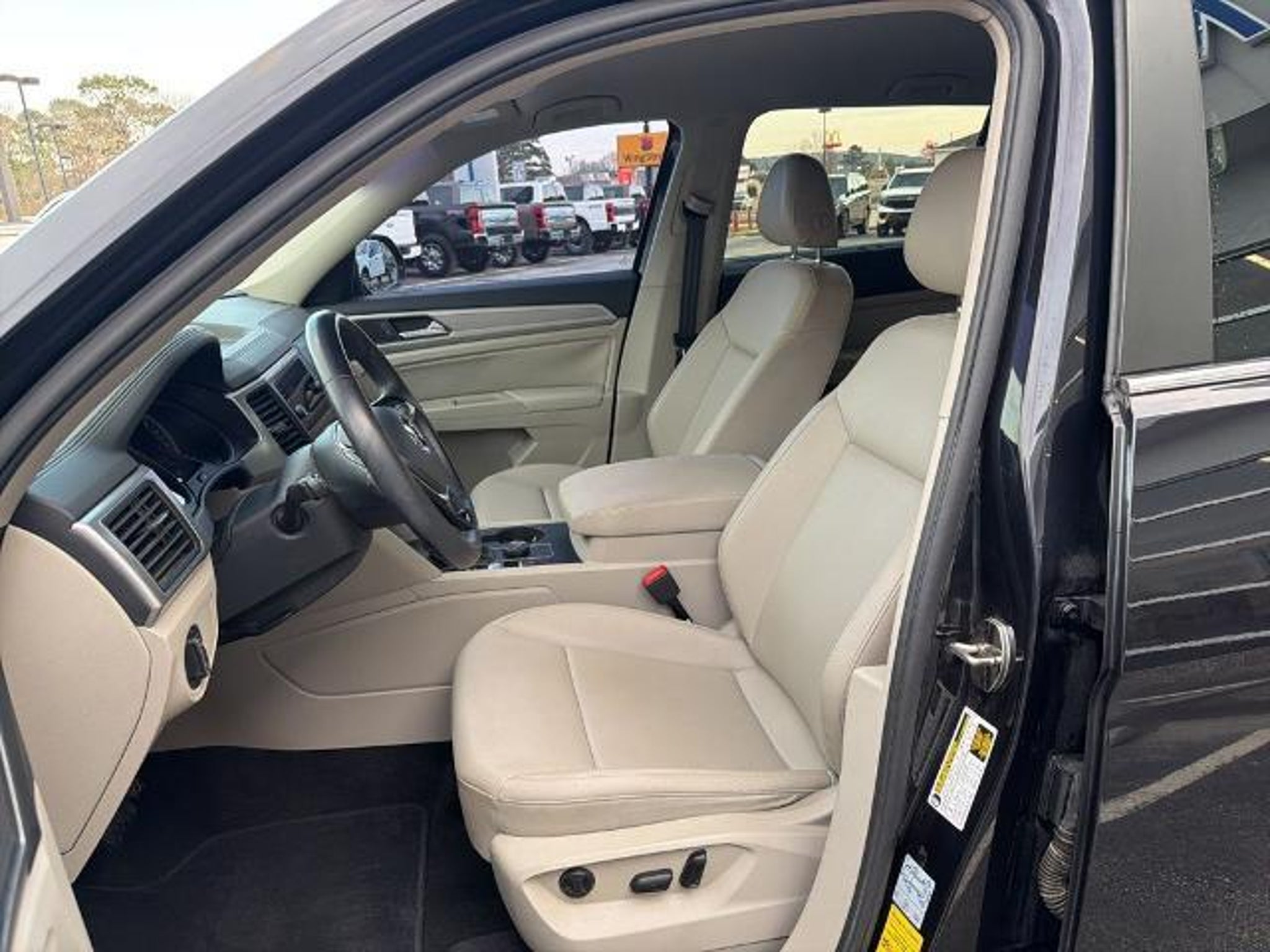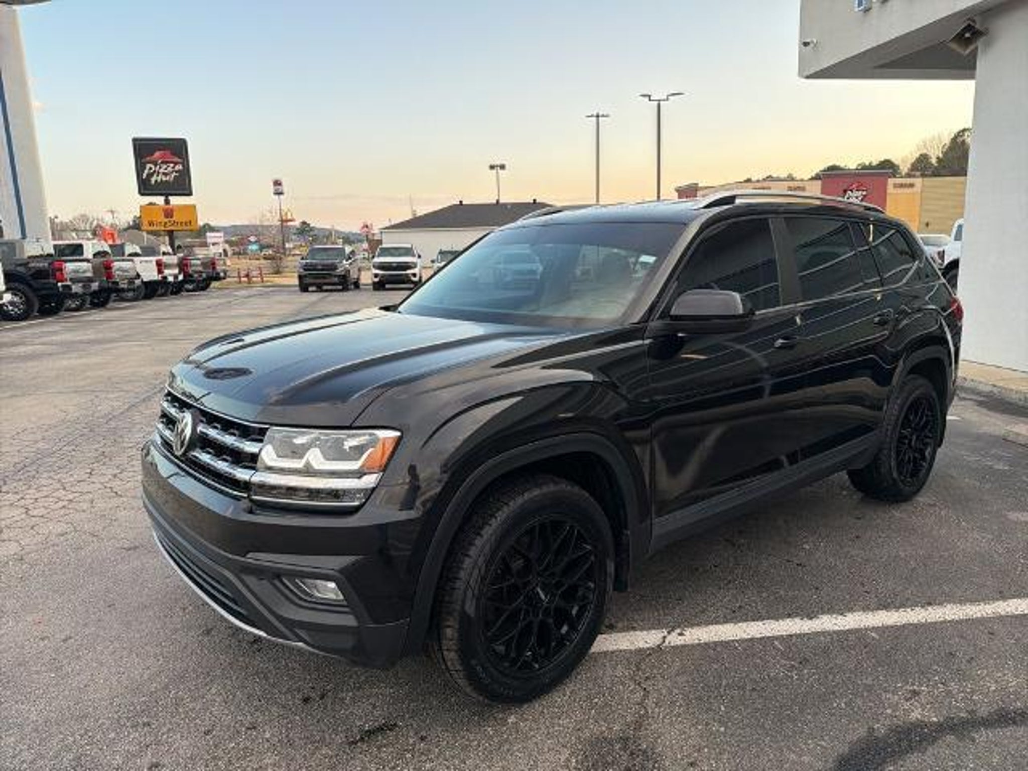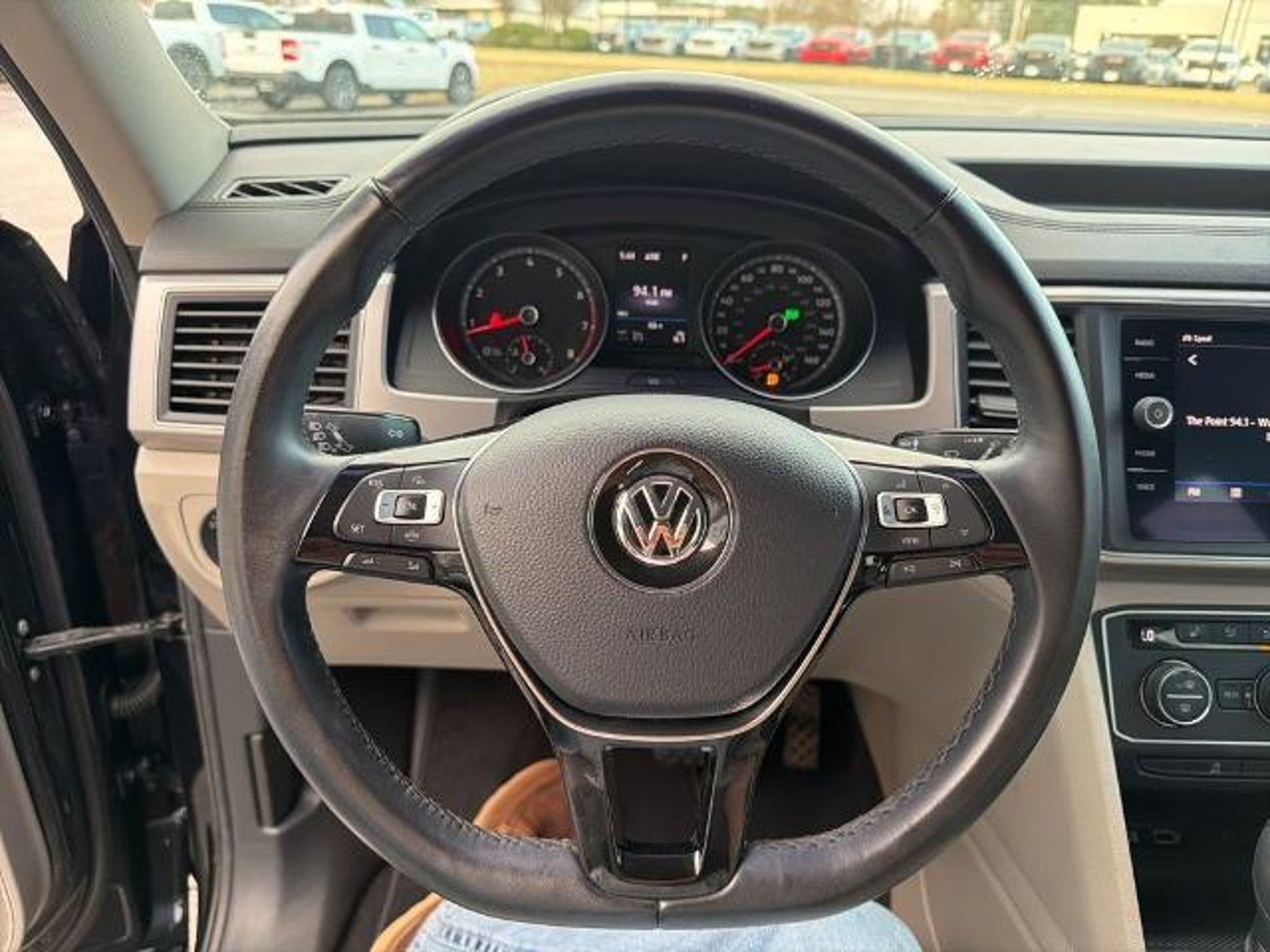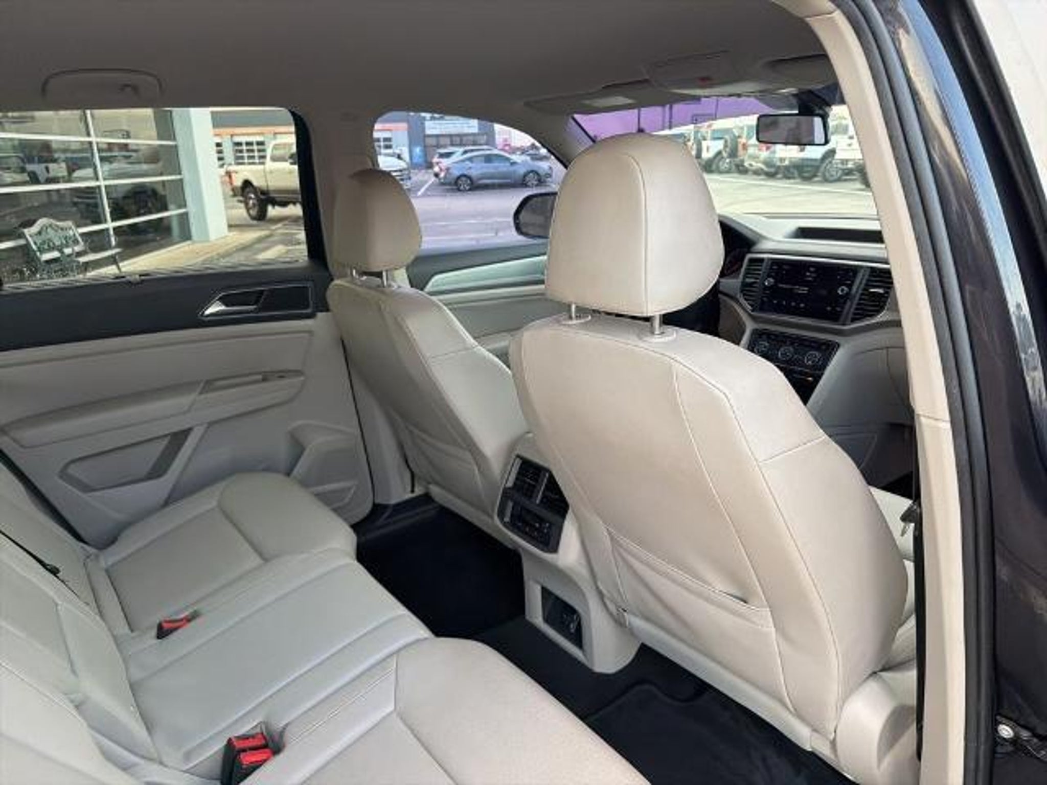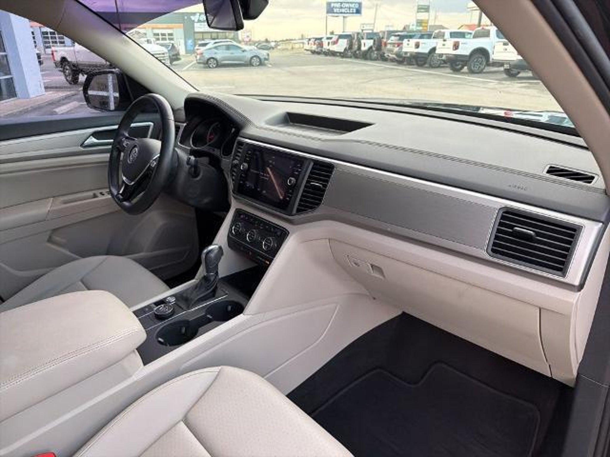 This 2019 Volkswagen Atlas 3.6L V6 SE in Black comes with the following features: 3.6L VR6 8-Speed Automatic with Tiptronic AWD 18 5-Spoke Wheels, 3.60 Axle Ratio, 3rd row seats: split-bench, 4-Wheel Disc Brakes, 8 Speakers, ABS brakes, Air Conditioning, Alloy wheels, AM/FM radio: SiriusXM, Automatic temperature control, Brake assist, Bumpers: body-color, Compass, Delay-off headlights, Driver door bin, Driver vanity mirror, Dual front impact airbags, Dual front side impact airbags, Electronic Stability Control, Emergency communication system: VW Car-Net services (capabilities require enrollment or subscription), Exterior Parking Camera Rear, Forward collision: FCW w/Autonomous Emergency Braking mitigation, Four wheel independent suspension, Front anti-roll bar, Front Bucket Seats, Front Center Armrest, Front dual zone A/C, Front fog lights, Front reading lights, Heated Comfort Front Bucket Seats, Heated door mirrors, Heated front seats, Illuminated entry, Low tire pressure warning, Occupant sensing airbag, Outside temperature display, Overhead airbag, Overhead console, Panic alarm, Passenger door bin, Passenger vanity mirror, Power door mirrors, Power driver seat, Power steering, Power windows, Radio data system, Radio: Composition Media 8.0 Touchscreen, Rain sensing wipers, Rear air conditioning, Rear anti-roll bar, Rear reading lights, Rear seat center armrest, Rear window defroster, Rear window wiper, Remote CD player, Remote keyless entry, Roof rack: rails only, Security system, Speed control, Speed-sensing steering, Split folding rear seat, Spoiler, Standard Suspension, Steering wheel mounted audio controls, Tachometer, Telescoping steering wheel, Tilt steering wheel, Traction control, Trip computer, Turn signal indicator mirrors, V-Tex Leatherette Seating Surfaces, and Variably intermittent wipers. Recent Arrival! Odometer is 4392 miles below market average! Awards: * 2019 KBB.com 12 Best Family Cars * 2019 KBB.com 10 Best Road Trip Cars
