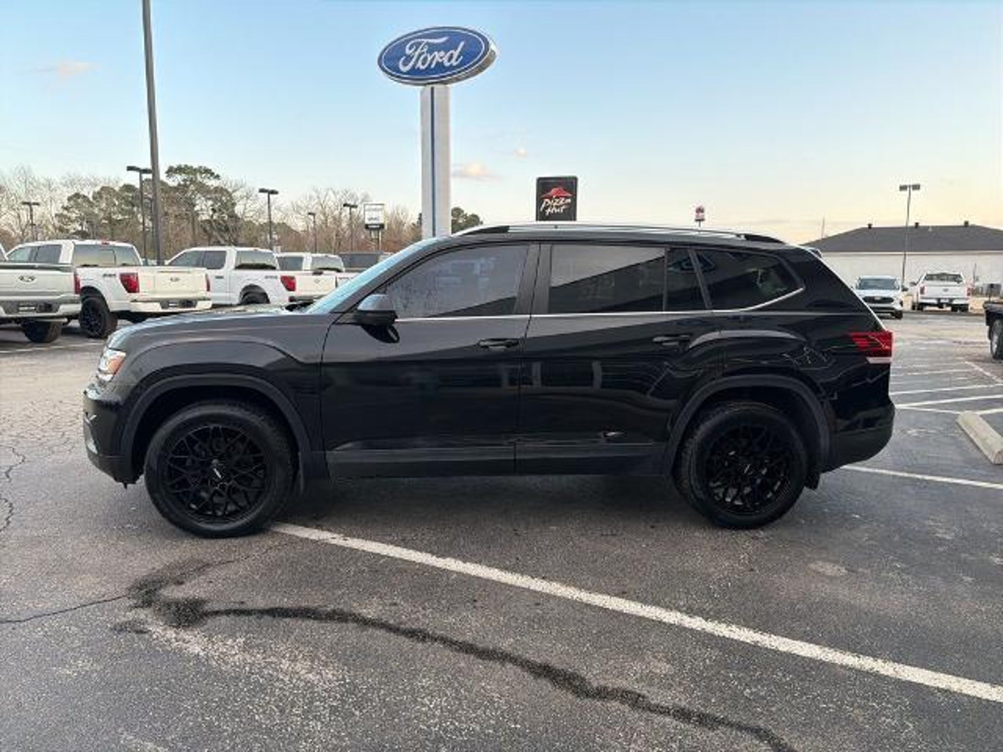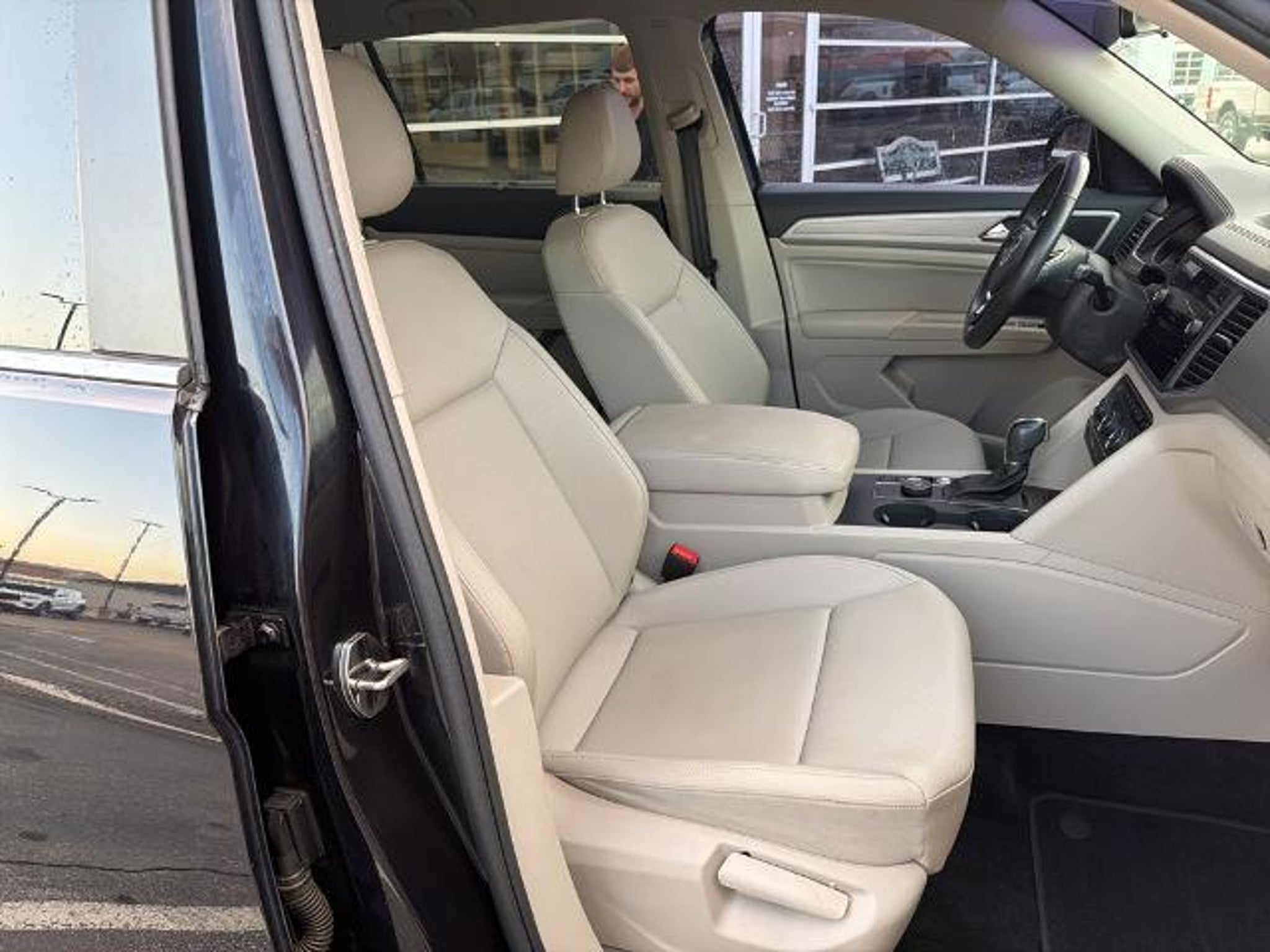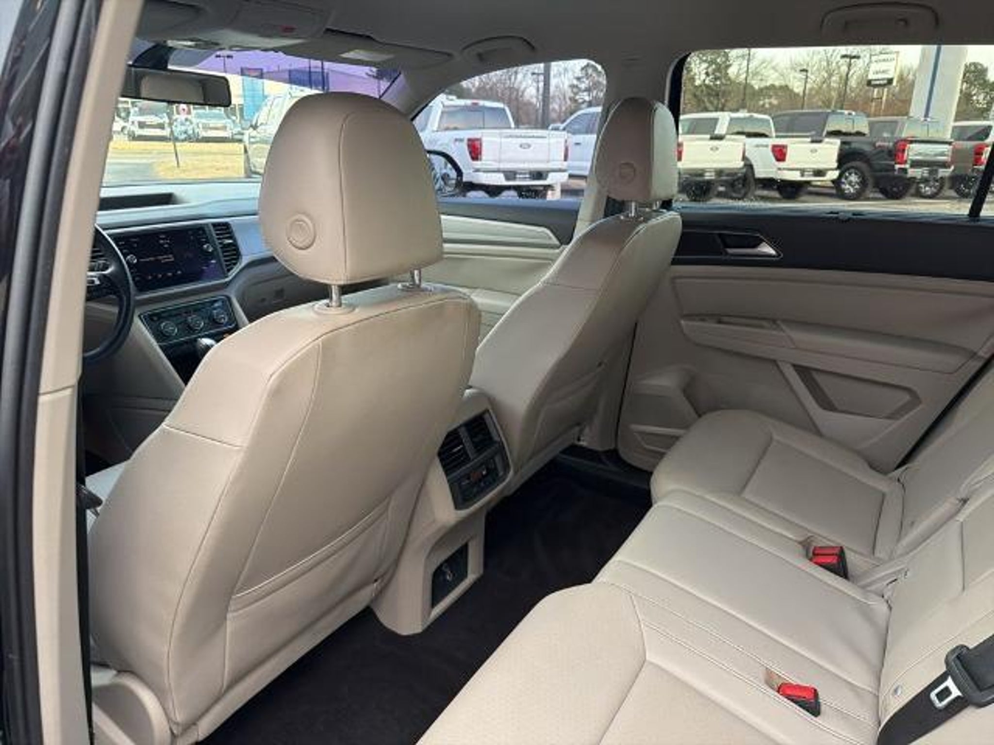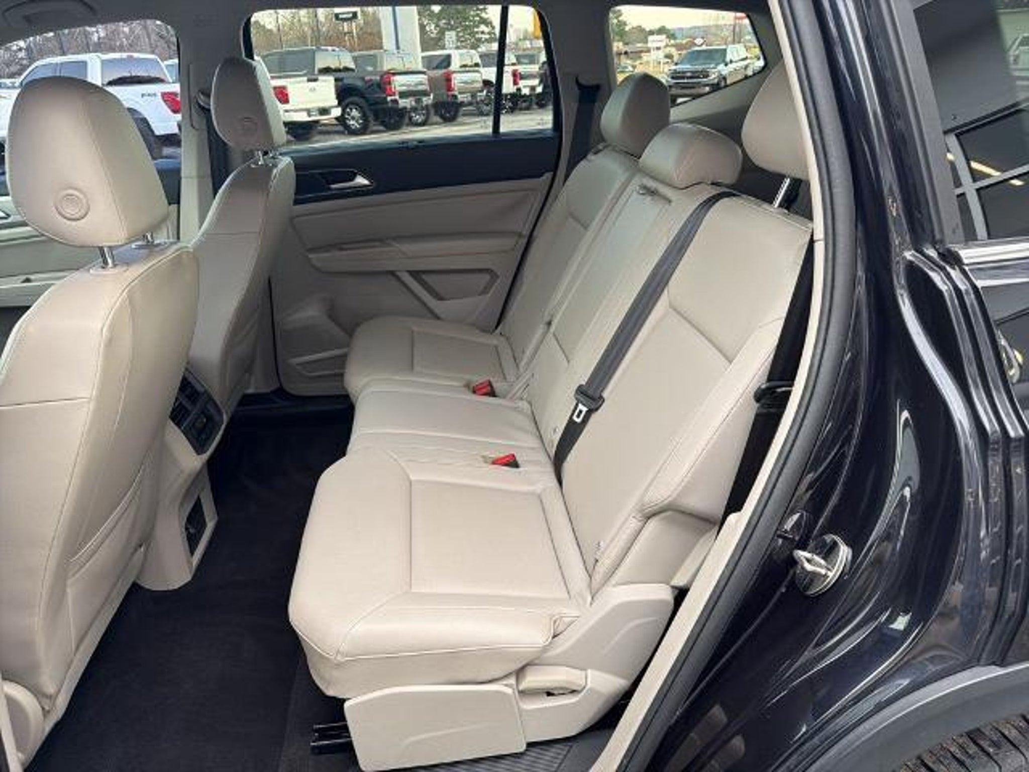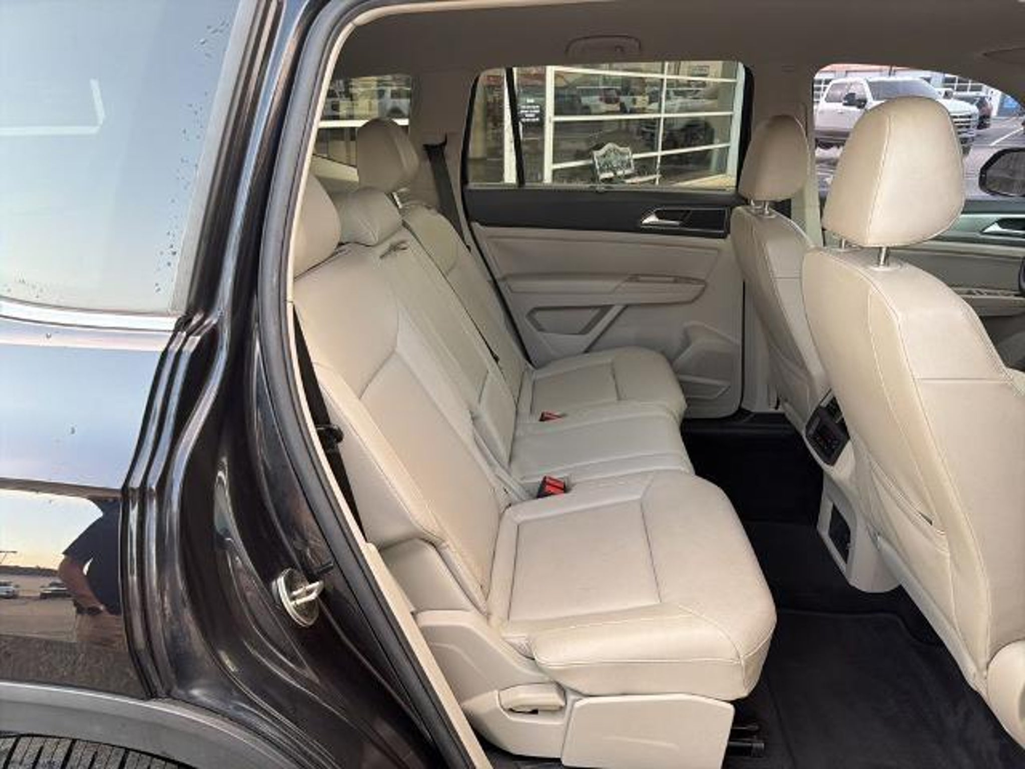 This 2019 Volkswagen Atlas 3.6L V6 SE in Black comes with the following features: 3.6L VR6 8-Speed Automatic with Tiptronic AWD 18 5-Spoke Wheels, 3.60 Axle Ratio, 3rd row seats: split-bench, 4-Wheel Disc Brakes, 8 Speakers, ABS brakes, Air Conditioning, Alloy wheels, AM/FM radio: SiriusXM, Automatic temperature control, Brake assist, Bumpers: body-color, Compass, Delay-off headlights, Driver door bin, Driver vanity mirror, Dual front impact airbags, Dual front side impact airbags, Electronic Stability Control, Emergency communication system: VW Car-Net services (capabilities require enrollment or subscription), Exterior Parking Camera Rear, Forward collision: FCW w/Autonomous Emergency Braking mitigation, Four wheel independent suspension, Front anti-roll bar, Front Bucket Seats, Front Center Armrest, Front dual zone A/C, Front fog lights, Front reading lights, Heated Comfort Front Bucket Seats, Heated door mirrors, Heated front seats, Illuminated entry, Low tire pressure warning, Occupant sensing airbag, Outside temperature display, Overhead airbag, Overhead console, Panic alarm, Passenger door bin, Passenger vanity mirror, Power door mirrors, Power driver seat, Power steering, Power windows, Radio data system, Radio: Composition Media 8.0 Touchscreen, Rain sensing wipers, Rear air conditioning, Rear anti-roll bar, Rear reading lights, Rear seat center armrest, Rear window defroster, Rear window wiper, Remote CD player, Remote keyless entry, Roof rack: rails only, Security system, Speed control, Speed-sensing steering, Split folding rear seat, Spoiler, Standard Suspension, Steering wheel mounted audio controls, Tachometer, Telescoping steering wheel, Tilt steering wheel, Traction control, Trip computer, Turn signal indicator mirrors, V-Tex Leatherette Seating Surfaces, and Variably intermittent wipers. Recent Arrival! Odometer is 4392 miles below market average! Awards: * 2019 KBB.com 12 Best Family Cars * 2019 KBB.com 10 Best Road Trip Cars