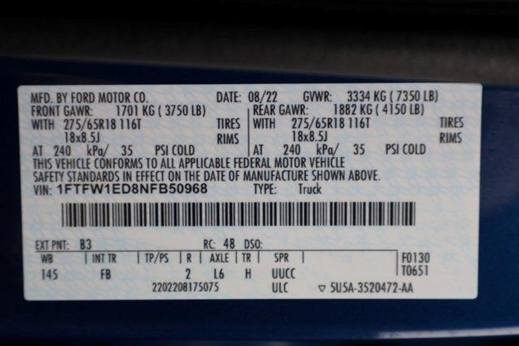 Discover the power and versatility of the 2022 Ford F-150 XLT. This impressive truck is equipped with a 3.5L PowerBoost Full-Hybrid V6 engine, delivering exceptional performance and efficiency with 23 MPG in the city and on the highway. Boasting a striking blue exterior, this F-150 XLT is more than just a workhorse â it's a stylish and capable companion that will elevate your driving experience. - 4WD - Bluetooth, Hands-Free Connection - Multi-zone Climate Control - Steering Wheel Controls - Backup Camera - Heated Seats - Premium Wheels - Towing Package - Remote Start - 4X4 - Equipment Group 302A High - Tow Technology Package - XLT Sport Appearance Package - Radio: AM/FM SiriusXM w/360L - Dual Zone Electronic Automatic Temperature Control - Intelligent Access w/Push Button Start - Body-Color Front & Rear Bumpers - Remote Start System w/Remote Tailgate Release - SecuriCode Drivers Side Keyless-Entry Keypad This F-150 XLT is packed with a wealth of features that cater to your every need. The Tow Technology Package, complete with an Integrated Trailer Brake Controller and Pro Trailer Backup Assist, ensures effortless towing. The XLT Sport Appearance Package adds a touch of style with body-color accents and unique interior finishes, while the Bed Utility Package enhances the truck's versatility with BoxLink, premium locking cleats, and LED box lighting. Climb inside and experience the comfort and convenience of the 10-way power driver and passenger seats, heated front seats, and the advanced SYNC 4 infotainment system with enhanced voice recognition and wireless connectivity. The 8-inch productivity screen in the instrument cluster keeps you informed, while the onboard 400-watt outlet provides ample power for your tools and accessories. With its impressive capabilities, advanced technology, and striking good looks, the 2022 Ford F-150 XLT is the perfect companion for your next adventure. Visit our showroom today and let us demonstrate how this exceptional truck can elevate your driving experience.
