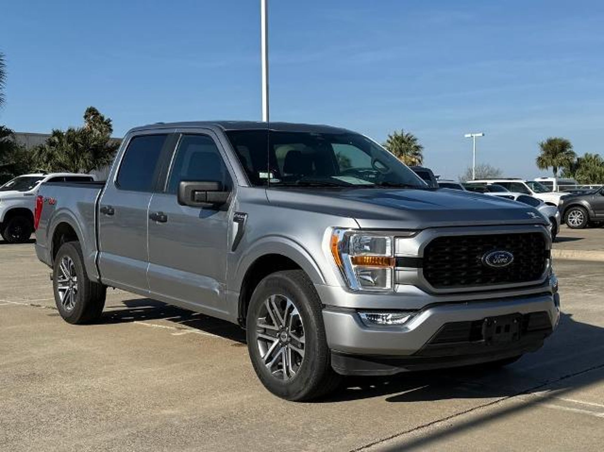 Iconic Silver Metallic 2022 Ford F-150 XL RWD 10-Speed Automatic 5.0L V8 This vehicle comes equipped with the following features and options: Equipment Group 101A High (Cruise Control and Reverse Sensing System), STX Appearance Package (Radio: AM/FM SiriusXM w/360L, Rear Window Defroster, Rear Window Fixed Privacy Glass, SYNC 4 w/Enhanced Voice Recognition, and Unique Sport Cloth 40/20/40 Front-Seats), 20 6-Spoke Machined-Aluminum Wheels, 4-Wheel Disc Brakes, 6 Speakers, ABS brakes, Air Conditioning, AM/FM radio, Auto High Beam, Auto High-beam Headlights, Auto Start-Stop Removal, Brake assist, Class IV Trailer Hitch Receiver, Cloth 40/20/40 Front Seat, Color-Coordinated Carpet w/Carpeted Floor Mats, Compass, Delay-off headlights, Driver door bin, Dual front impact airbags, Dual front side impact airbags, Electronic Stability Control, Emergency communication system: SYNC 4 911 Assist, Exterior Parking Camera Rear, Fog Lamps, Front anti-roll bar, Front Center Armrest, Front reading lights, Front wheel independent suspension, Fully automatic headlights, Illuminated entry, Lane-Keeping System, Low tire pressure warning, Occupant sensing airbag, Outside temperature display, Overhead airbag, Overhead console, Panic alarm, Passenger door bin, Passenger vanity mirror, Power door mirrors, Power steering, Power windows, Pre-Collision Assist w/Automatic Emergency Braking, Radio data system, Radio: AM/FM Stereo w/6 Speakers, Rear step bumper, Rear-View Camera, Remote keyless entry, Security system, Speed-sensing steering, Split folding rear seat, Steering wheel mounted audio controls, SYNC 4, Tachometer, Telescoping steering wheel, Tilt steering wheel, Traction control, Trip computer, Variably intermittent wipers, Voltmeter, and Wheels: 17 Silver Steel. Odometer is 6916 miles below market average!
