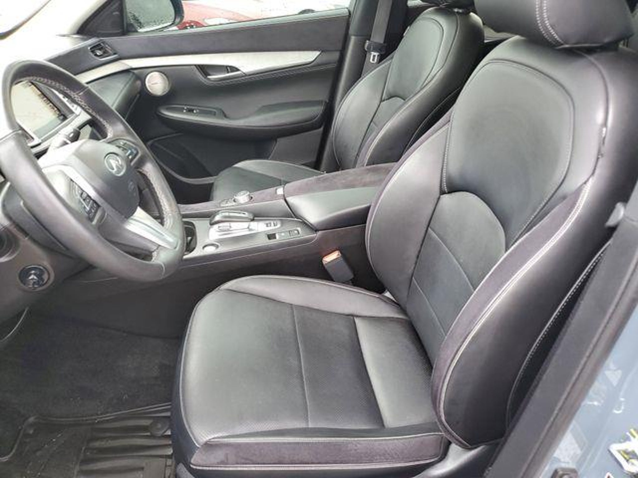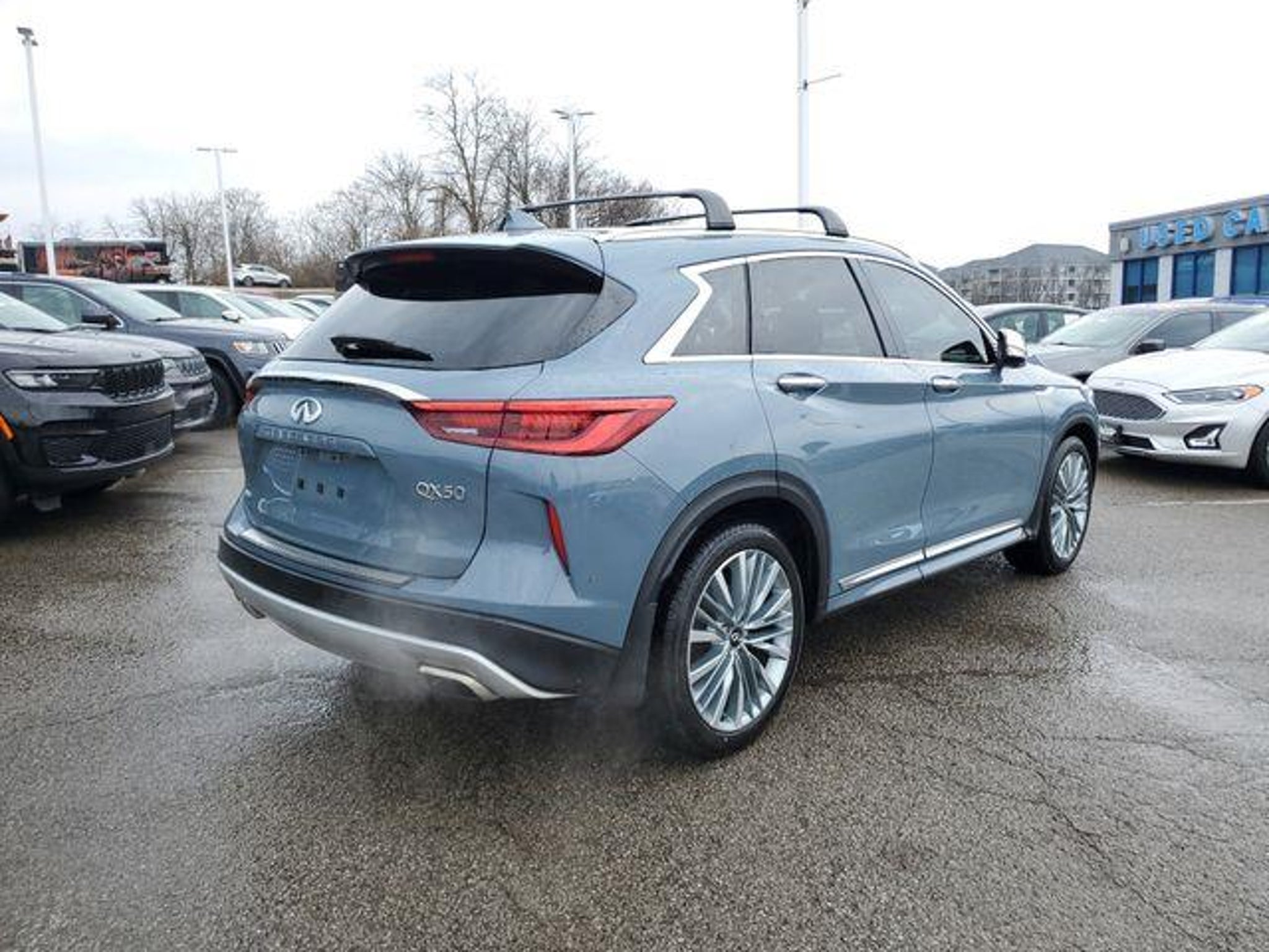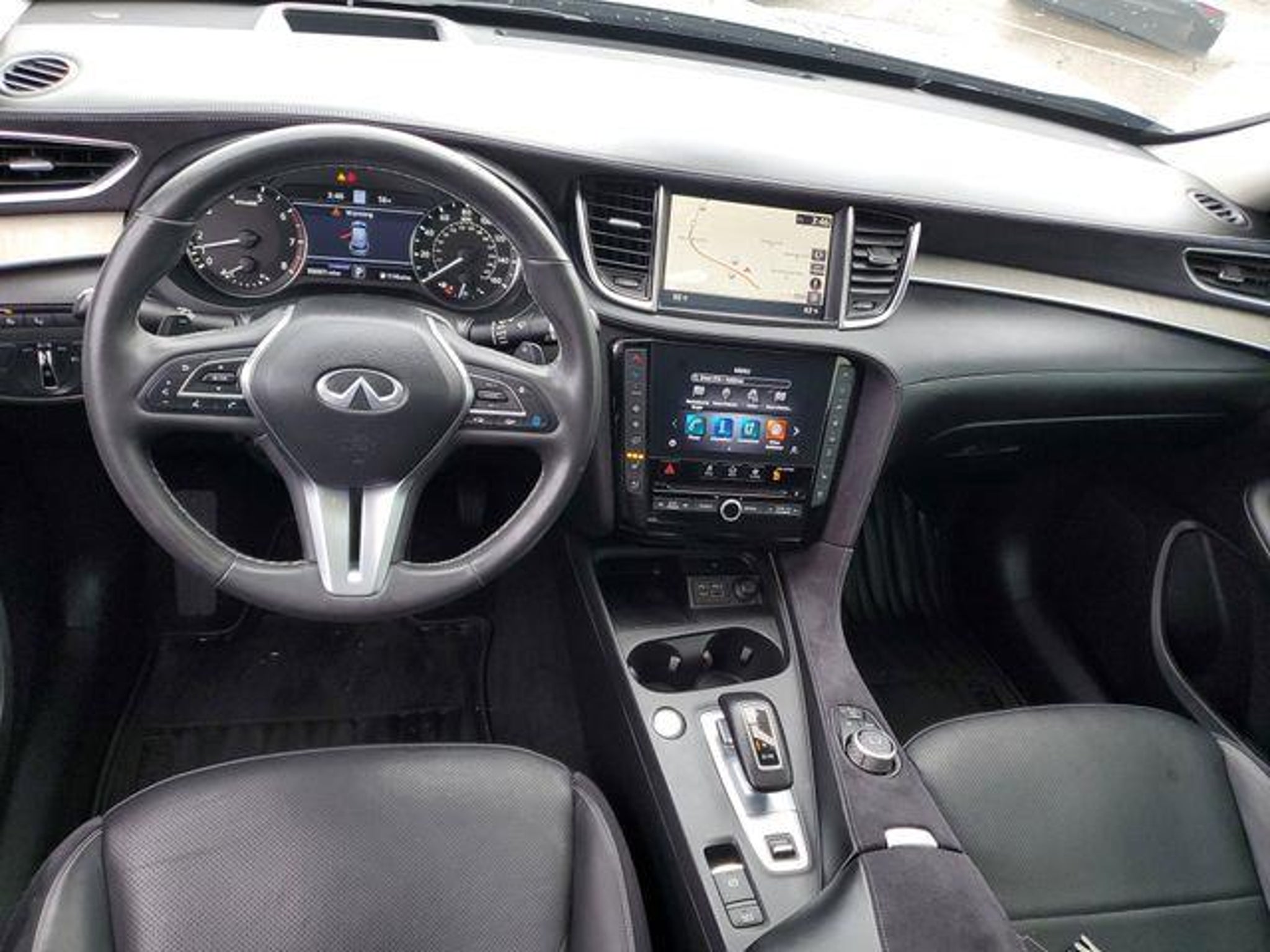 Slate Gray 2023 INFINITI QX50 Sensory AWD CVT I4 Recent Arrival! 22/28 City/Highway MPG This 2023 INFINITI QX50 Sensory comes equipped with Accent Package, 16 Speakers, 4-Wheel Disc Brakes, 5.846 Axle Ratio, ABS brakes, Air Conditioning, Alloy wheels, AM/FM radio: SiriusXM, Auto High-beam Headlights, Auto tilt-away steering wheel, Auto-dimming door mirrors, Auto-dimming Rear-View mirror, Automatic temperature control, Brake assist, Bumpers: body-color, CD player, Climate Controlled Front Bucket Seats, Cross Bars, Delay-off headlights, Driver door bin, Driver vanity mirror, Dual front impact airbags, Dual front side impact airbags, Electronic Stability Control, Emergency communication system: INFINITI InTouch (1-year complimentary trial), Floor Mats, Four wheel independent suspension, Front anti-roll bar, Front Bucket Seats, Front Center Armrest, Front dual zone A/C, Front fog lights, Front reading lights, Garage door transmitter: HomeLink, Genuine wood door panel insert, Heads-Up Display, Heated door mirrors, Heated front seats, Heated rear seats, Heated steering wheel, Illuminated entry, Illuminated Kick Plates, Knee airbag, Leather Shift Knob, Leather steering wheel, Literature Kit, Low tire pressure warning, Memory seat, Navigation system: INFINITI InTouch Navigation, Occupant sensing airbag, Outside temperature display, Overhead airbag, Overhead console, Panic alarm, Passenger door bin, Passenger vanity mirror, Power door mirrors, Power driver seat, Power Liftgate, Power moonroof, Power passenger seat, Power steering, Power windows, Premium audio system: Bose, Radio data system, Radio: Bose Performance Series Audio System, Rain sensing wipers, Rear anti-roll bar, Rear Bumper Protector, Rear reading lights, Rear seat center armrest, Rear side impact airbag, Rear window defroster, Rear window wiper, Remote keyless entry, Security system, Semi-Aniline Leather-Appointed Seat Trim, Speed control, Speed-sensing steering, Speed-Sensitive Wipers, Splash Guards (Set of 4), Split folding rear seat, Spoiler, Steering wheel memory, Steering wheel mounted audio controls, Tachometer, Telescoping steering wheel, Tilt steering wheel, Traction control, Trip computer, Turn signal indicator mirrors, USB Charging Cable Set, Variably intermittent wipers, Ventilated front seats, Welcome Lighting w/Logo, Wheels: 20 Dark Painted, and Wheels: 20 Type A Silver Painted Machine Finished.