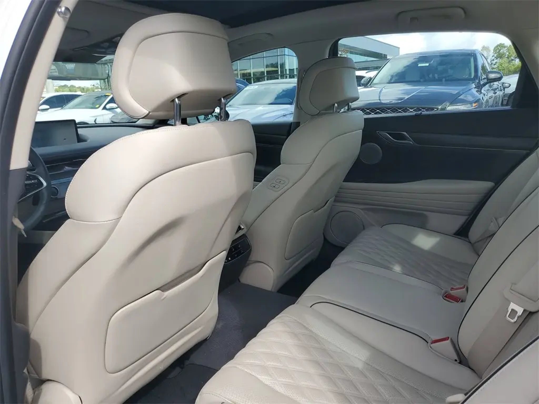 The price does not include tax, tag, license, an electronic filing fee of $449.00**, a private tag agency fee of $199.00**, and a predelivery service charge of $1199.00** **This charge represents costs and profit to the dealer for items such as inspecting, cleaning, and adjusting vehicles, as well as preparing documents related to the sale. * EPA-estimate metric: these are contingent on ideal conditions within a lab. Real-world situations such as carrying passengers or cargo, using climate control, driving style, and ambient temperatures can affect actual metrics. 16/25 City/Highway MPG Verbier White 2023 Genesis G80 3.5T AWD 8-Speed Automatic 3.5L V6 PDI Turbocharged DOHC 24V LEV3-ULEV70 375hp This vehicle comes equipped with Option Group 01, 21 Speakers, 4-Wheel Disc Brakes, ABS brakes, Adaptive suspension, Air Conditioning, Alloy wheels, AM/FM radio: SiriusXM, Android Auto & Apple CarPlay, Anti-whiplash front head restraints, Auto High-beam Headlights, Auto tilt-away steering wheel, Auto-dimming door mirrors, Auto-dimming Rear-View mirror, Automatic temperature control, Bumpers: body-color, Compass, Delay-off headlights, Driver door bin, Driver vanity mirror, Dual front impact airbags, Dual front side impact airbags, Electronic Stability Control, Emergency communication system: Genesis Connected Services, Exterior Parking Camera Rear, First Aid Kit, Four wheel independent suspension, Front anti-roll bar, Front Bucket Seats, Front Center Armrest, Front dual zone A/C, Front Passenger Seat Walk-In Device, Front reading lights, Fully automatic headlights, Garage door transmitter: HomeLink, Heated & Ventilated Front Bucket Seats, Heated door mirrors, Heated front seats, Heated rear seats, Heated steering wheel, Illuminated entry, Knee airbag, Leather Seating Surfaces, Leather steering wheel, Low tire pressure warning, Memory seat, Mud Guards, Navigation System, Occupant sensing airbag, Outside temperature display, Overhead airbag, Overhead console, Panic alarm, Passenger door bin, Passenger vanity mirror, Power door mirrors, Power driver seat, Power moonroof, Power passenger seat, Power steering, Power windows, Radio data system, Radio: AM/FM/HD/SiriusXM Lexicon Audio System, Rain sensing wipers, Rear air conditioning, Rear anti-roll bar, Rear reading lights, Rear seat center armrest, Rear side impact airbag, Rear Window Blind, Rear window defroster, Remote keyless entry, Reversible Cargo Tray, Security system, Speed control, Speed-sensing steering, Speed-Sensitive Wipers, Steering wheel memory, Steering wheel mounted audio controls, Tachometer, Telescoping steering wheel, Tilt steering wheel, Traction control, Trip computer, Turn signal indicator mirrors, Variably intermittent wipers, Ventilated front seats, Wheel Locks, and Wheels: 19x8.5J Fr & 19x9.5J Rr Alloy . Recent Arrival!