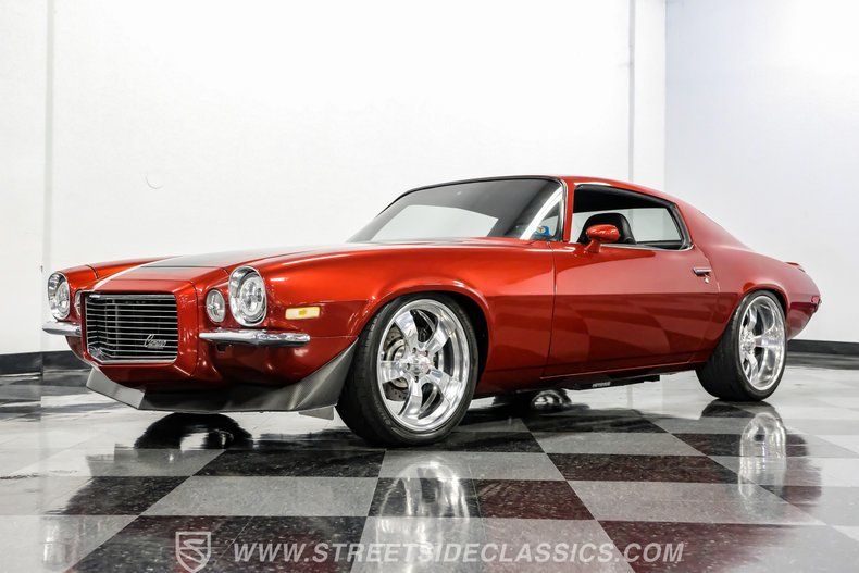 Details > 1972 Chevrolet Camaro RS Restomod For Sale in Fort Worth, TX Private Party Sellers Click here to place your ad now! You auta tell them you saw the ad in AutaBuy when you call or email. 1/75 2/75 3/75 4/75 5/75 6/75 7/75 8/75 9/75 10/75 11/75 12/75 13/75 14/75 15/75 16/75 17/75 18/75 19/75 20/75 21/75 22/75 23/75 24/75 25/75 26/75 27/75 28/75 29/75 30/75 31/75 32/75 33/75 34/75 35/75 36/75 37/75 38/75 39/75 40/75 41/75 42/75 43/75 44/75 45/75 46/75 47/75 48/75 49/75 50/75 51/75 52/75 53/75 54/75 55/75 56/75 57/75 58/75 59/75 60/75 61/75 62/75 63/75 64/75 65/75 66/75 67/75 68/75 69/75 70/75 71/75 72/75 73/75 74/75 75/75 View 75 Photos View All Add to My Garage Parked in Your Garage! Streetside Classic Cars Dallas Call: 817-764-8000 Contact Seller: I would like to: Make Offer Check Availability Ask A Question Request More Photos Check Financing Options Send a copy of this message to me Add this listing to my garage Send to Mobile Exterior Color Claret Metallic Stock # 8081-DFW Estimated Monthly Payment $2,245 mo Apply Now J.J. Best Banc & Co. 1972 Chevrolet Camaro RS Restomod Description: New Arrival! Details coming soon! Call 817-764-8000 for more information. Be sure to ask about our services offered; Financing, Vehicle Protection Plan, Insurance, and Transportation to your driveway! · Color: Claret Metallic Price: $128,995. Exterior Color Claret Metallic Stock # 8081-DFW Estimated Monthly Payment $2,245 mo Apply Now J.J. Best Banc & Co. Add to My Garage Parked in Your Garage! Call Seller Message Seller Streetside Classic Cars Dallas Call: 817-764-8000 Contact Seller: I would like to: Make Offer Check Availability Ask A Question Request More Photos Check Financing Options Send a copy of this message to me Add this listing to my garage Offered for sale by Streetside Classic Cars Dallas Call 817-764-8000 FORT WORTH, TX Mention AutaBuy.mx when you call. Price: $128,995. Offered for sale by Streetside Classic Cars Dallas Call 817-764-8000 FORT WORTH, TX Mention AutaBuy.mx when you call. [entire inventory] Ask Auta Intelligence What colors did these come in? What makes this model desirable to enthusiasts? Tell me more about this model Which years was this body style produced? Which engines were most common for this year? Where is this located? What transmission options did these offer? What's the typical 0-60 time for this configuration? What engine options did these come with? How many Camaro RS Restomods were produced in Claret Metallic? What trim levels were available for this model? When was this model first introduced? Can you show me more sports cars for a similar price? What factory options were available on this model? How far is this from me? What's the typical 1/4 mile time for this setup? How much horsepower does this have? How many of these were produced? What movies featured cars like this? What makes this model year special? What nicknames does this model have? What makes this model desirable to enthusiasts? Do you have a similar car to sell? List It Now! Questions about this car? Ask Auta Intelligence for production numbers, available options, etc. · Subscribe to AutaBuy! · Send a Gift Subscription Notice to a Friend