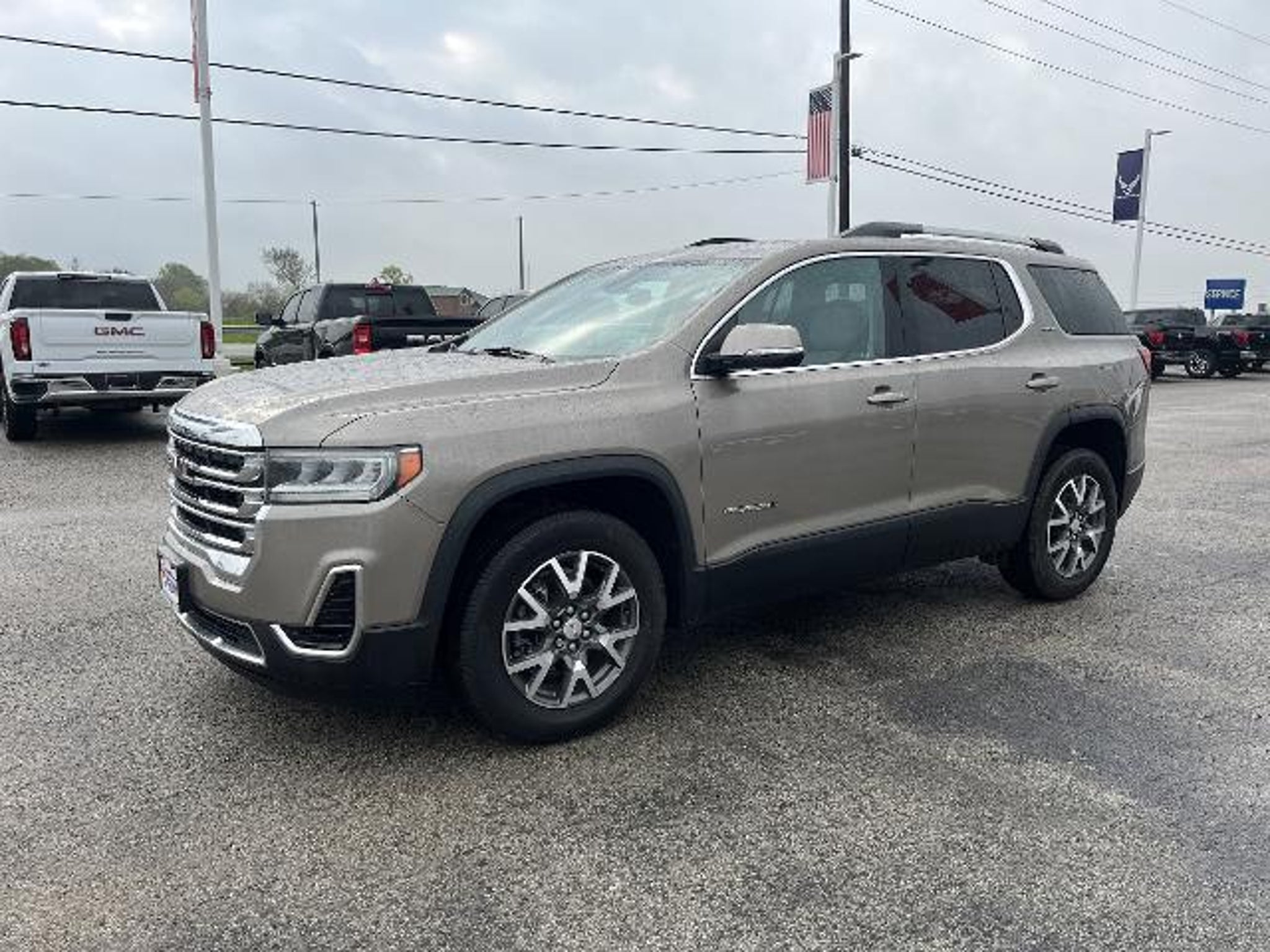 Light Stone Metallic 2023 GMC Acadia SLE AWD 9-Speed Automatic 2.0L Turbocharged AWD, Gray Cloth, 120-Volt Power Outlet, 8-Way Power Driver Seat Adjuster, Brushed Aluminum Roof Rails, Driver Convenience Package, Hands Free Power Programmable Liftgate, Heated Driver & Front Passenger Seats, Power Driver Lumbar Control Seat Adjuster, Preferred Equipment Group 3SA, Remote Start. Recent Arrival! 22/27 City/Highway MPG
