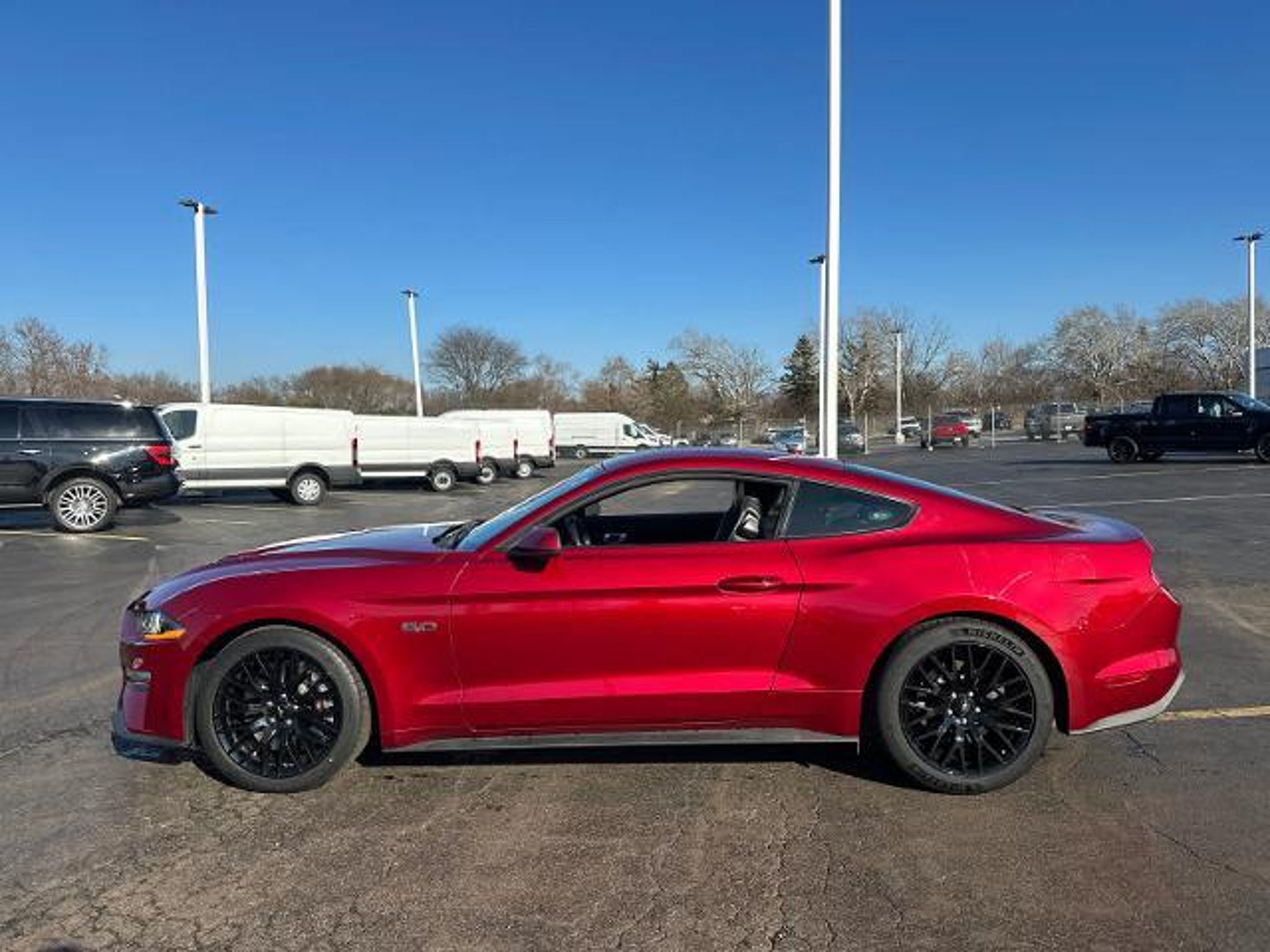 Non-Smoker vehicle, CarFax Certified One-Owner Vehicle, CarFax Certified|Navigation, 3-month / 3,000 mile powertrain warranty, Balance of Factory Warranty, Excellent Condition, Fully Inspected by our Napleton Technicians, Cold Weather Package, Heated Steering Wheel, Heated and Cooled Seats, Upgraded Black Wheels, Leather Interior, Auto Check One Owner! Ford Blue Certified, Excellent Condition. GT Premium trim, Ruby Red Metallic Tinted Clearcoat exterior and Ebony interior. Heated/Cooled Leather Seats, Navigation, Onboard Communications System, iPod/MP3 Input, Back-Up Camera, RUBY RED METALLIC TINTED CLEARCOAT|ENGINE: 5.0L TI-VCT V8, GT PERFORMANCE PACKAGE, RADIO: B&O SOUND SYSTEM BY BANG & OLU. EQUIPMENT GROUP 401A, EBONY, RECARO LEATHER-TRIMMED SPORT S. WHY BUY FROM US At Napleton Ford in Libertyville,our business philosophy is a simple one: It centers around your expectations of how a customer should be treated when purchasing or servicing your vehicle. From our brand-new facility to our wide range of stunning Ford cars, trucks and SUVs, there are a long list of reasons to love the shopping experience here at Napleton Ford. Whether youre here to buy your first vehicle or get service on the car youve owned for years, were excited youve chosen our dealership! PURCHASE WITH CONFIDENCE Every Blue Certified used vehicle must pass a 139-point inspection, Service available at any Ford Dealer in the 50 states, and a manufacturer-backed 90-Day/4,000-Mile (whichever comes first) Comprehensive Limited Warranty, and Complimentary 24/7 Roadside Assistance, 11,000 FordPass Rewards Points to use towardscheduled maintenance visits or other rewards, CARFAX Vehicle History Report included, Complimentary SiriusXM 3-month trial OPTION PACKAGES GT PERFORMANCE PACKAGE Brembo 6-piston front brake calipers, K-brace, performance rear wing, silver painted strut-tower brace, unique chassis tuning, unique electronic power assisted steering, unique anti-lock brakes and upsized rear sway bar, Engine Spun Aluminum Instrument Panel, HD Front Springs, 3.73 TORSEN Differential Ltd Slip Rear Axle Ratio, Unique Stability Control, Wheels: 19 x 9 Fr & 19 x 9.5 Rr Ebony Black, Painted aluminum, Larger Radiator, Larger Brake Rotors, Tires: 255/40R19 Fr & 275/40R19 Rr Summer-Only, Designed to optimize driving dynamics and provide superior performance on wet and dry roads, High performance summer tires wear faster than non-performance tires, Ford does not recommend using summer tires when temperatures drop to approximately 45 deg F (7 deg C) or, EQUIPMENT GROUP 401A Blind Spot Info System w/Cross-Traffic Alert, Premium Plus Package, Heated Steering Wheel, Premier Trim w/Color Accent Group, hand stitched center console lid, wrapped knee bolsters w/accent stitch, shifter boot, unique color-accented door trim and wrapped center console w/accent stitch, Premium Floor Mats w/Accent Stitch, Linked Graphite Aluminum Instrument Panel, FordPass Connect, Wi-Fi hotspot connects up to 10 devices w/trial subscription of 3 months or 3 gigabytes, whichever comes first, wireless service plan required after trial subscription ends, remote start, lock and unlock vehicle, schedule specific times to remotely start vehicle, ability to locate parked vehicle and check vehicle status w/1 year service from the vehicle sale date as recorded by the dealer, RECARO LEATHER-TRIMMED SPORT SEATS: 4-way manual driver, 2-way manual passenger seats w/non-adjustable head restraints, RADIO: B&O SOUND SYSTEM BY BANG & OLUFSEN CD player, 12-speakers and subwoofer in-trunk, HD Radio, RUBY RED METALLIC TINTED CLEARCOAT, ENGINE: 5.0L TI-VCT V8 (STD). EXPERTS CONCLUDE Edmunds.coms review says The steering effort is appropriately light at low speeds and heavier at highway speeds. Theres even some feedback as the front wheels begin to surrender grip. Overall, its excellent for the class..
