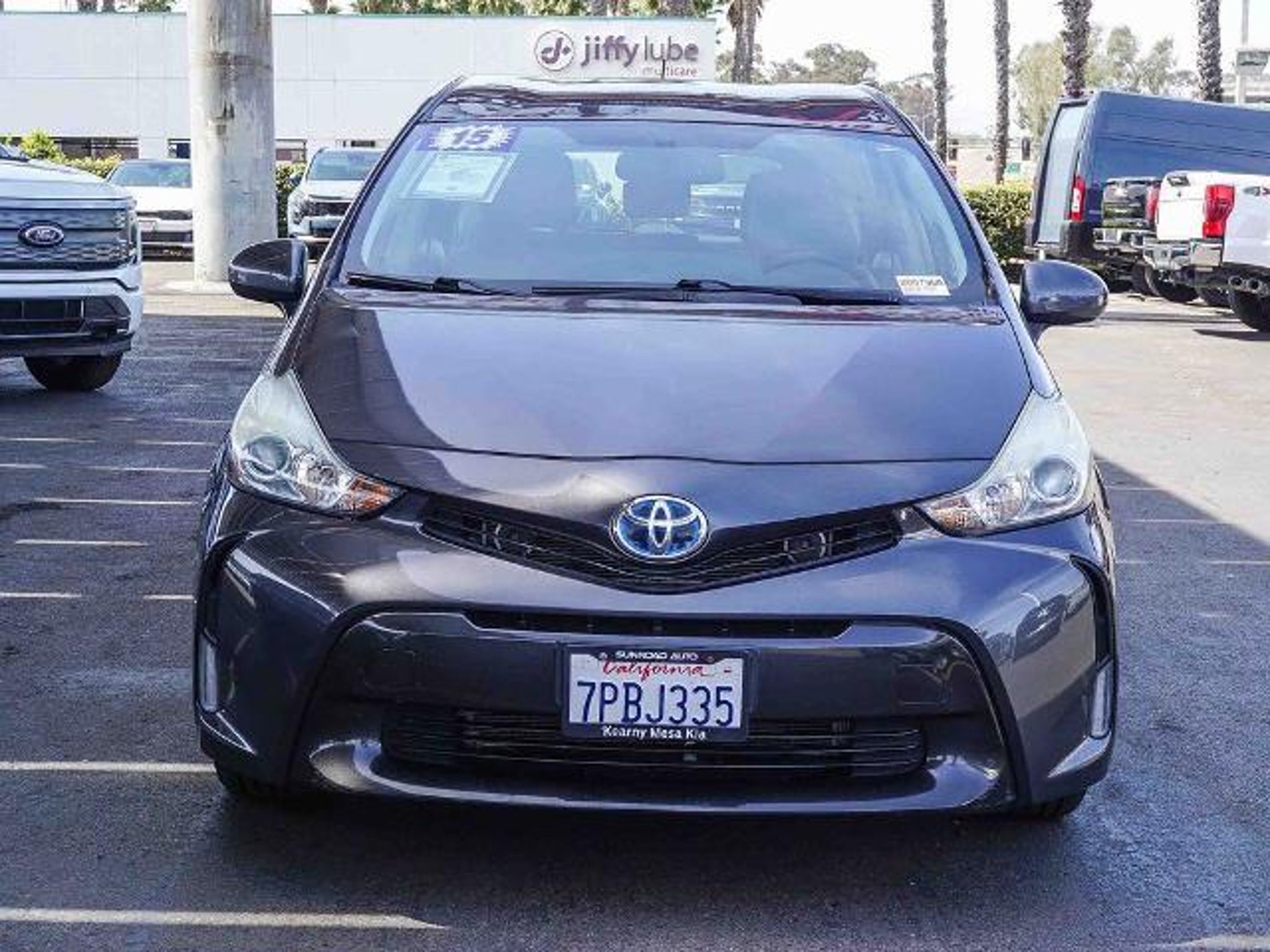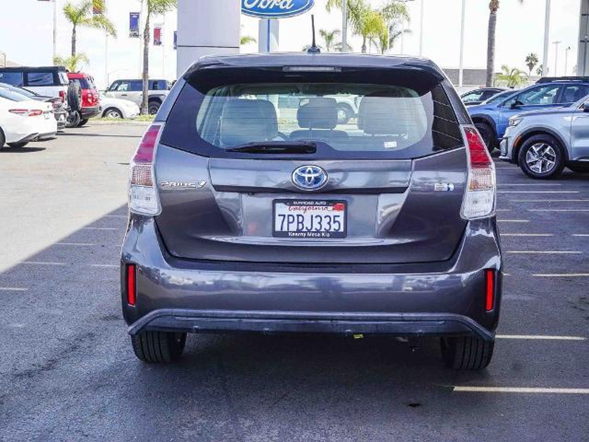 Go GREEN! Save GREEN! CARFAX One-Owner. 2015 Toyota Prius v Gray Four Prius v Four, Station Wagon, 1.8L 4-Cylinder DOHC 16V VVT-i Aluminum, CVT, FWD, Gray, 4-Wheel Disc Brakes, 6 Speakers, ABS brakes, Air Conditioning, Alloy wheels, Anti-whiplash front head restraints, Automatic temperature control, Brake assist, Bumpers: body-color, CD player, Delay-off headlights, Driver door bin, Driver vanity mirror, Dual front impact airbags, Dual front side impact airbags, Electronic Stability Control, Exterior Parking Camera Rear, Front anti-roll bar, Front Bucket Seats, Front Center Armrest, Front reading lights, Front wheel independent suspension, Heated door mirrors, Illuminated entry, Knee airbag, Low tire pressure warning, Occupant sensing airbag, Outside temperature display, Overhead airbag, Overhead console, Panic alarm, Passenger door bin, Passenger vanity mirror, Power door mirrors, Power steering, Power windows, Rear window defroster, Rear window wiper, Remote keyless entry, Speed control, Split folding rear seat, Spoiler, Steering wheel mounted A/C controls, Steering wheel mounted audio controls, Telescoping steering wheel, Tilt steering wheel, Traction control, Trip computer, Variably intermittent wipers. 44/40 City/Highway MPG Priced below KBB Fair Purchase Price! Odometer is 72110 miles below market average! Reviews: * Outstanding fuel economy; roomy interior with lots of storage; generous cargo capacity; quiet and comfy ride. Source: Edmunds Why buy Kearny Mesa Ford & Kia? Because Kearny Mesa means more! More savings, more value, more peace of mind! And we are conveniently located off the 805 Freeway at 7303 Clairemont Mesa Blvd., San Diego, CA 92111.