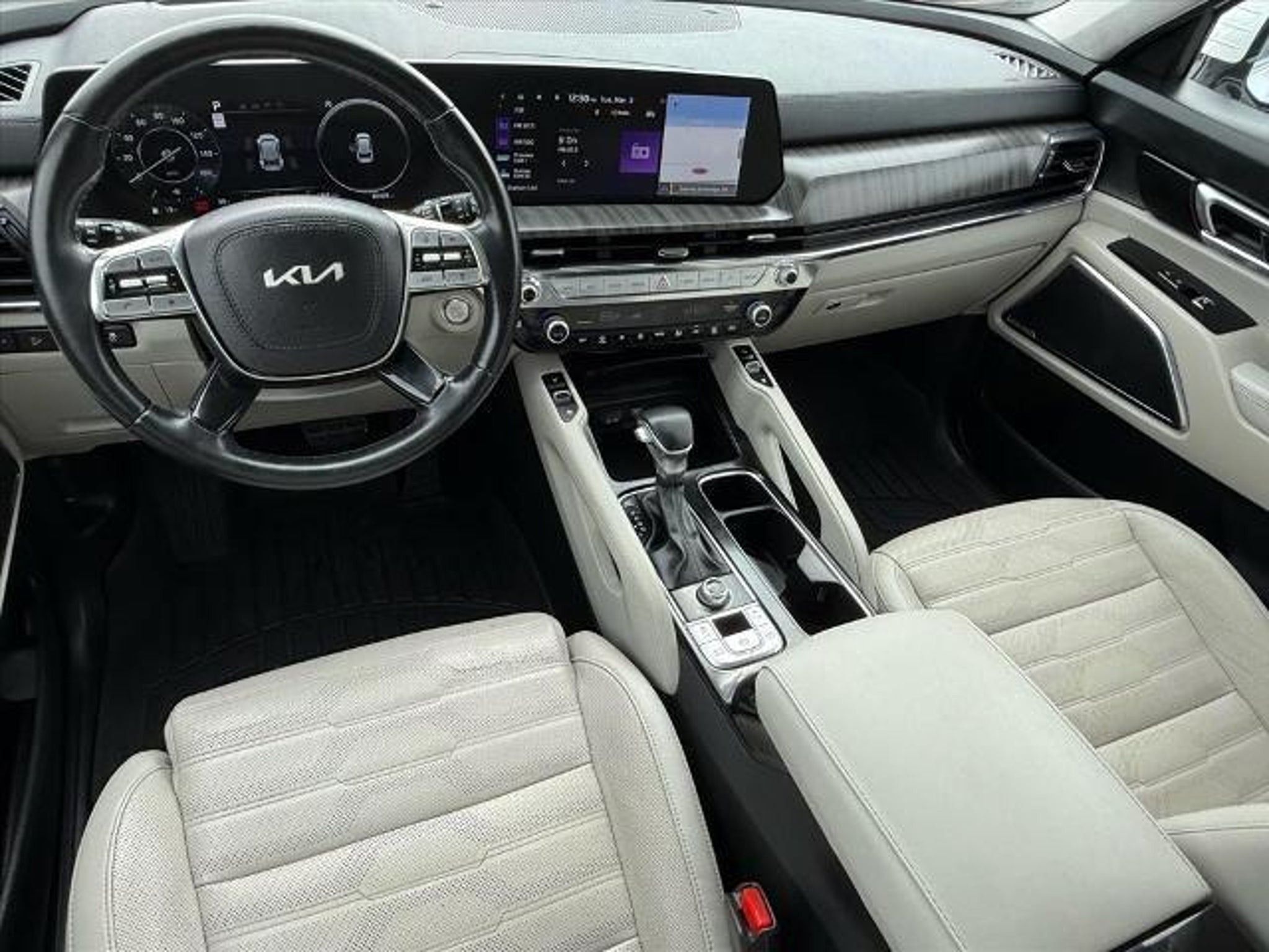 Glacial White Pearl 2023 Kia Telluride SX-Prestige AWD 8-Speed Automatic 3.8L V6 DGI DOHC Dual CVVT Local Trade, Fully Detailed, ONE OWNER!!, 3rd row seats: split-bench, Heads-Up Display, Navigation System, Power moonroof, Wheels: 20 x 7.5 Black Finish.Recent Arrival!