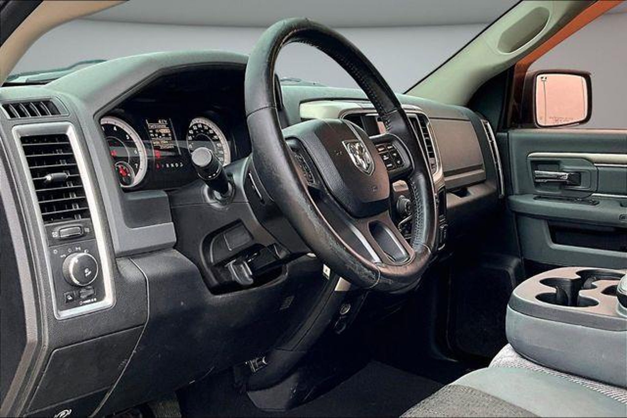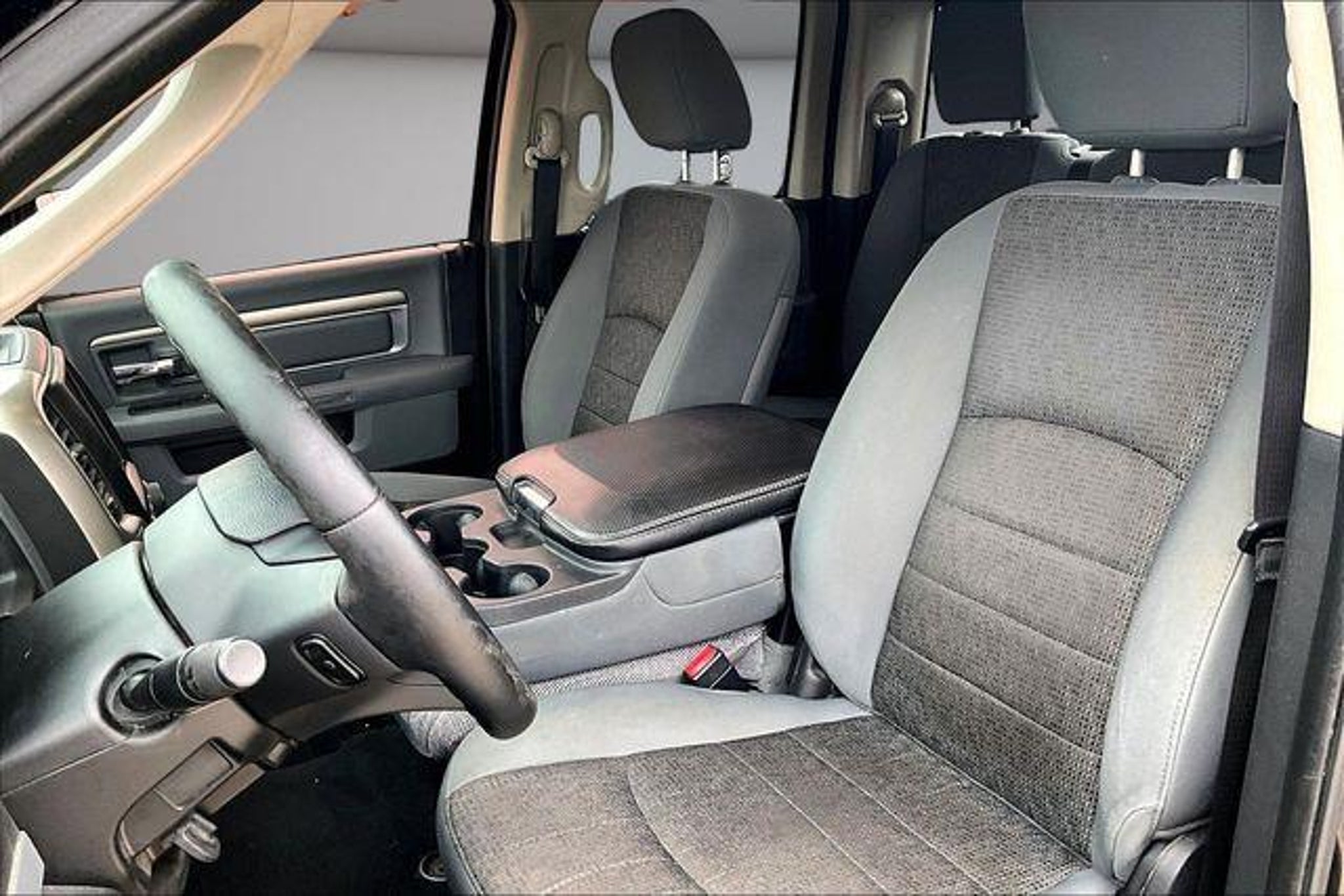 Recent Arrival! 4X4, V8, **Local trade in**, Power Windows and Locks, Keyless Entry, 20 x 8 Chrome Clad Aluminum Wheels, Bighorn Badge, Bright/Bright Billets Grille, Class IV Receiver Hitch, Electric Shift-On-Demand Transfer Case, Fog Lamps, Leather Wrapped Steering Wheel, ParkSense Front/Rear Park Assist System, ParkView Rear Back-Up Camera, Power Black Trailer Tow Mirrors, Premium Cloth 40/20/40 Bench Seat, Quick Order Package 26Z Big Horn, Rear Camera & Park Assist Group, Steering Wheel Mounted Audio Controls. We make it EASY. Zero Pressure, Non-Commission Staff, & Kansas City's lowest Prices! All prices plus $599 admin fee. Please call today to schedule your test drive on this..... 2014 Ram 1500 Big Horn 4D Quad Cab HEMI 5.7L V8 Multi Displacement VVT 8-Speed Automatic 4WD Black Clearcoat