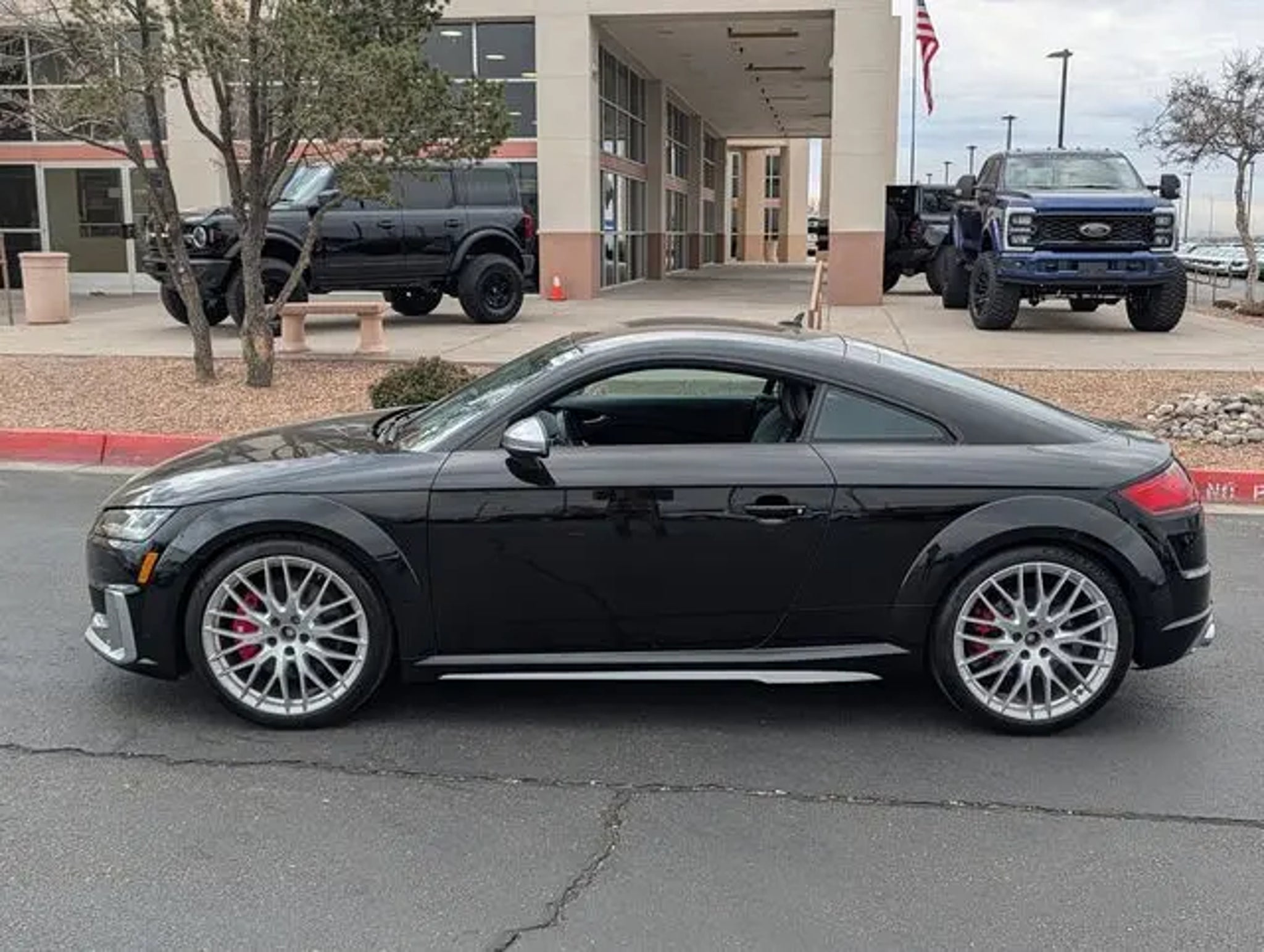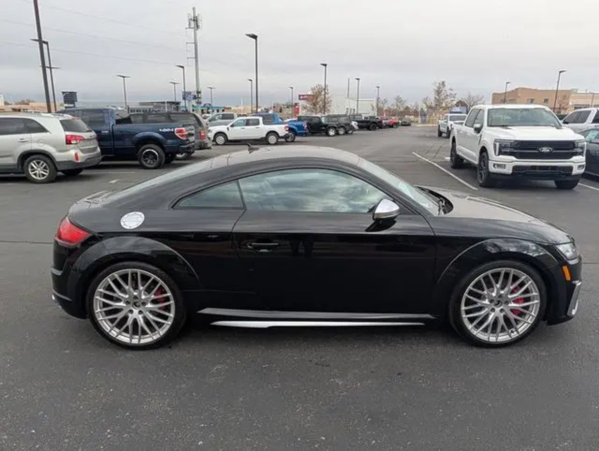 Discover the captivating 2019 Audi TTS 2.0T quattro, a true testament to German engineering and performance. This sleek coupe combines exhilarating power, exceptional handling, and a wealth of premium features that elevate the driving experience. Boasting a comprehensive list of desirable attributes, this Audi TTS is meticulously maintained and ready to impress. Key highlights include: - Fresh service and passed dealer inspection - Recent oil change - Leather upholstery - All-wheel drive (quattro) capability - New tires - Keyless entry and Bluetooth connectivity - Audi MMI Navigation Plus - Audi Smartphone Interface - Audi Virtual Cockpit with Sport Mode The stunning Mythos Black Metallic exterior, complemented by the Black interior, exudes a bold and sophisticated presence. Elevating the driving dynamics is the Competition Package, which includes a high-gloss black fixed rear wing spoiler and Audi Sport Carbon Fiber inlays. Audiophiles will delight in the 680W Bang & Olufsen Sound System with 12 speakers, delivering a truly immersive listening experience. The Technology Package further enhances connectivity and convenience with features like the Audi Phone Box with wireless charging. Beneath the sleek exterior lies the potent 2.0L 4-cylinder TFSI engine, mated to a responsive 7-speed automatic transmission. This powertrain delivers an exhilarating 23 city / 29 highway MPG, ensuring both performance and efficiency. As you settle into the fine Nappa leather-trimmed sport seats with S embossing, you'll be surrounded by a cabin that seamlessly blends style and functionality. Heated front seats, a leather-wrapped steering wheel, and Audi Side Assist ensure both comfort and confidence behind the wheel. This 2019 Audi TTS 2.0T quattro represents an exceptional value in the market, offering a thrilling driving experience and a wealth of premium features. We invite you to schedule a test drive and discover the unparalleled joy of owning this exceptional Audi coupe.
