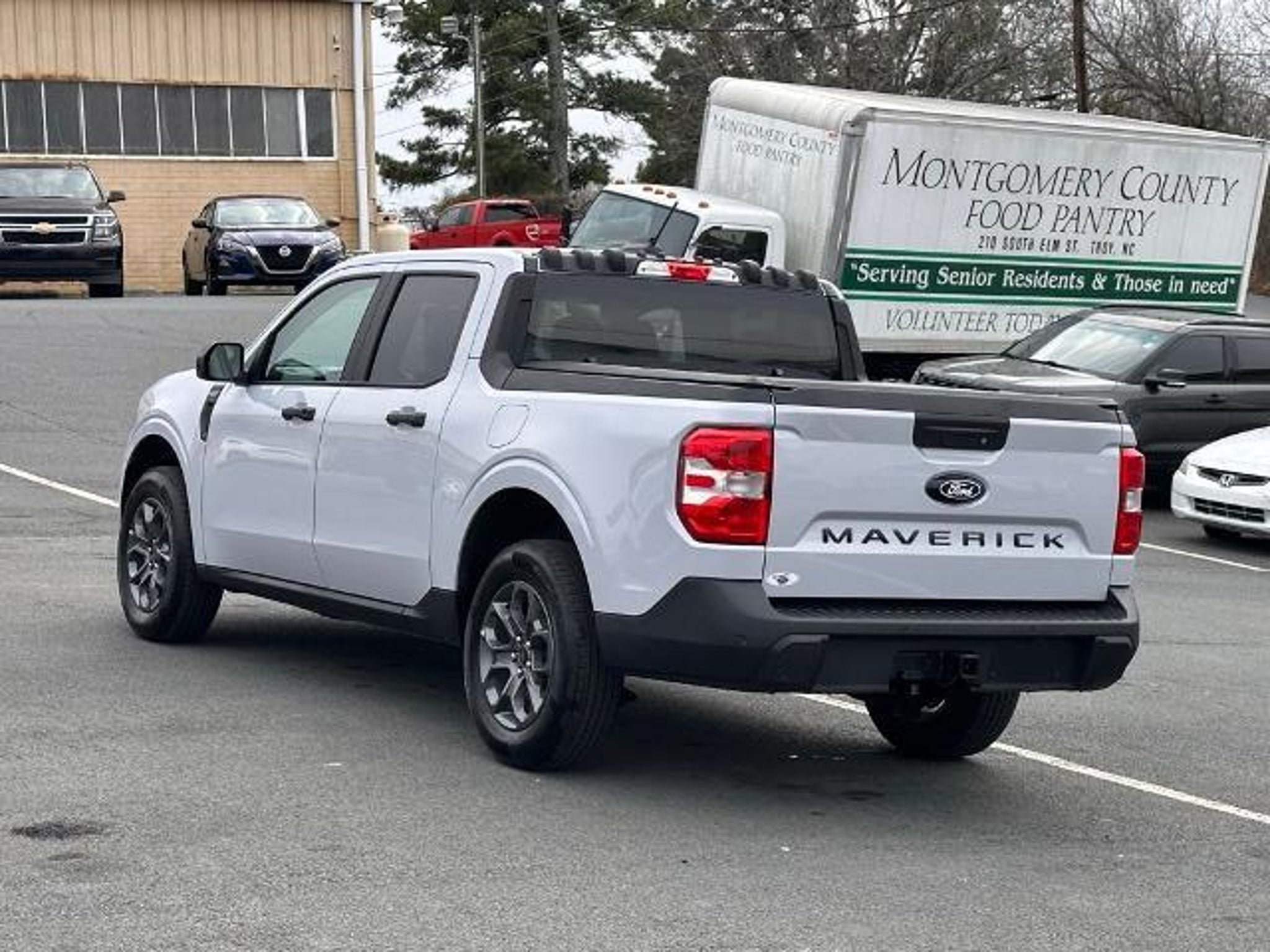 Recent Arrival! White Metallic 2025 Ford Maverick XLT FWD CARFAX One-Owner. Equipment Group 300A, Ford Co-Pilot360 1.0 (Auto High Beams, BLIS w/Cross-Traffic Alert, Cross Traffic Brake Assist, Evasive Steering Assist, Intersection Assist, Lane-Keeping System, Power Glass Manual-Folding Mirrors, Pre-Collision Assist w/Automatic Emergency Braking, Rear Parking Sensors, and Rear-View Camera), XLT Luxury Package (400W Inverter w/USB Console Rear, Heated Mirror w/Painted Black Skull Caps, Heated Seats, LED Box Lighting, Remote Start System, and Soft Vinyl Wrapped Heated Steering Wheel), 2.91 Axle Ratio, 4-Wheel Disc Brakes, 6 Speakers, ABS brakes, Air Conditioning, Alloy wheels, AM/FM radio: SiriusXM with 360L, Apple CarPlay/Android Auto, Auto High-beam Headlights, Automatic temperature control, Brake assist, Bumpers: body-color, Compass, Delay-off headlights, Driver door bin, Driver vanity mirror, Dual front impact airbags, Dual front side impact airbags, Electronic Stability Control, Emergency communication system: SYNC 4 911 Assist, Exterior Parking Camera Rear, Front anti-roll bar, Front Bucket Seats, Front Center Armrest, Front reading lights, Front wheel independent suspension, Fully automatic headlights, Illuminated entry, Internet access capable: FordPass Connect 5G, Knee airbag, Low tire pressure warning, Occupant sensing airbag, Outside temperature display, Overhead airbag, Overhead console, Panic alarm, Passenger door bin, Passenger vanity mirror, Power door mirrors, Power steering, Power windows, Radio data system, Radio: AM/FM Stereo w/6 Speakers, Rear anti-roll bar, Rear seat center armrest, Rear step bumper, Remote keyless entry, Security system, SiriusXM w/360L, Speed control, Speed-sensing steering, Steering wheel mounted audio controls, SYNC 4 w/Enhanced Voice Recognition, Telescoping steering wheel, Tilt steering wheel, Traction control, Trip computer, Unique Cloth Front Bucket Seats, and Wheels: 17 Carbonized Gray Painted Aluminum.