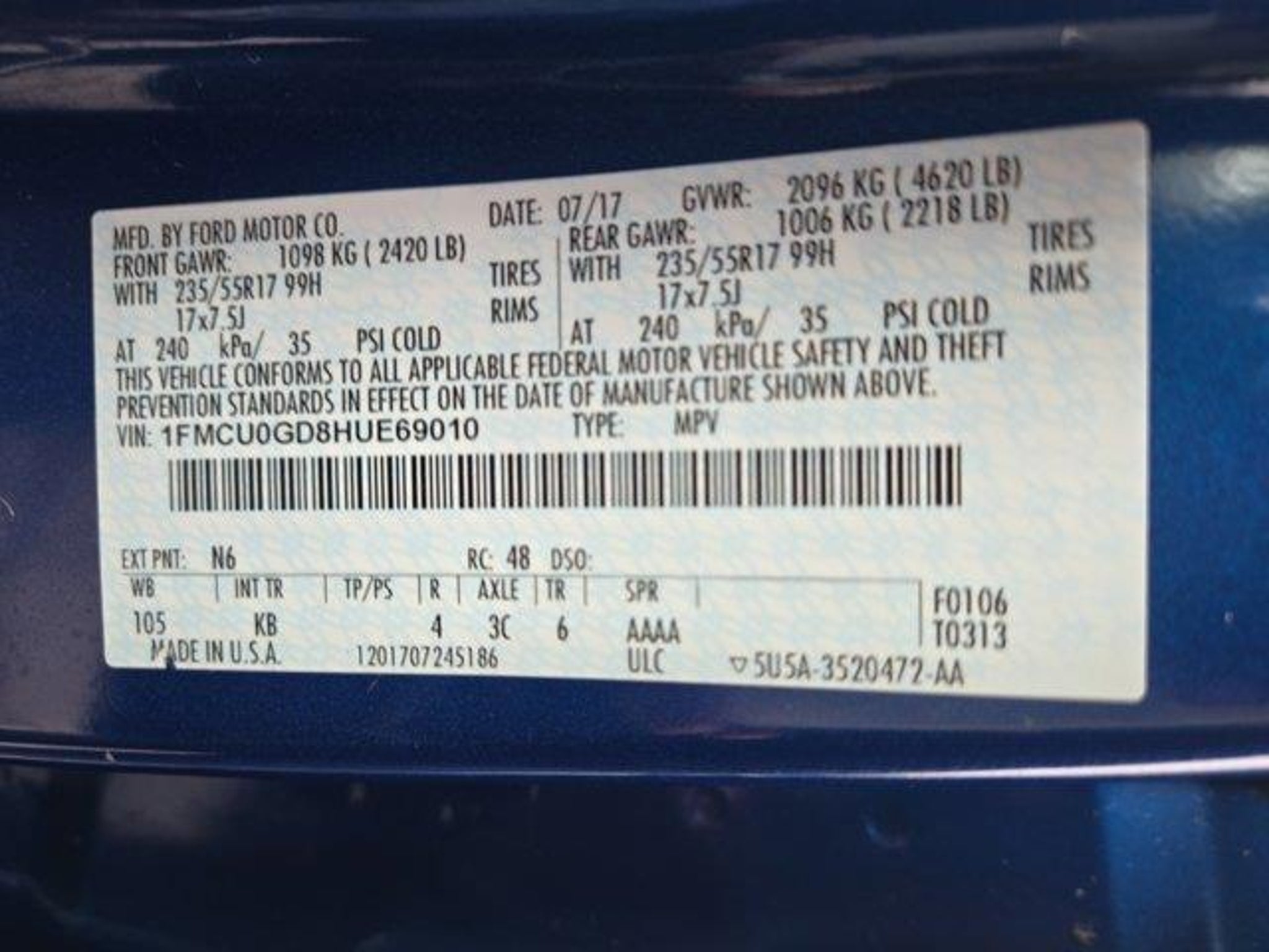 VIN 1FMCU0GD8HUE69010