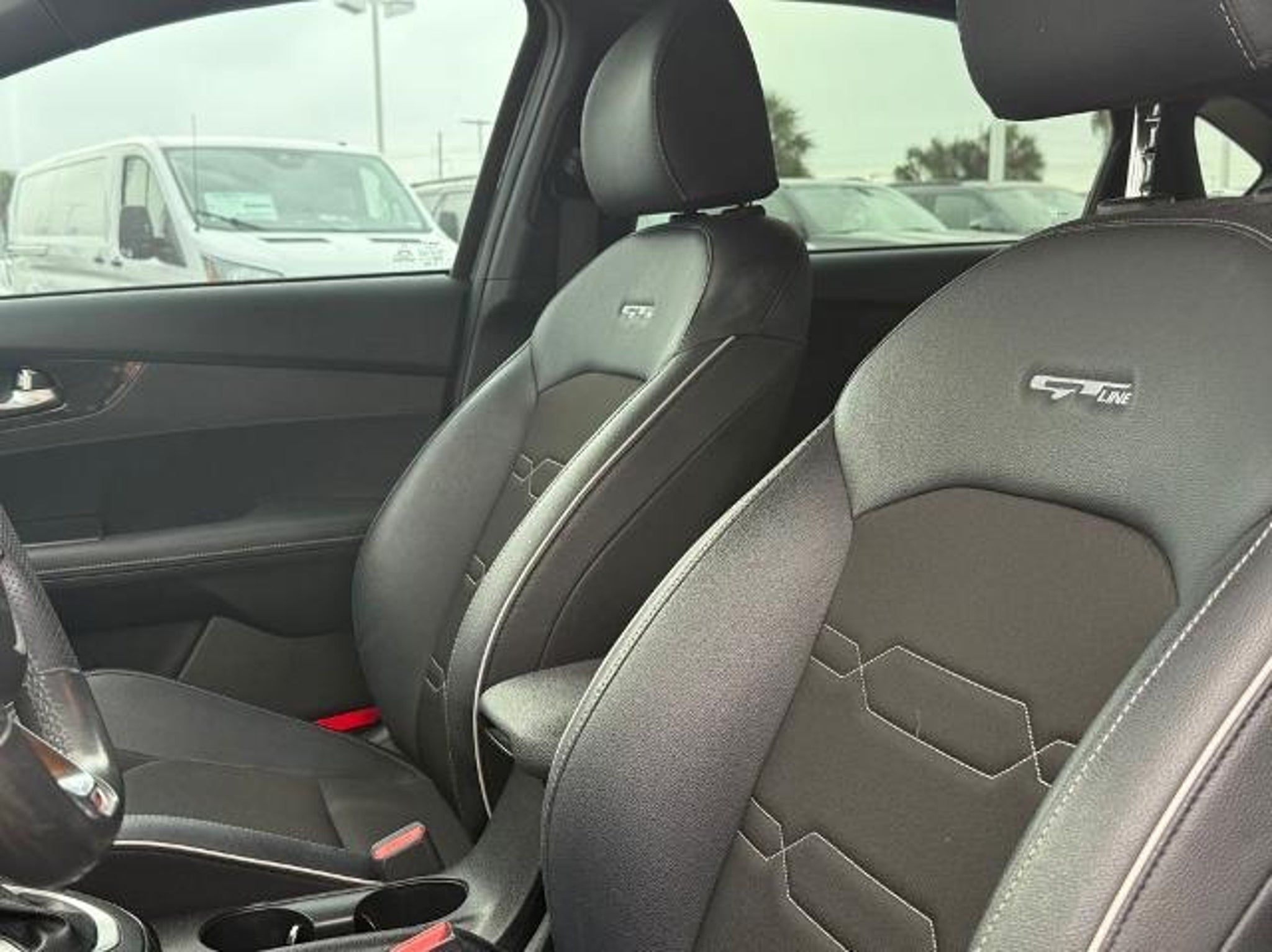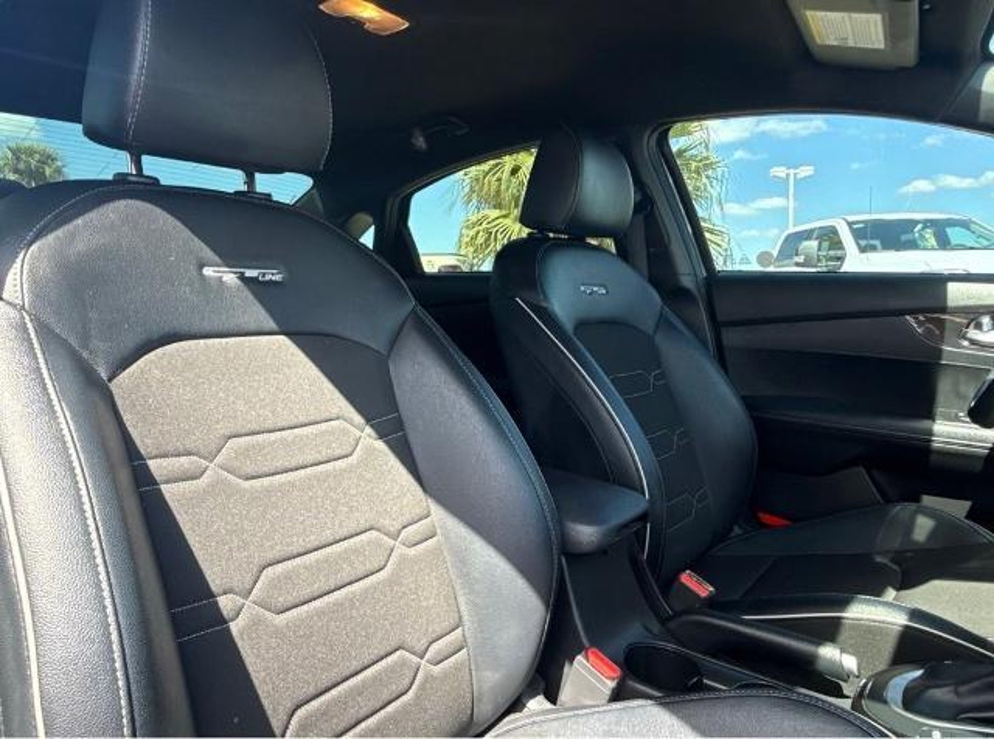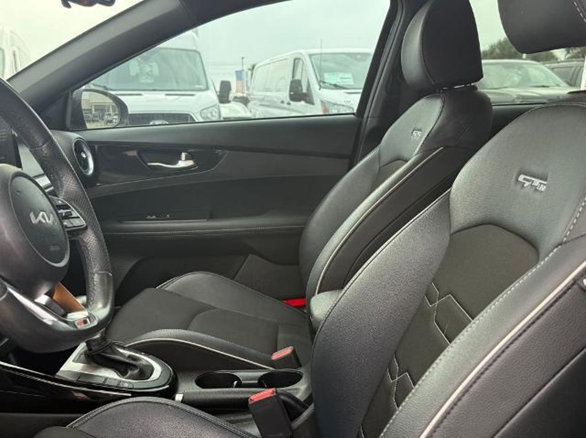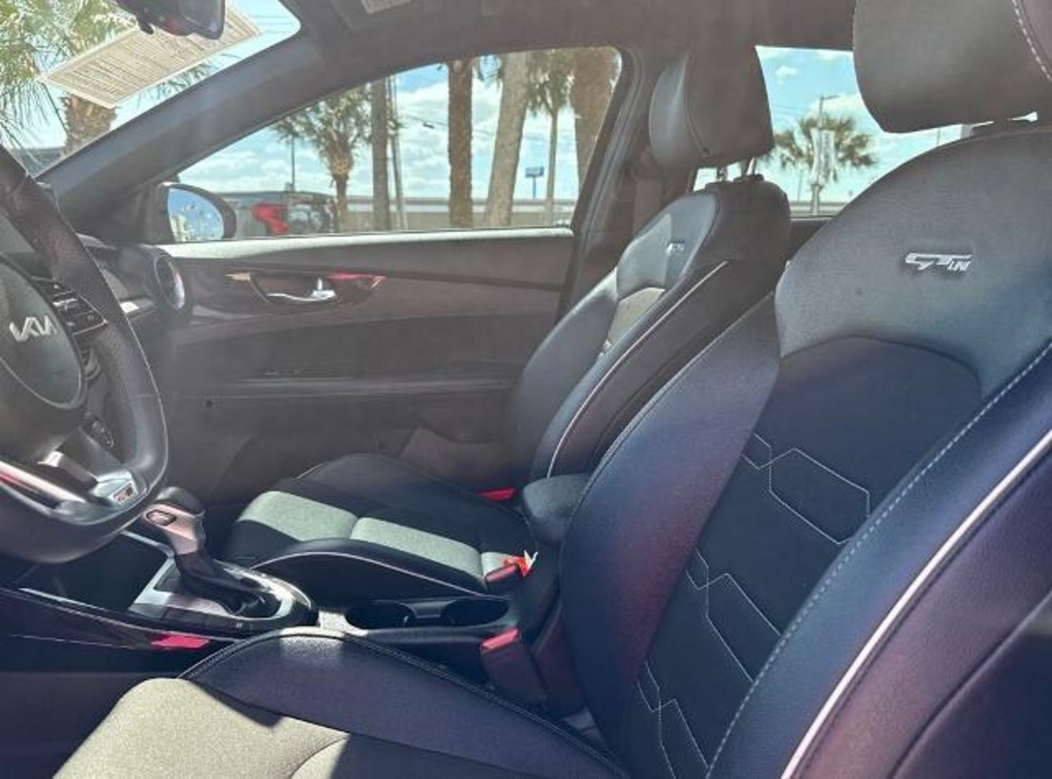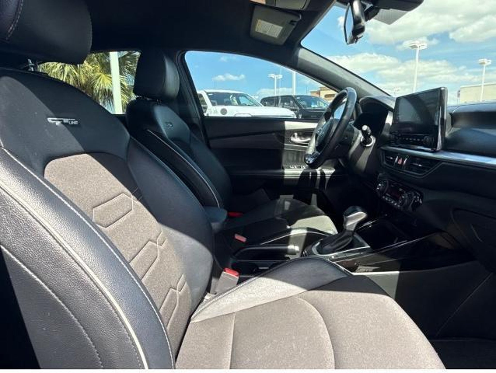 Gravity Gray 2023 Kia Forte GT-Line FWD CVT 2.0L I4 MPI This vehicle comes equipped with the following features and options: 17 x 7.0J Alloy Wheels, 4-Wheel Disc Brakes, 6 Speakers, ABS brakes, Air Conditioning, Alloy wheels, AM/FM radio: SiriusXM, Apple CarPlay & Android Auto, Auto High-beam Headlights, Automatic temperature control, Brake assist, Bumpers: body-color, Cloth & SynTex Seat Trim, Delay-off headlights, Driver door bin, Driver vanity mirror, Dual front impact airbags, Dual front side impact airbags, Electronic Stability Control, Emergency communication system, Exterior Parking Camera Rear, Front anti-roll bar, Front Bucket Seats, Front Center Armrest, Front dual zone A/C, Front fog lights, Front reading lights, Front wheel independent suspension, Fully automatic headlights, Heated door mirrors, Illuminated entry, Leather Shift Knob, Leather steering wheel, Low tire pressure warning, Navigation System, Occupant sensing airbag, Outside temperature display, Overhead airbag, Overhead console, Panic alarm, Passenger door bin, Passenger vanity mirror, Power door mirrors, Power steering, Power windows, Radio data system, Radio: 10.25 Display Audio, Rear seat center armrest, Rear window defroster, Remote keyless entry, Security system, Speed control, Split folding rear seat, Spoiler, Sport steering wheel, Steering wheel mounted audio controls, Tachometer, Telescoping steering wheel, Tilt steering wheel, Traction control, Trip computer, Turn signal indicator mirrors, and Variably intermittent wipers. Odometer is 12472 miles below market average! 28/39 City/Highway MPG