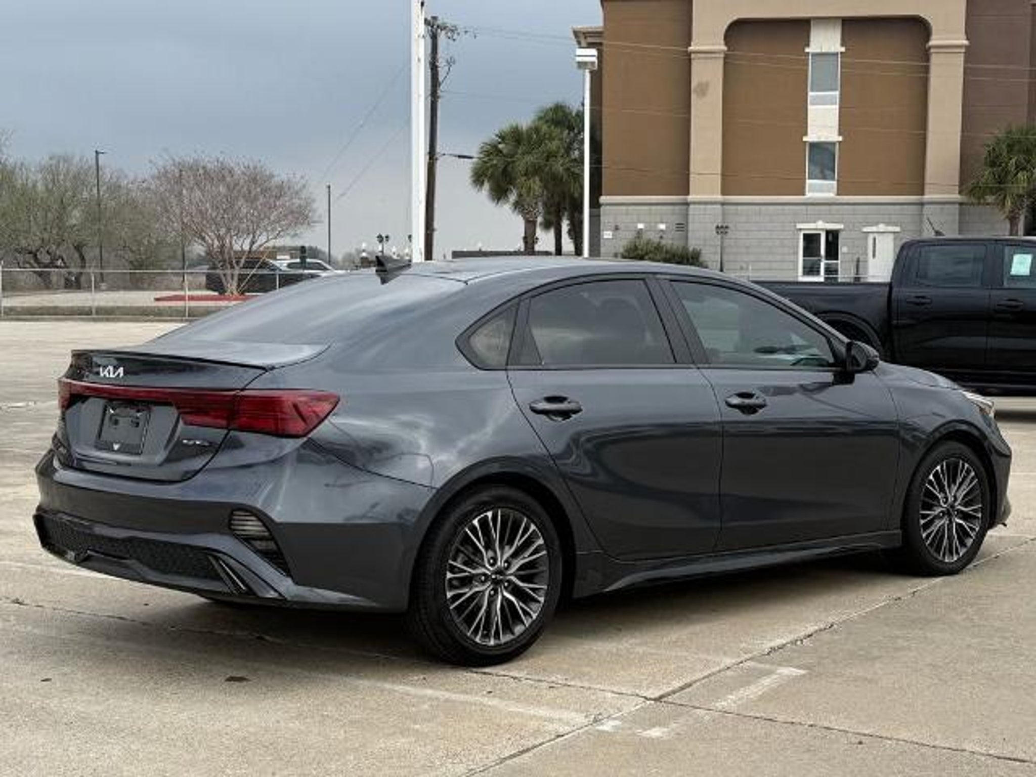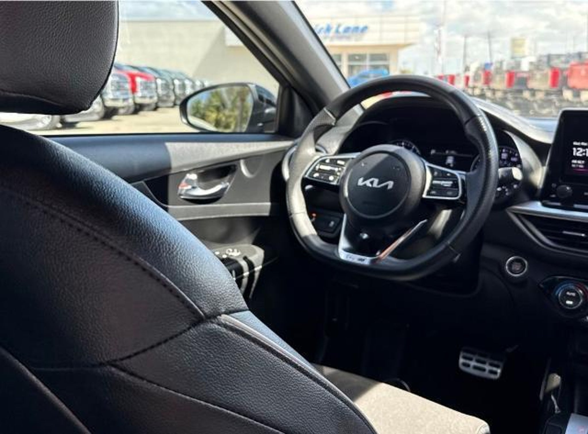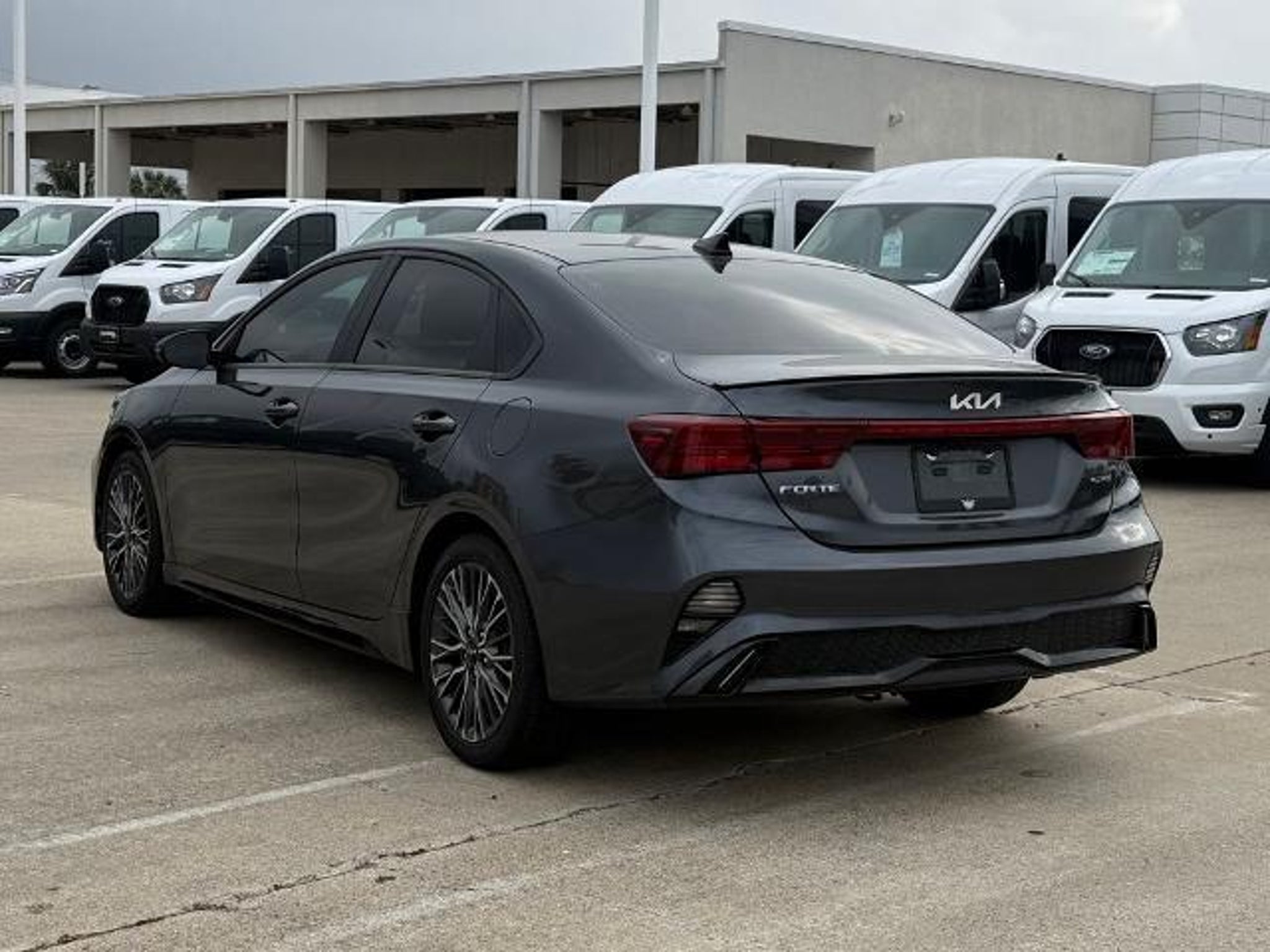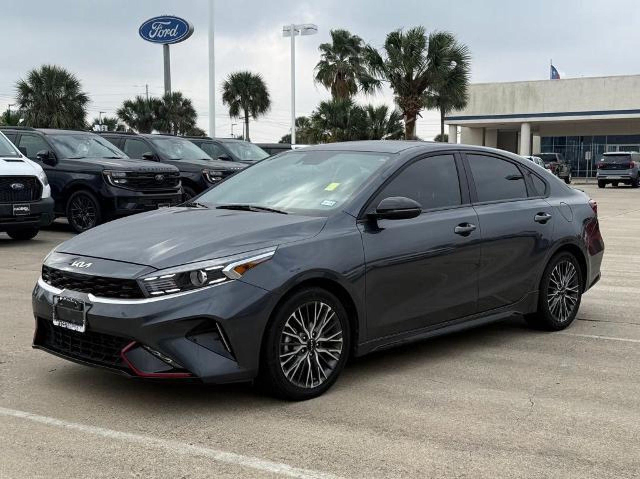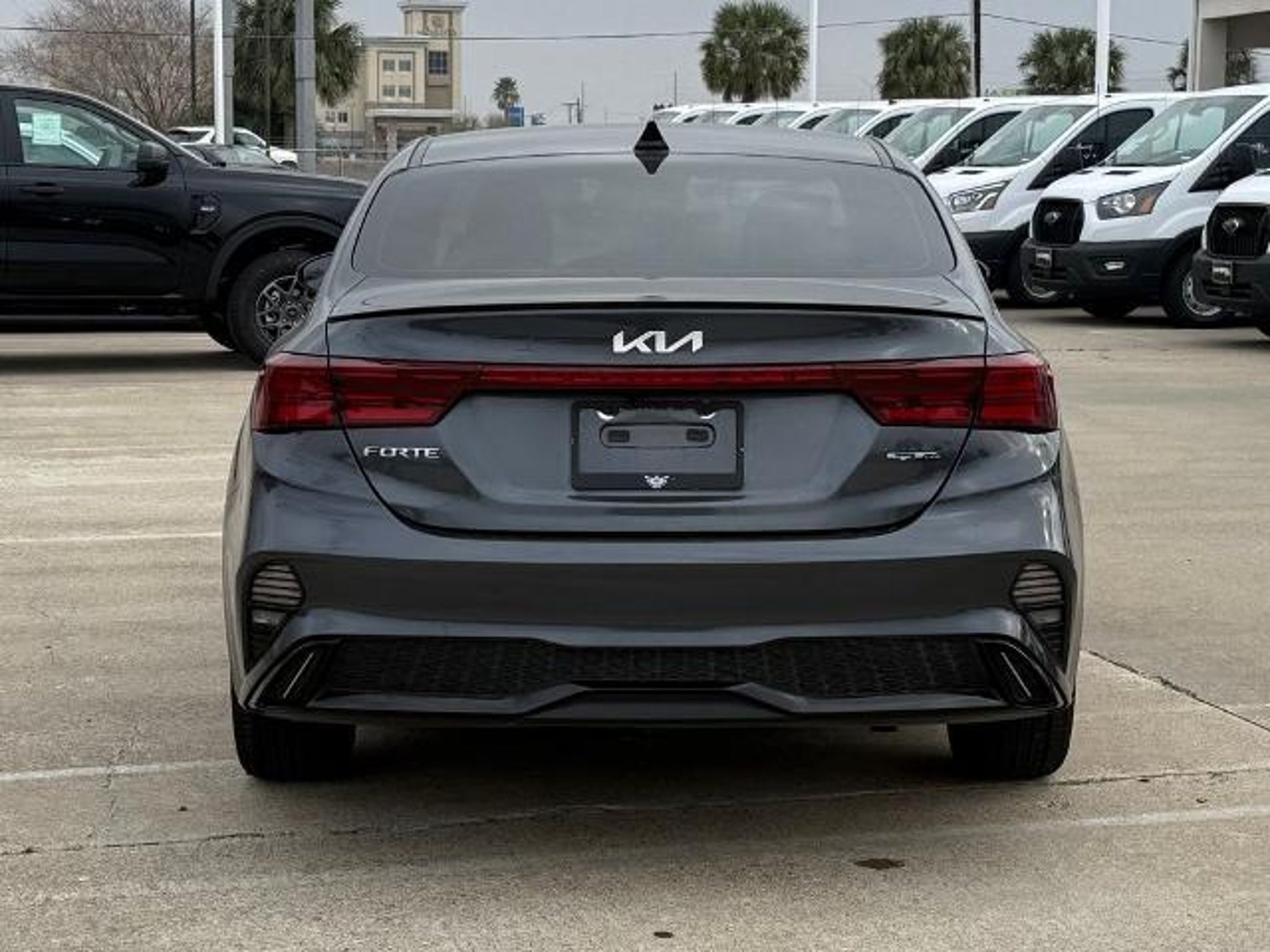 Gravity Gray 2023 Kia Forte GT-Line FWD CVT 2.0L I4 MPI This vehicle comes equipped with the following features and options: 17 x 7.0J Alloy Wheels, 4-Wheel Disc Brakes, 6 Speakers, ABS brakes, Air Conditioning, Alloy wheels, AM/FM radio: SiriusXM, Apple CarPlay & Android Auto, Auto High-beam Headlights, Automatic temperature control, Brake assist, Bumpers: body-color, Cloth & SynTex Seat Trim, Delay-off headlights, Driver door bin, Driver vanity mirror, Dual front impact airbags, Dual front side impact airbags, Electronic Stability Control, Emergency communication system, Exterior Parking Camera Rear, Front anti-roll bar, Front Bucket Seats, Front Center Armrest, Front dual zone A/C, Front fog lights, Front reading lights, Front wheel independent suspension, Fully automatic headlights, Heated door mirrors, Illuminated entry, Leather Shift Knob, Leather steering wheel, Low tire pressure warning, Navigation System, Occupant sensing airbag, Outside temperature display, Overhead airbag, Overhead console, Panic alarm, Passenger door bin, Passenger vanity mirror, Power door mirrors, Power steering, Power windows, Radio data system, Radio: 10.25 Display Audio, Rear seat center armrest, Rear window defroster, Remote keyless entry, Security system, Speed control, Split folding rear seat, Spoiler, Sport steering wheel, Steering wheel mounted audio controls, Tachometer, Telescoping steering wheel, Tilt steering wheel, Traction control, Trip computer, Turn signal indicator mirrors, and Variably intermittent wipers. Odometer is 12472 miles below market average! 28/39 City/Highway MPG