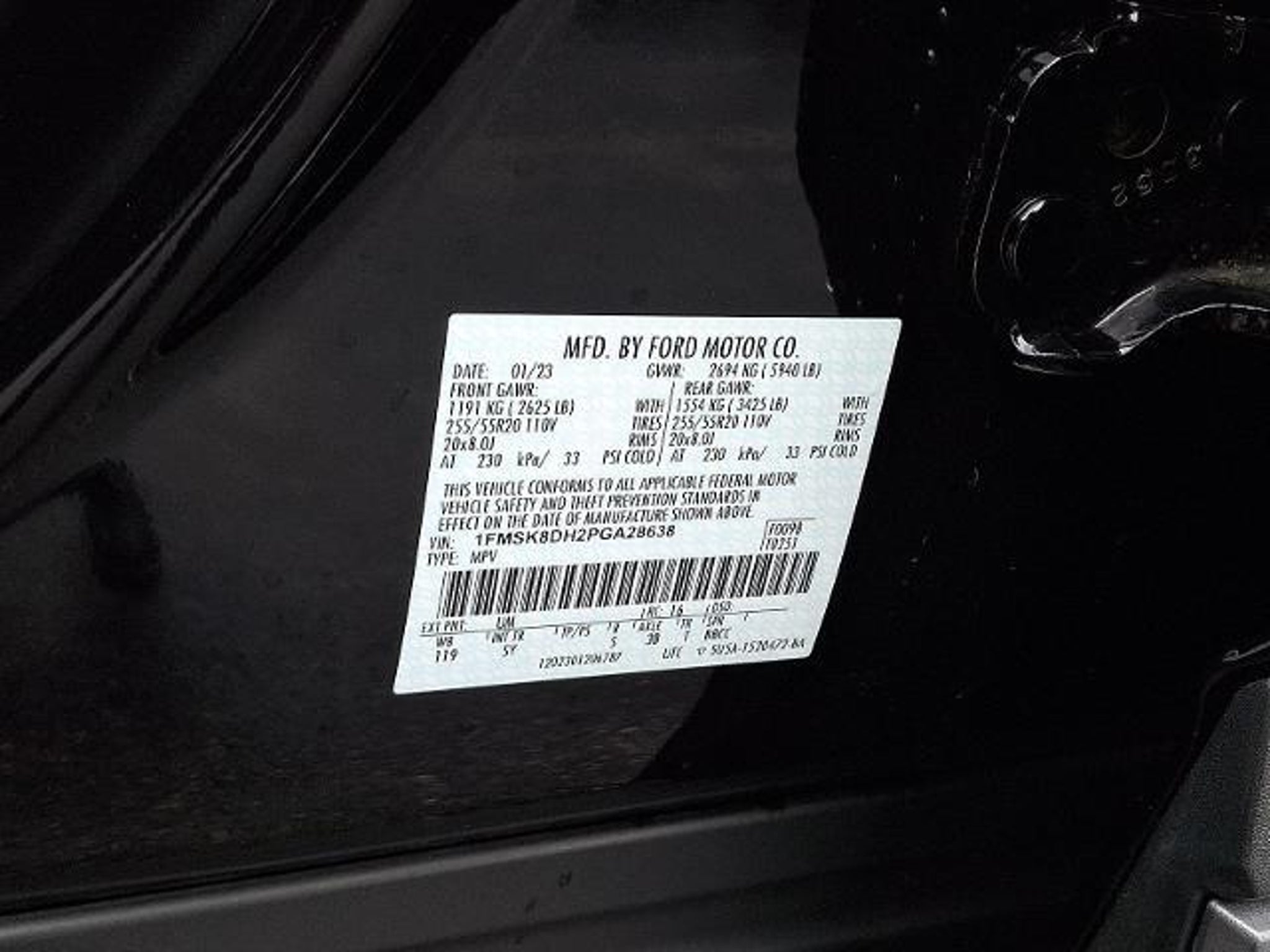 VIN 1FMSK8DH2PGA28638