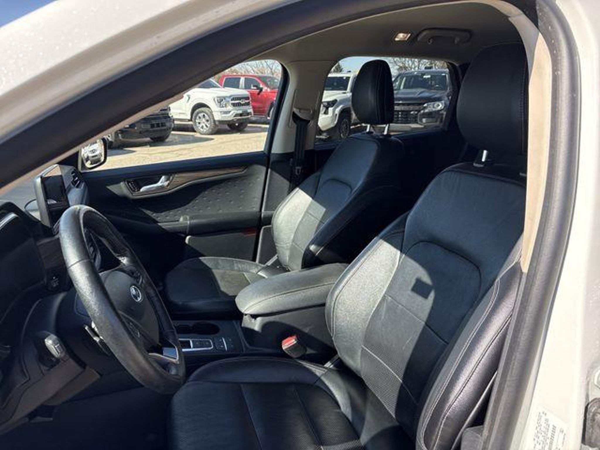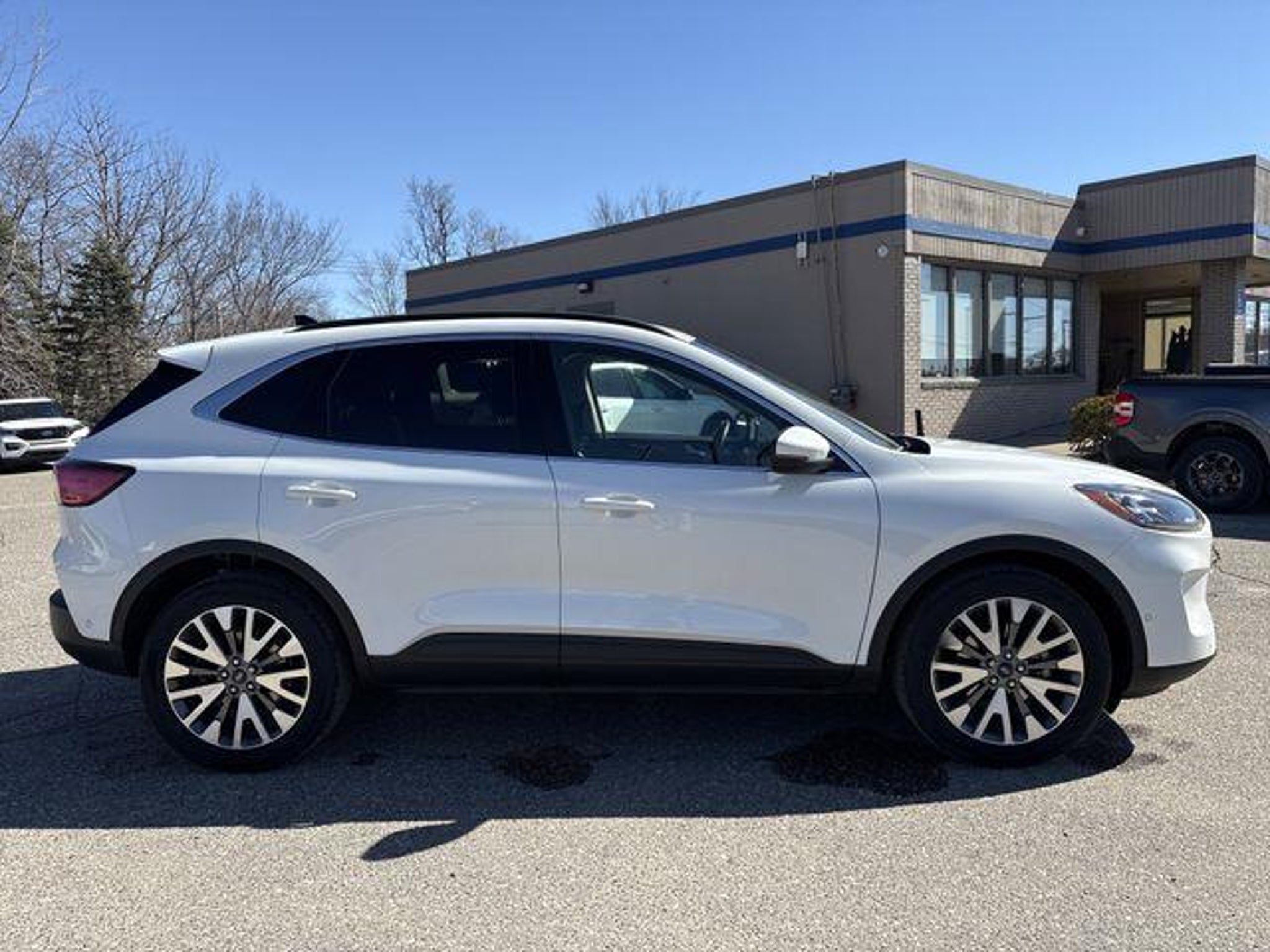 Recent Arrival! AWD. Certified. 2020 Ford Escape Titanium White Ford Blue Certified Details: * Transferable Warranty * Vehicle History * Roadside Assistance * 139 Point Inspection * Warranty Deductible: $100 * and 11,000 FordPass Rewards Points to use toward first maintenance visit * Limited Warranty: 3 Month/4,000 Mile (whichever comes first) after new car warranty expires or from certified purchase date Equipment Group 401A (Wireless Charging Pad), Ford Blue Certified Certified, AWD, 10 Speakers, 3.47 Axle Ratio, 4-Wheel Disc Brakes, ABS brakes, Air Conditioning, Alloy wheels, AM/FM radio: SiriusXM, Auto High-beam Headlights, Auto-dimming Rear-View mirror, Automatic temperature control, Brake assist, Bumpers: body-color, Compass, Delay-off headlights, Driver door bin, Driver vanity mirror, Dual front impact airbags, Dual front side impact airbags, Electronic Stability Control, Emergency communication system: SYNC 3 911 Assist, Exterior Parking Camera Rear, FordPass Connect, Four wheel independent suspension, Front anti-roll bar, Front Bucket Seats, Front Center Armrest, Front dual zone A/C, Front fog lights, Front reading lights, Fully automatic headlights, Garage door transmitter, Heated door mirrors, Heated front seats, Heated Leather-Trimmed Front Sport Contour Seats, Heated steering wheel, Illuminated entry, Knee airbag, Leather steering wheel, Low tire pressure warning, Memory seat, Navigation System, Occupant sensing airbag, Outside temperature display, Overhead airbag, Overhead console, Panic alarm, Passenger door bin, Passenger vanity mirror, Power door mirrors, Power driver seat, Power Liftgate, Power passenger seat, Power steering, Power windows, Radio data system, Radio: B&O Sound System by Bang & Olufsen, Rain sensing wipers, Rear anti-roll bar, Rear reading lights, Rear seat center armrest, Rear window defroster, Rear window wiper, Remote keyless entry, Security system, Speed control, Speed-sensing steering, Speed-Sensitive Wipers, Split folding rear seat, Spoiler, Steering wheel mounted audio controls, SYNC 3 Communications & Entertainment System, Tachometer, Telescoping steering wheel, Tilt steering wheel, Traction control, Trip computer, Turn signal indicator mirrors, Variably intermittent wipers, Voice-Activated Touchscreen Navigation System, and Wheels: 19 Machined-Face Aluminum. 23/31 City/Highway MPG Awards: * JD Power Automotive Performance, Execution and Layout (APEAL) Study Skalnek Ford has made several enhancements to our dealership sales practices to continue