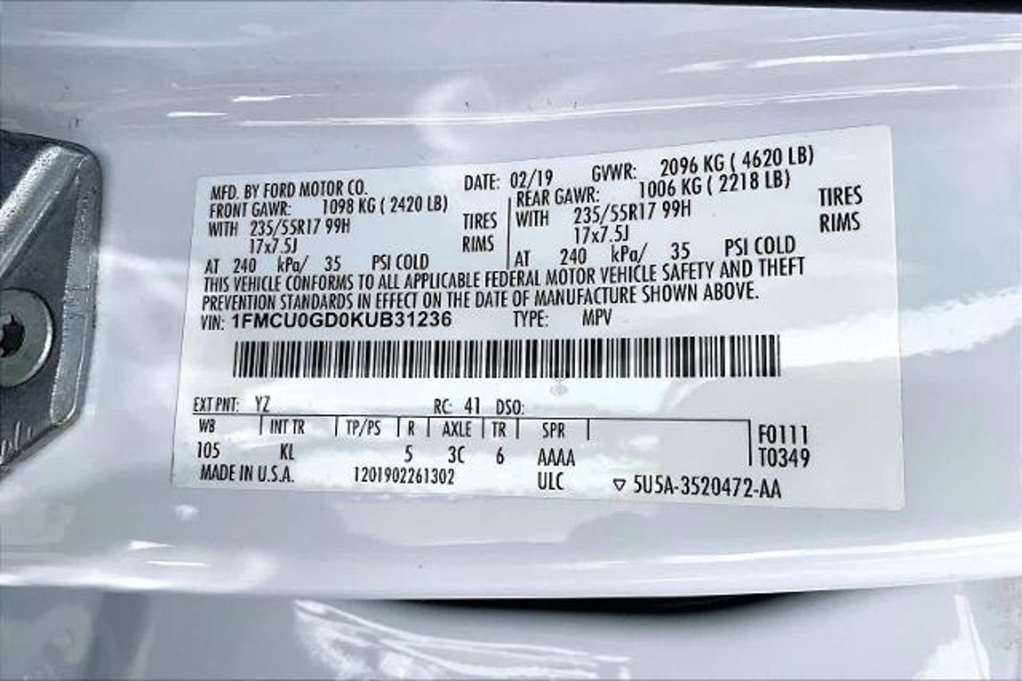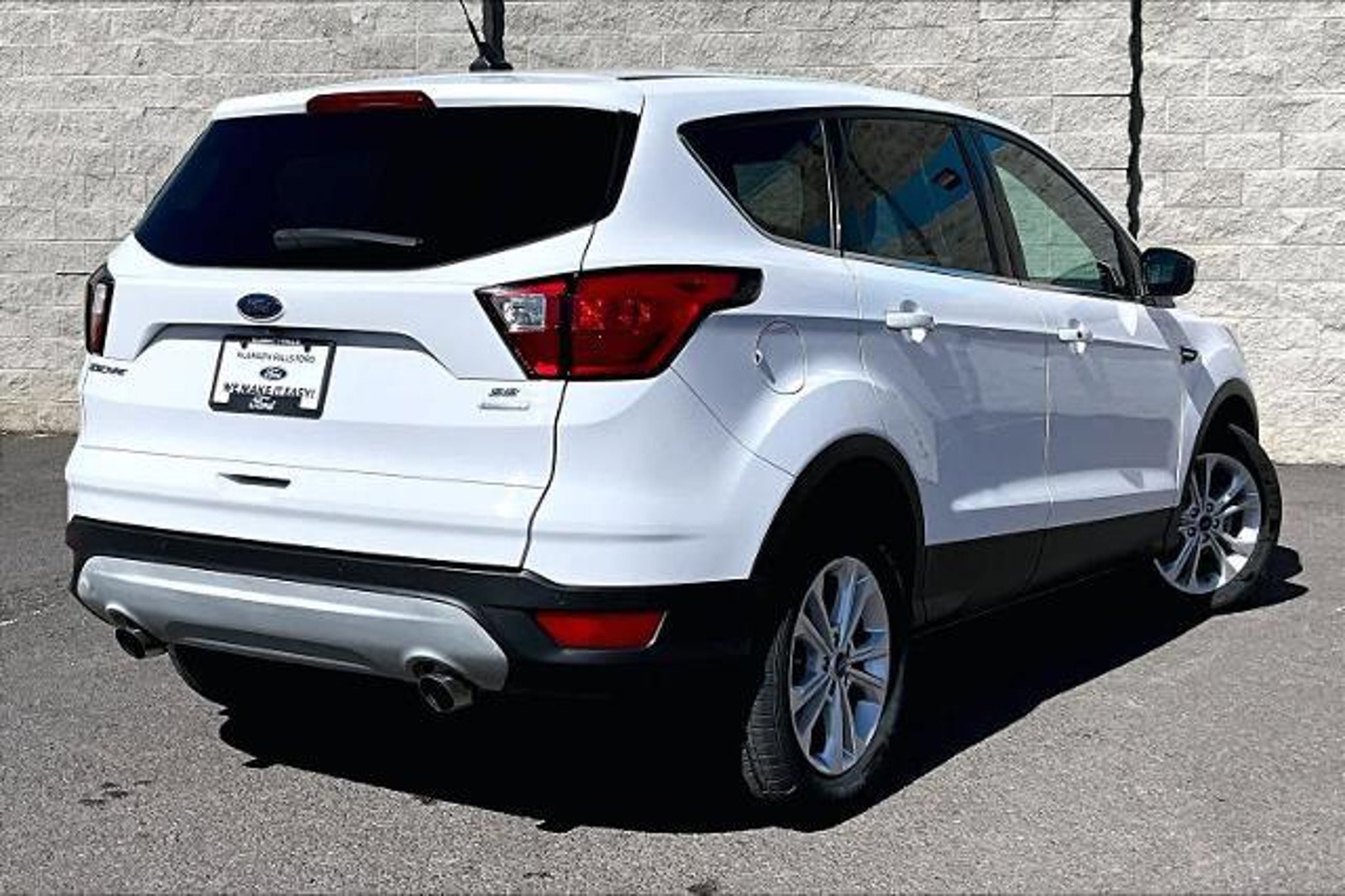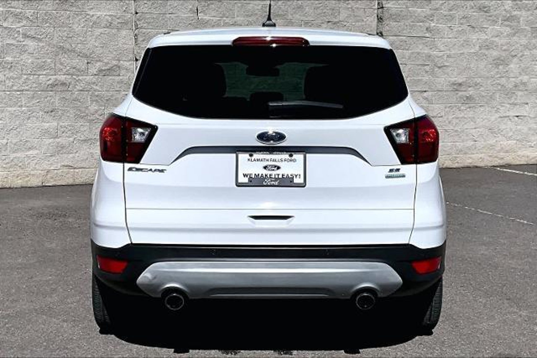 FUEL EFFICIENT 29 MPG Hwy/22 MPG City! CARFAX 1-Owner, GREAT MILES 57,423! SE trim. Heated Seats, Back-Up Camera, Turbo Charged Engine, REVERSE SENSING SYSTEM, U0G02 - SE SAFE & SMART, Aluminum Wheels. CLICK ME! KEY FEATURES INCLUDE Heated Driver Seat, Back-Up Camera, Turbocharged. MP3 Player, Onboard Communications System, Aluminum Wheels, Keyless Entry, Privacy Glass, Child Safety Locks, Steering Wheel Controls. OPTION PACKAGES U0G02 - SE SAFE & SMART Ford Safe & Smart Package, Windshield Wiper De-Icer, Auto High-Beam Headlamps, Adaptive Cruise Control & Fwd Collision Warning, brake support, Blind Spot Info System w/Cross-Traffic Alert, (BLIS), Lane-Keeping System, lane-keeping alert, lane-keeping assist and driver alert system, Rain-Sensing Wipers, front only, Auto-Dimming Rearview Mirror, REVERSE SENSING SYSTEM. Ford SE with Oxford White exterior and Medium Light Stone interior features a 4 Cylinder Engine with 179 HP at 6000 RPM*. EXPERTS REPORT Edmunds.coms review says The 2019 Ford Escape is a rare breed of compact crossover that deftly blends performance and utility. Sporty handling and a powerful turbocharged engine make the Escape drive more like a sedan, without sacrificing SUV versatility, making it a best-of-both-worlds choice.. Great Gas Mileage: 29 MPG Hwy. MORE ABOUT US Youll only find high quality used cars, trucks and SUVs at Lithia Ford of Klamath Falls. We offer Klamath Falls Oregon, Beatty OR and Tulelake California a great selection of second hand cars, used pickups and pre-owned SUVs from todays leading manufacturers. We also have ongoing Pre-Owned Vehicle Specials that are designed to save you even more money! Dont miss them! Plus license and title, and $250 title and registration processing fee. Price does not include a charge for 0.40% Oregon Corporate Activity Tax. A 0.5% state privilege tax will be added to new vehicles. Not all sales at MSRP.