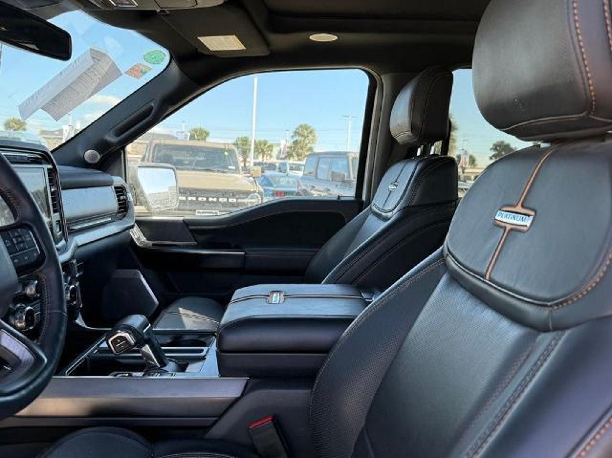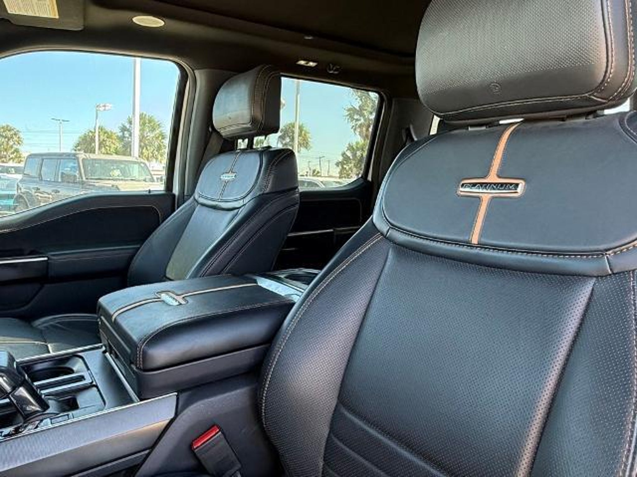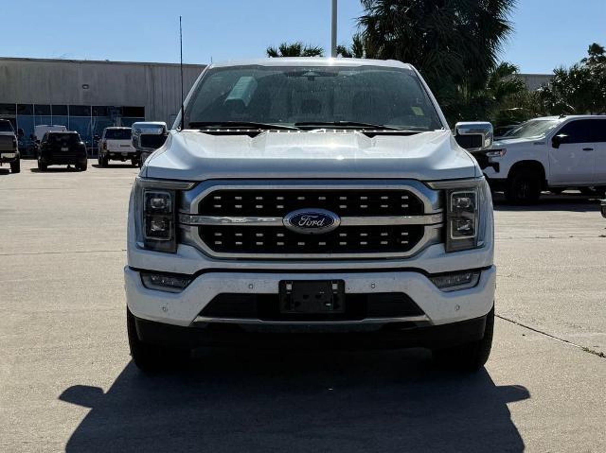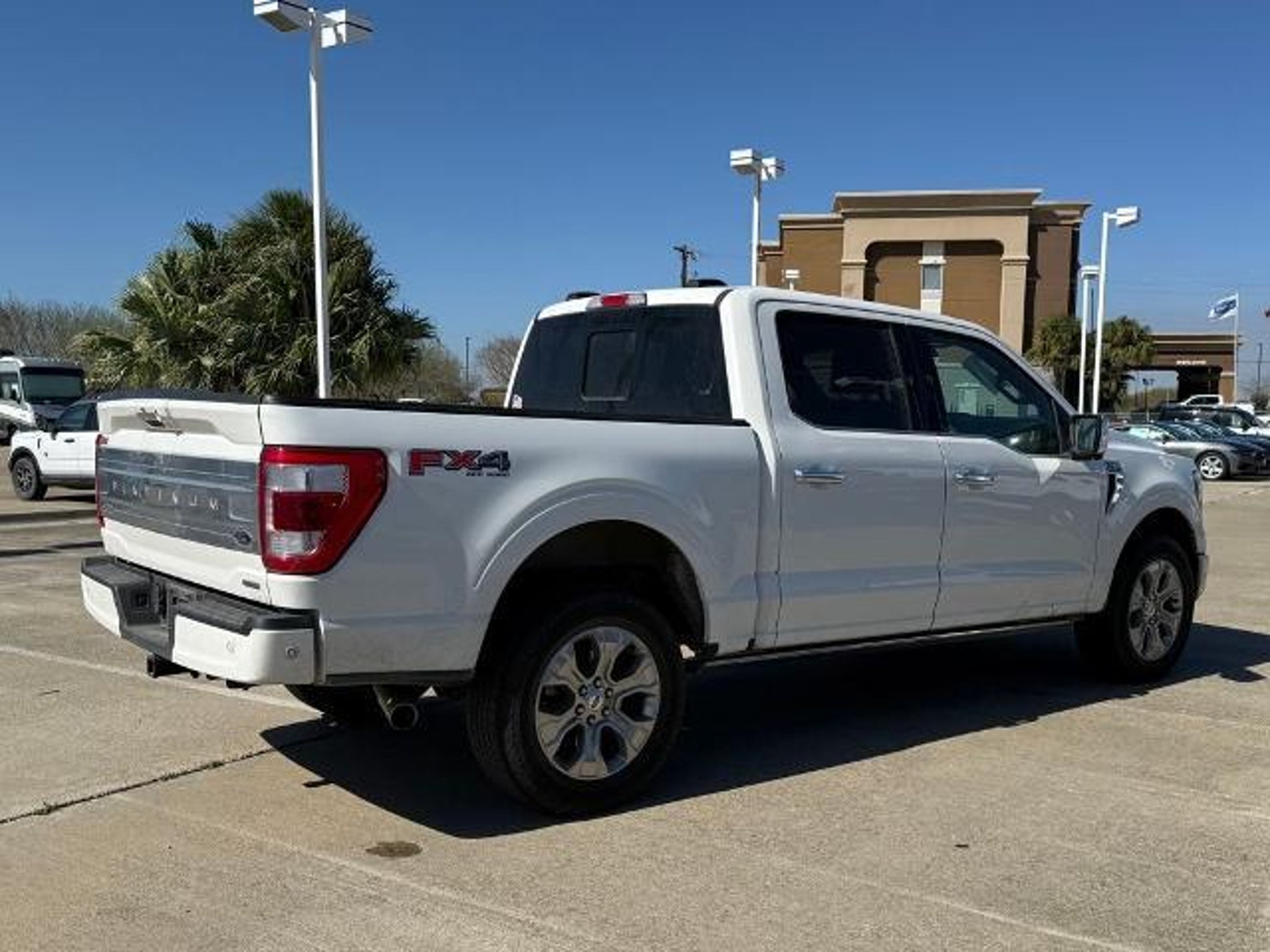 Star White Metallic Tri-Coat 2023 Ford F-150 Platinum 4WD 10-Speed Automatic 3.5L V6 EcoBoost 4WD. This vehicle comes equipped with the following features and options: Bed Utility Package (BoxLink, LED Box Lighting, Power Tailgate, and Tailgate Step w/Tailgate Work Surface), Equipment Group 701A High (360 Degree Camera, Pro Trailer Backup Assist & Pro Trailer Hitch Assist, and Radio: B&O Unleashed Sound System by Bang & Olufsen), Ford BlueCruise 1.0 (Active Park Assist 2.0), FX4 Off-Road Package (4x4 FX4 Off-Road Bodyside Decal, Hill Descent Control, Monotube Rear Shocks, Off-Road Tuned Front Shock Absorbers, Rock Crawl Mode, and Tray Style Floor Liner), Max Trailer Tow Package (Class IV Trailer Hitch Receiver, Extended Range 36 Gallon Fuel Tank, and Integrated Trailer Brake Controller), 4WD, 20 Polished Aluminum Wheels, 4-Wheel Disc Brakes, 8 Speakers, ABS brakes, Active Park Assist 2.0 Removal, Adjustable pedals, Air Conditioning, Alloy wheels, AM/FM radio: SiriusXM with 360L, Auto High-beam Headlights, Auto Start-Stop Removal (DISC), Auto tilt-away steering wheel, Auto-dimming door mirrors, Auto-dimming Rear-View mirror, Automatic temperature control, Brake assist, Bumpers: body-color, Center High-Mounted Stop Lamp CHMSL Camera Removal, Compass, Delay-off headlights, Driver door bin, Driver vanity mirror, Dual front impact airbags, Dual front side impact airbags, Electronic Stability Control, Emergency communication system: SYNC 4 911 Assist, Exterior Parking Camera Rear, Front anti-roll bar, Front Bucket Seats, Front Center Armrest, Front dual zone A/C, Front fog lights, Front reading lights, Front wheel independent suspension, Fully automatic headlights, Garage door transmitter, Heated door mirrors, Heated front seats, Heated rear seats, Heated steering wheel, Illuminated entry, Inclination/Intrusion Sensor Removal, Interior Work Surface, LED Sideview Mirror Spotlights, Low tire pressure warning, Memory seat, Multicontour Seats w/Active Motion Removal, Occupant sensing airbag, Outside temperature display, Overhead airbag, Overhead console, Panic alarm, Passenger door bin, Passenger vanity mirror, Pedal memory, Power door mirrors, Power driver seat, Power passenger seat, Power steering, Power windows, Radio data system, Radio: B&O Sound System by Bang & Olufsen, Rain sensing wipers, Rear reading lights, Rear seat center armrest, Rear step bumper, Rear window defroster, Remote keyless entry, Security system, Speed control, Speed-sensing steering, Split folding rear seat, Steering Wheel Heat Removal (D