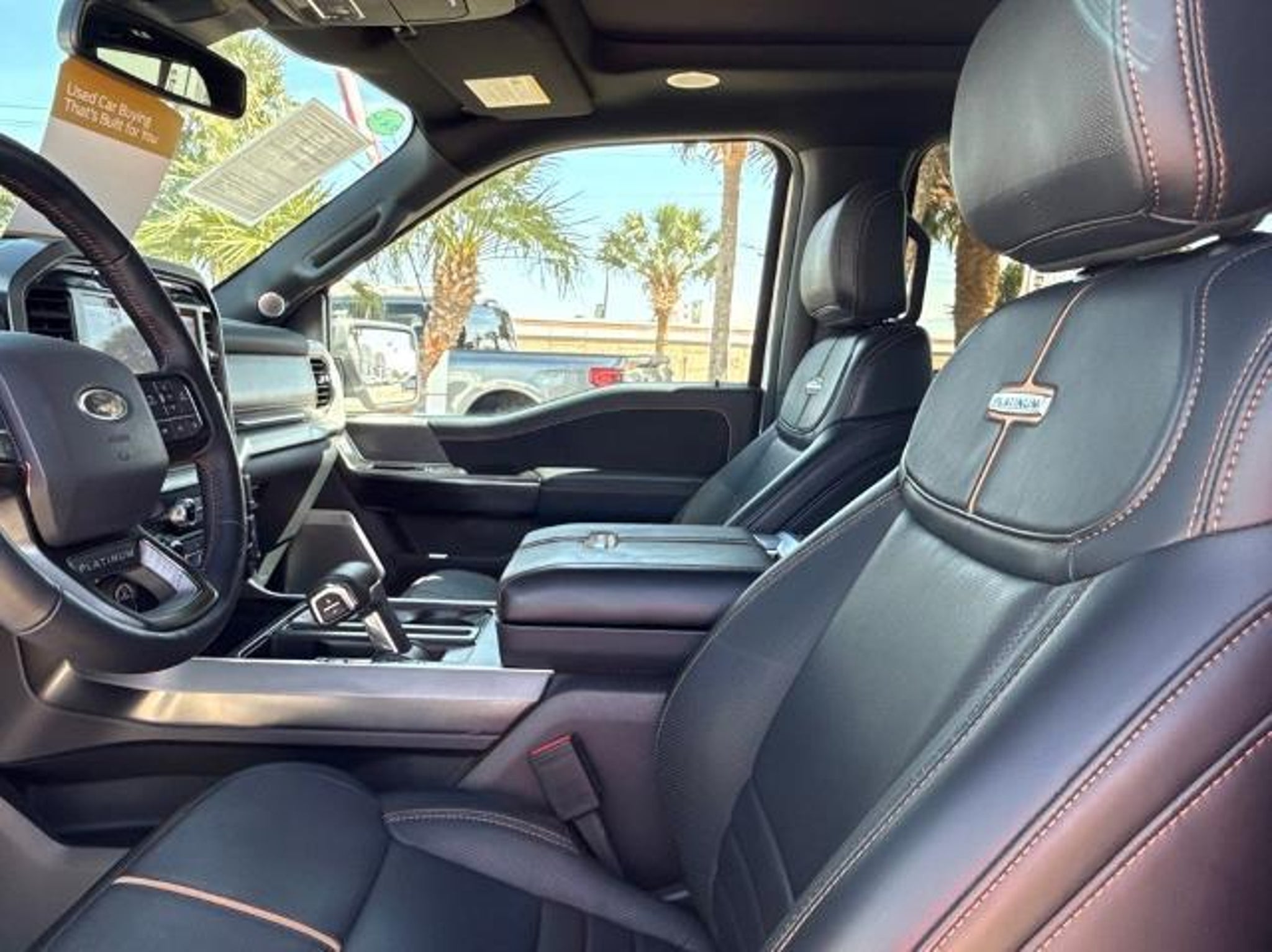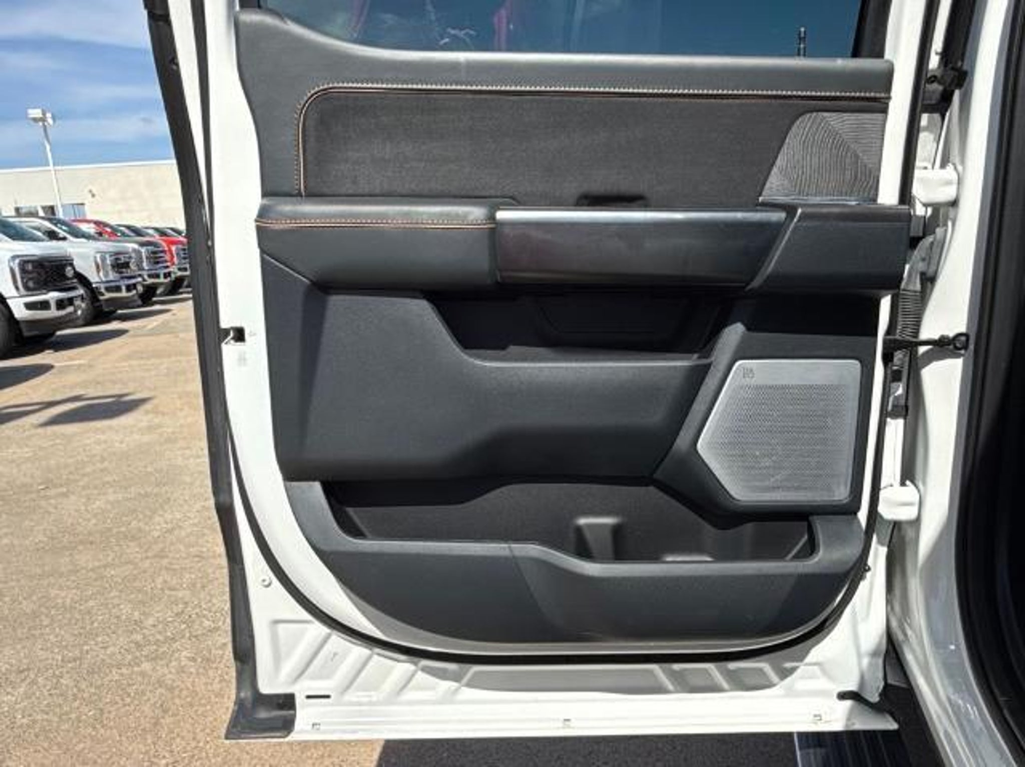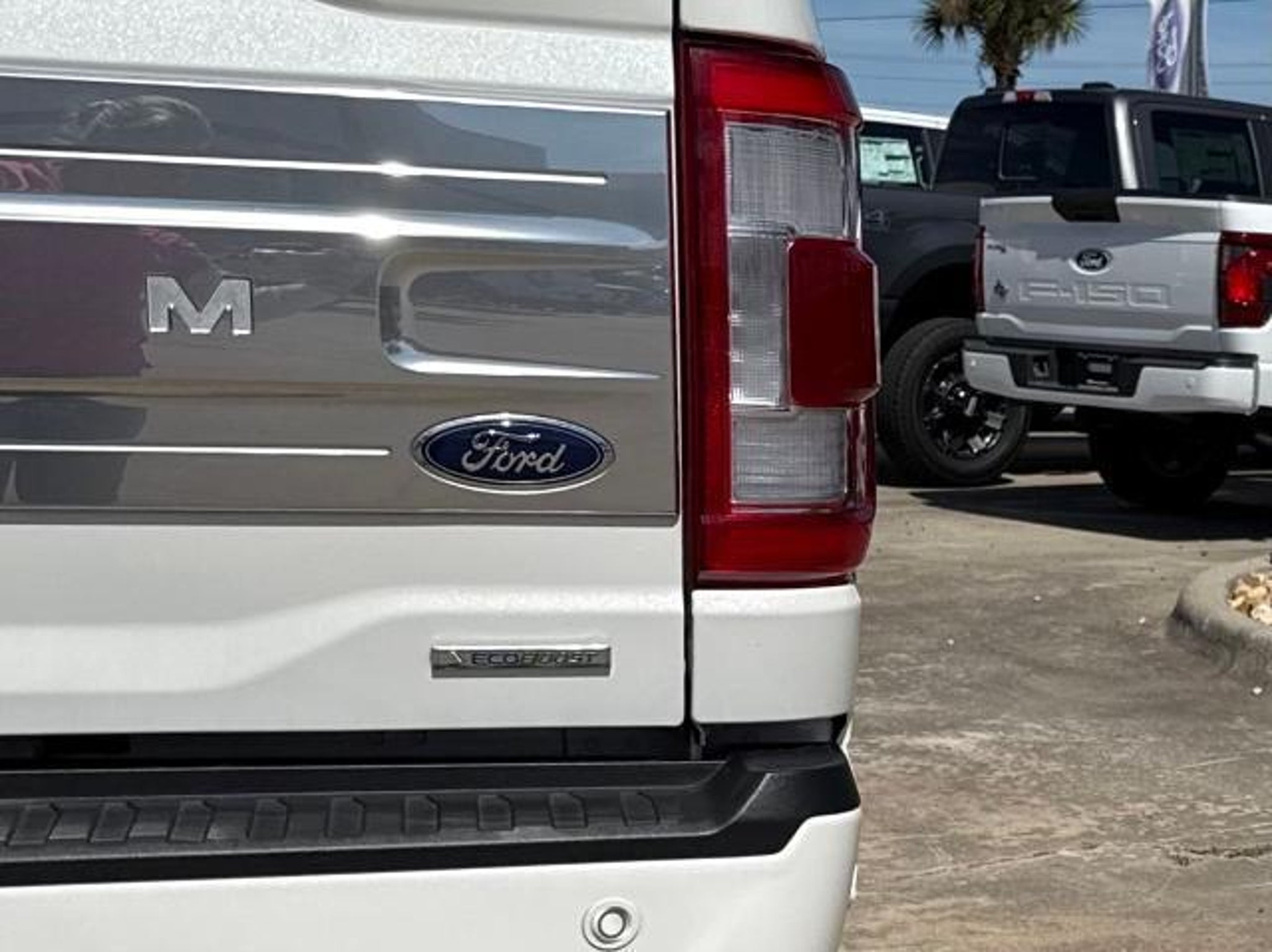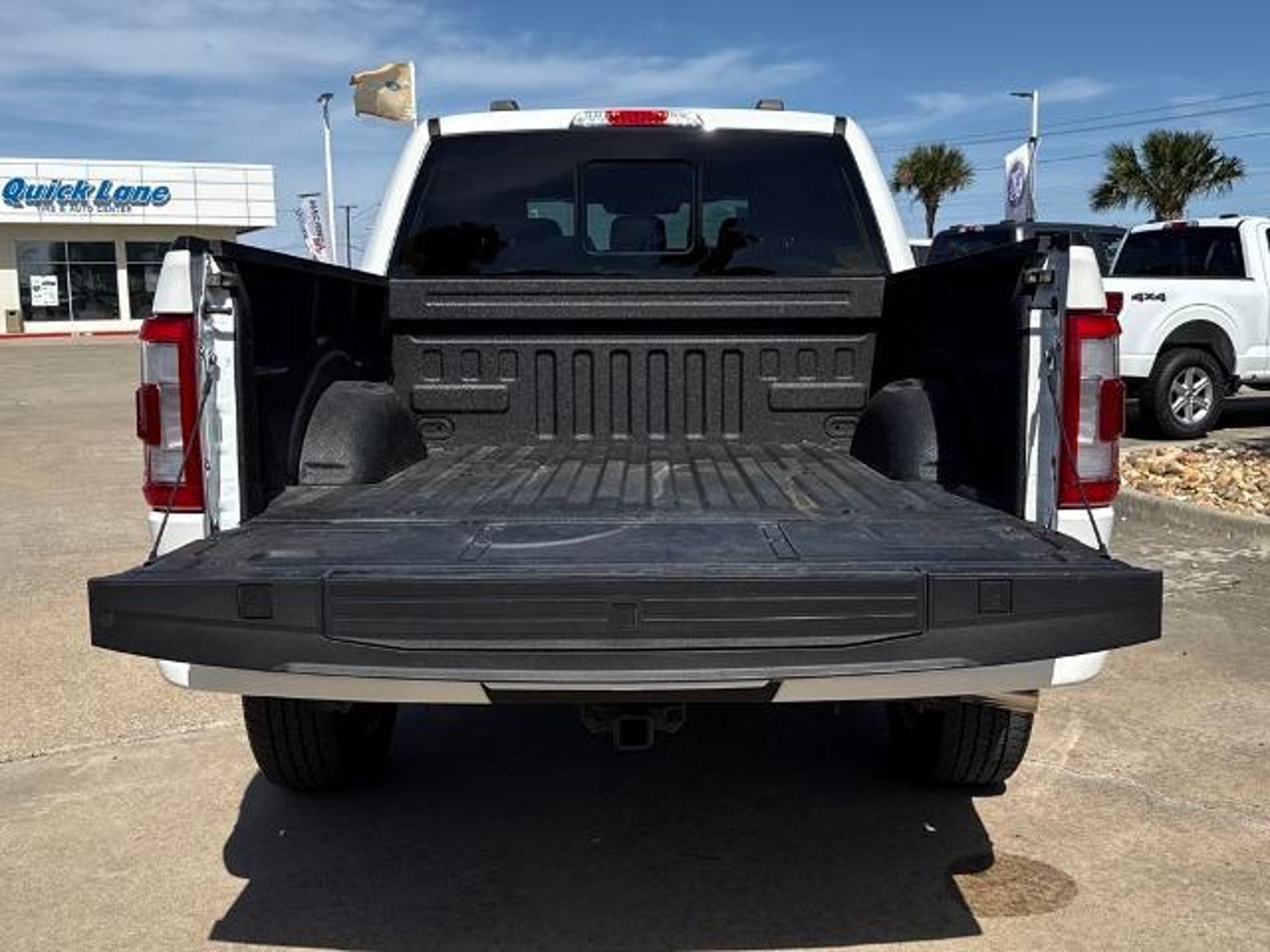 Star White Metallic Tri-Coat 2023 Ford F-150 Platinum 4WD 10-Speed Automatic 3.5L V6 EcoBoost 4WD. This vehicle comes equipped with the following features and options: Bed Utility Package (BoxLink, LED Box Lighting, Power Tailgate, and Tailgate Step w/Tailgate Work Surface), Equipment Group 701A High (360 Degree Camera, Pro Trailer Backup Assist & Pro Trailer Hitch Assist, and Radio: B&O Unleashed Sound System by Bang & Olufsen), Ford BlueCruise 1.0 (Active Park Assist 2.0), FX4 Off-Road Package (4x4 FX4 Off-Road Bodyside Decal, Hill Descent Control, Monotube Rear Shocks, Off-Road Tuned Front Shock Absorbers, Rock Crawl Mode, and Tray Style Floor Liner), Max Trailer Tow Package (Class IV Trailer Hitch Receiver, Extended Range 36 Gallon Fuel Tank, and Integrated Trailer Brake Controller), 4WD, 20 Polished Aluminum Wheels, 4-Wheel Disc Brakes, 8 Speakers, ABS brakes, Active Park Assist 2.0 Removal, Adjustable pedals, Air Conditioning, Alloy wheels, AM/FM radio: SiriusXM with 360L, Auto High-beam Headlights, Auto Start-Stop Removal (DISC), Auto tilt-away steering wheel, Auto-dimming door mirrors, Auto-dimming Rear-View mirror, Automatic temperature control, Brake assist, Bumpers: body-color, Center High-Mounted Stop Lamp CHMSL Camera Removal, Compass, Delay-off headlights, Driver door bin, Driver vanity mirror, Dual front impact airbags, Dual front side impact airbags, Electronic Stability Control, Emergency communication system: SYNC 4 911 Assist, Exterior Parking Camera Rear, Front anti-roll bar, Front Bucket Seats, Front Center Armrest, Front dual zone A/C, Front fog lights, Front reading lights, Front wheel independent suspension, Fully automatic headlights, Garage door transmitter, Heated door mirrors, Heated front seats, Heated rear seats, Heated steering wheel, Illuminated entry, Inclination/Intrusion Sensor Removal, Interior Work Surface, LED Sideview Mirror Spotlights, Low tire pressure warning, Memory seat, Multicontour Seats w/Active Motion Removal, Occupant sensing airbag, Outside temperature display, Overhead airbag, Overhead console, Panic alarm, Passenger door bin, Passenger vanity mirror, Pedal memory, Power door mirrors, Power driver seat, Power passenger seat, Power steering, Power windows, Radio data system, Radio: B&O Sound System by Bang & Olufsen, Rain sensing wipers, Rear reading lights, Rear seat center armrest, Rear step bumper, Rear window defroster, Remote keyless entry, Security system, Speed control, Speed-sensing steering, Split folding rear seat, Steering Wheel Heat Removal (D