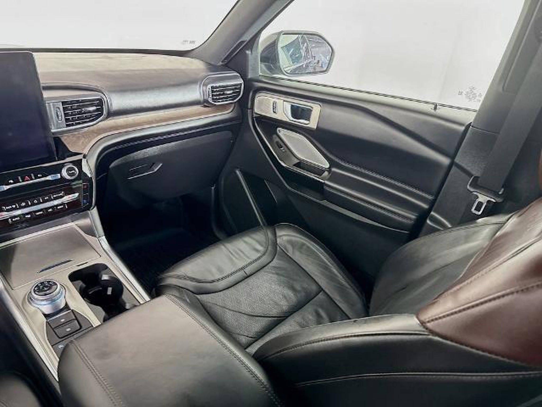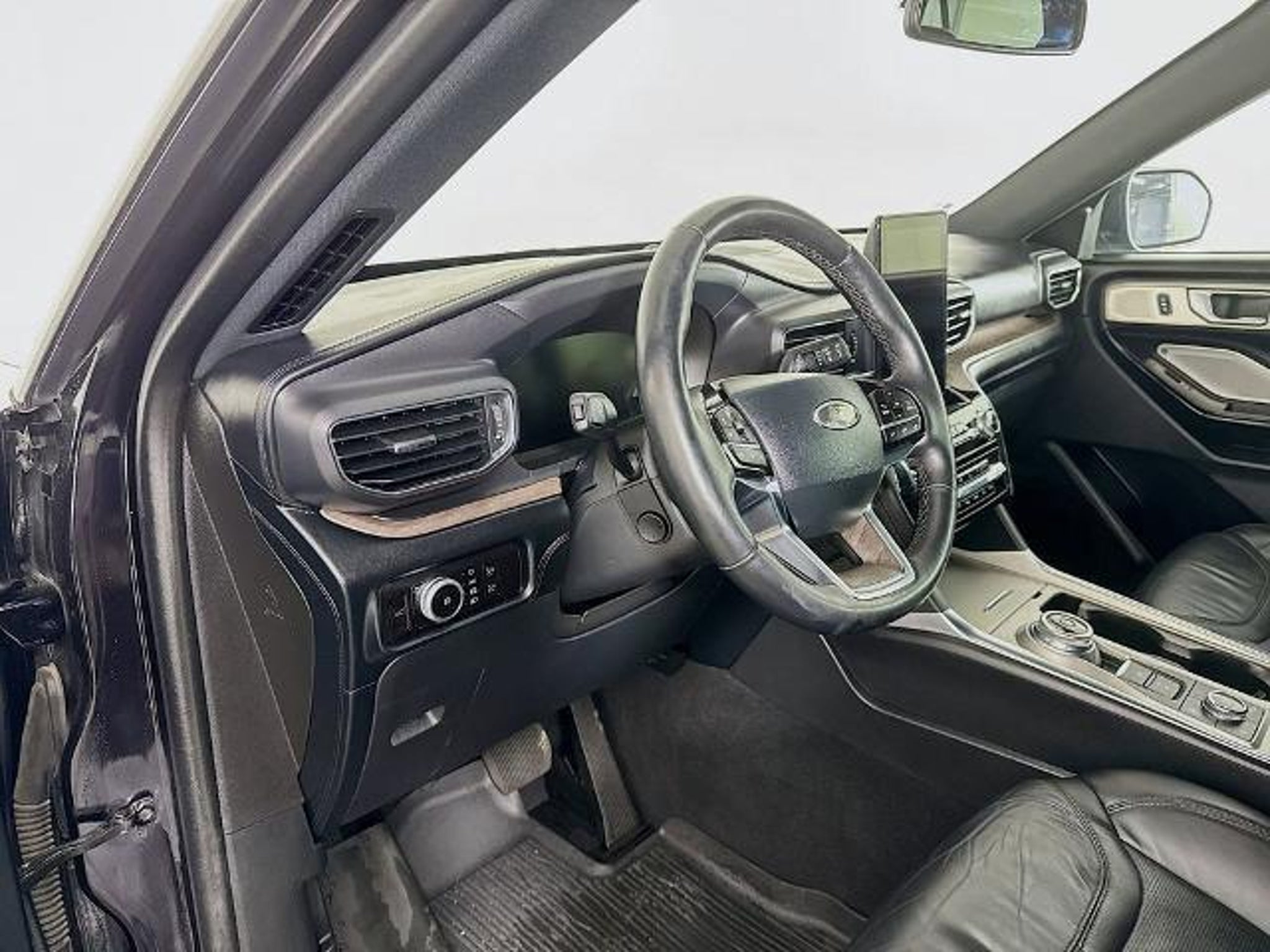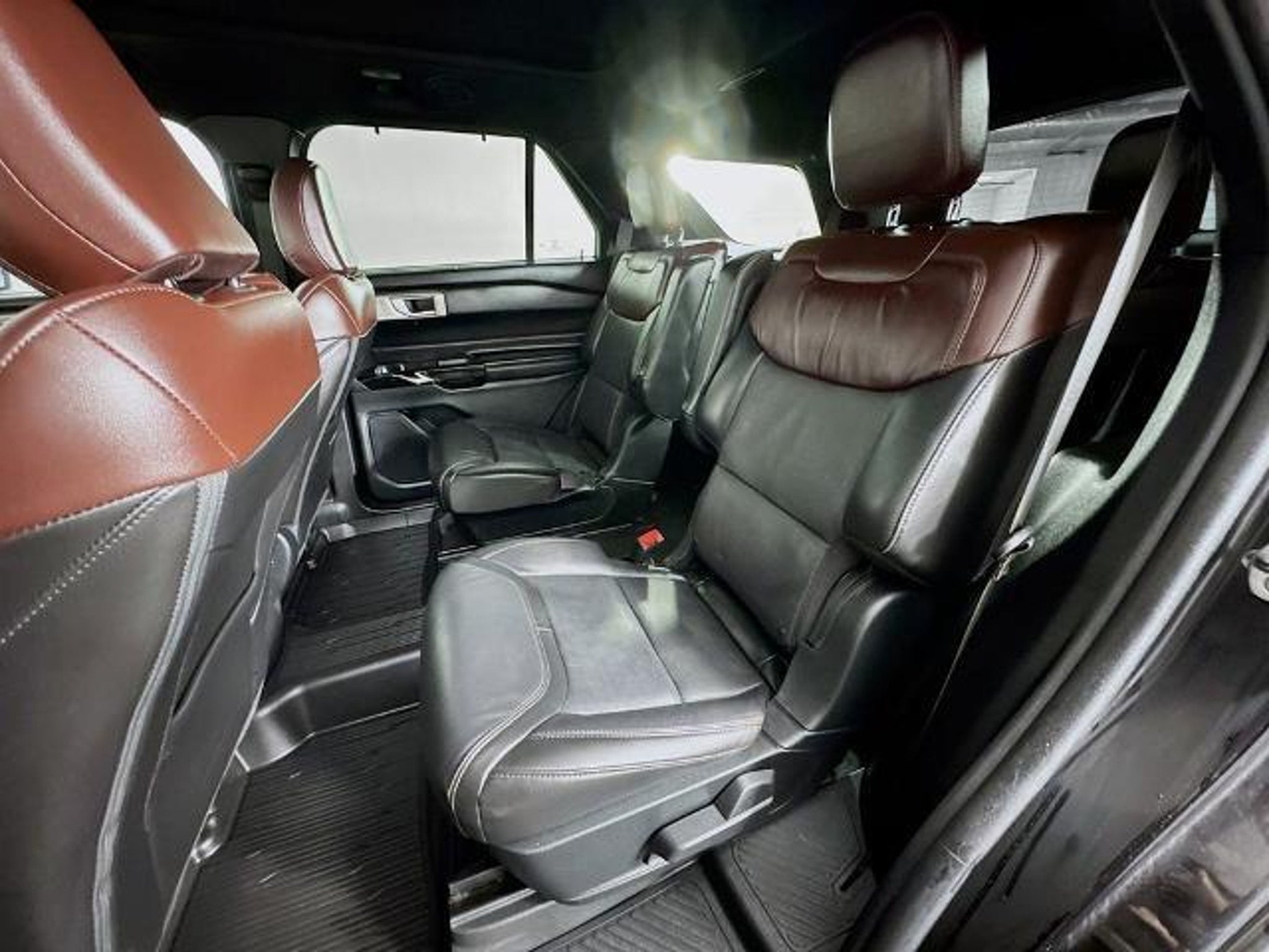 2023 Ford Explorer Platinum 4WD Powerful 3.0L EcoBoost V6 engine with smooth 10-speed automatic transmission and confident 4WD. Top-tier Platinum trim loaded with luxury: ventilated/heated leather seats, heated steering wheel, ambient lighting, 12 digital instrument cluster, 10.1 touchscreen with navigation, B&O premium audio, wireless charging, Ford Co-Pilot360 Assist (adaptive cruise, lane centering, evasive steering), 360-degree camera, remote start, power-folding third row, panoramic roof, and trailer tow package. Stunning in Agate Black Metallic with Ebony leather interior. Premium full-size SUV blending performance, tech, and ultimate comfort!