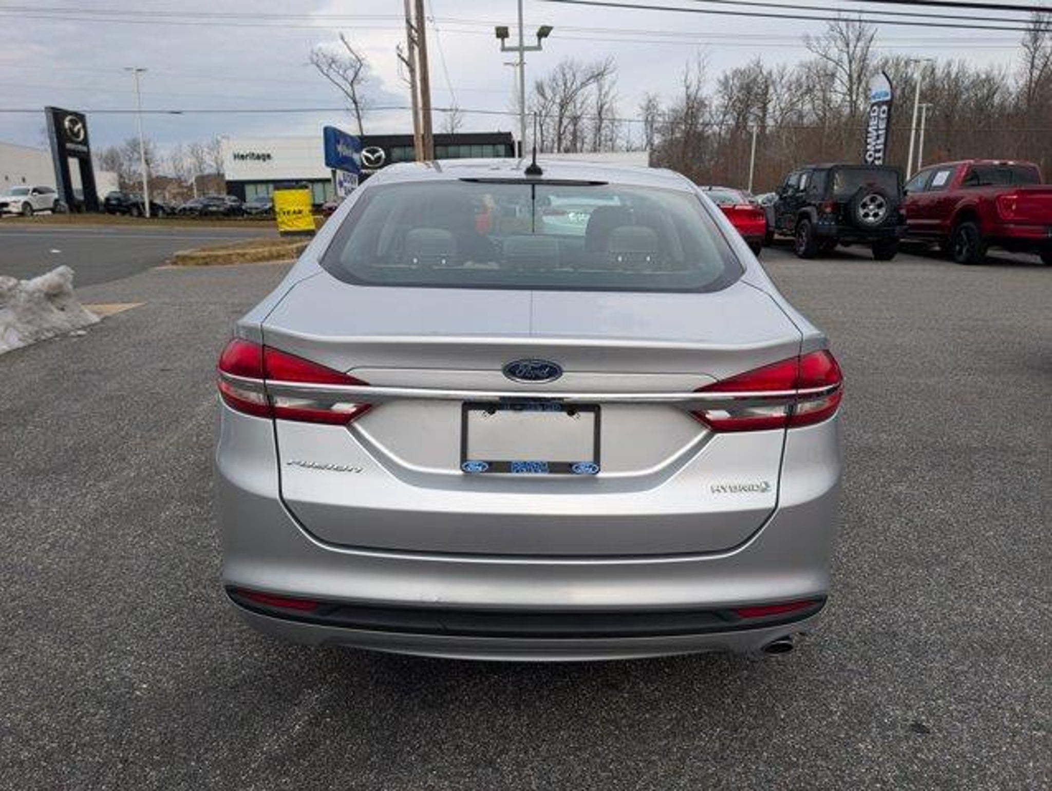 *WHY PLAZA FORD?*Plaza Ford has been family owned for 90 years and will treat you like family, with their 'True Price Integrity'.----------------------------------------*WHY THIS VEHICLE?* Blast through your daily drive with the sleek elegance of the 2018 Ford Fusion Hybrid S-its Ingot Silver exterior turning heads wherever you go. Experience effortless performance combined with economy as the 4-cylinder engine and CVT transmission work in harmony, all while enjoying a smooth, responsive front-wheel drive. Step inside to the refined Medium Light Stone interior that wraps you in comfort, ensuring every journey is as enjoyable as the destination.This vehicle has 44,195 miles and has been thoroughly inspected by our factory trained Ford service technicians and has been fully reconditioned for immediate delivery. (Plaza Ford will provide this Fusion Hybrid's CARFAX vehicle history report upon request as well.)----------------------------------------*THIS CERTIFIED VEHICLE INCLUDES:*=== Convenience === * Cruise control maintains a preset vehicle speed; automatically increasing or decreasing throttle to maintain that speed.=== Powertrain and Mechanical === * Variable valve control allows the lift, duration and/or timing of the intake or exhaust valves to be altered while the engine is in operation. * The engine configuration is four cylinders arranged in a straight line.=== Safety and Security === * The vehicle is equipped with a camera that displays an image of the area behind the vehicle on an interior display. * Brake assist senses panic braking from the speed of the brake pedal's travel and applies all available power brake boost.{buildpackages}ENGINE: 2.0L IVCT ATKINSON CYCLE I-4 HYBRID, INGOT SILVER METALLIC, MEDIUM LIGHT STONE, CLOTH FRONT BUCKET SEATS*CPO Information:* https://www.plazaford.com/ford-certified.aspx----------------------------------------As inventory sells quickly, be sure you don't miss out, give us a call at *(410) 838-3100* and make sure the vehicle is available and schedule a test drive. We are located at *1701 Belair Road, Bel Air, MD 21014 right next to the Fallston Walmart*. We look forward to seeing you soon!----------------------------------------*ABOUT PLAZA FORD:* We're on a mission to change your perception of the car-buying experience. Think of all the things you dislike about buying a car (especially in this new Corporate Dealership Ownership world): The price haggling, the games, all the hours wasted at the dealership. Now, imagine the *OPPOSITE*: That's the fami