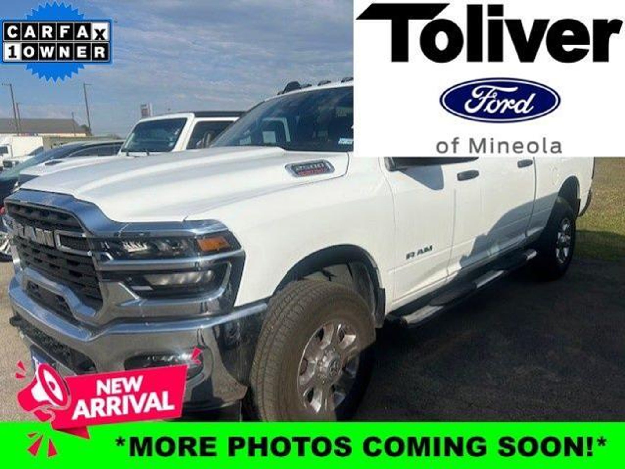 CARFAX One-Owner. 2025 Ram 2500 Big Horn 4WD 8-Speed Automatic 6.4L V8 Bright White Clearcoat Find quality, value, and confidence at Toliver Ford of Mineola, your trusted destination for pre-owned vehicles in East Texas. Our carefully selected inventory of used and pre-owned cars, trucks, and SUVs is built to deliver dependable performance for real Texas driving?whether you need a hardworking pickup, a capable family SUV, or a reliable daily driver. Conveniently located in Mineola, TX, we proudly serve Tyler, Longview, Quitman, Winnsboro, Grand Saline, Lindale, and surrounding East Texas communities. As a family-owned dealership, Toliver Ford of Mineola offers transparent pricing, small-town hospitality, and a straightforward, no-pressure buying experience. Toliver Ford of Mineola is your trusted source for quality pre-owned vehicles in East Texas, proudly serving Mineola, Tyler, Longview, Quitman, Winnsboro, Grand Saline, Lindale, and surrounding communities. Our pre-owned inventory is carefully selected to deliver reliability, value, and confidence whether you?re shopping for a dependable truck, SUV, or daily driver built for Texas roads. Most pre-owned vehicles at Toliver Ford of Mineola include our Limited Warranty with 3 months / 4,000 miles of powertrain coverage plus a 7-Day Money-Back Guarantee (see sales consultant for details and exclusions), giving you added peace of mind with your purchase. Enjoy transparent pricing, small-town hospitality, and a pressure-free buying experience from a dealership trusted across East Texas. www.ToliverFordMineola.com.