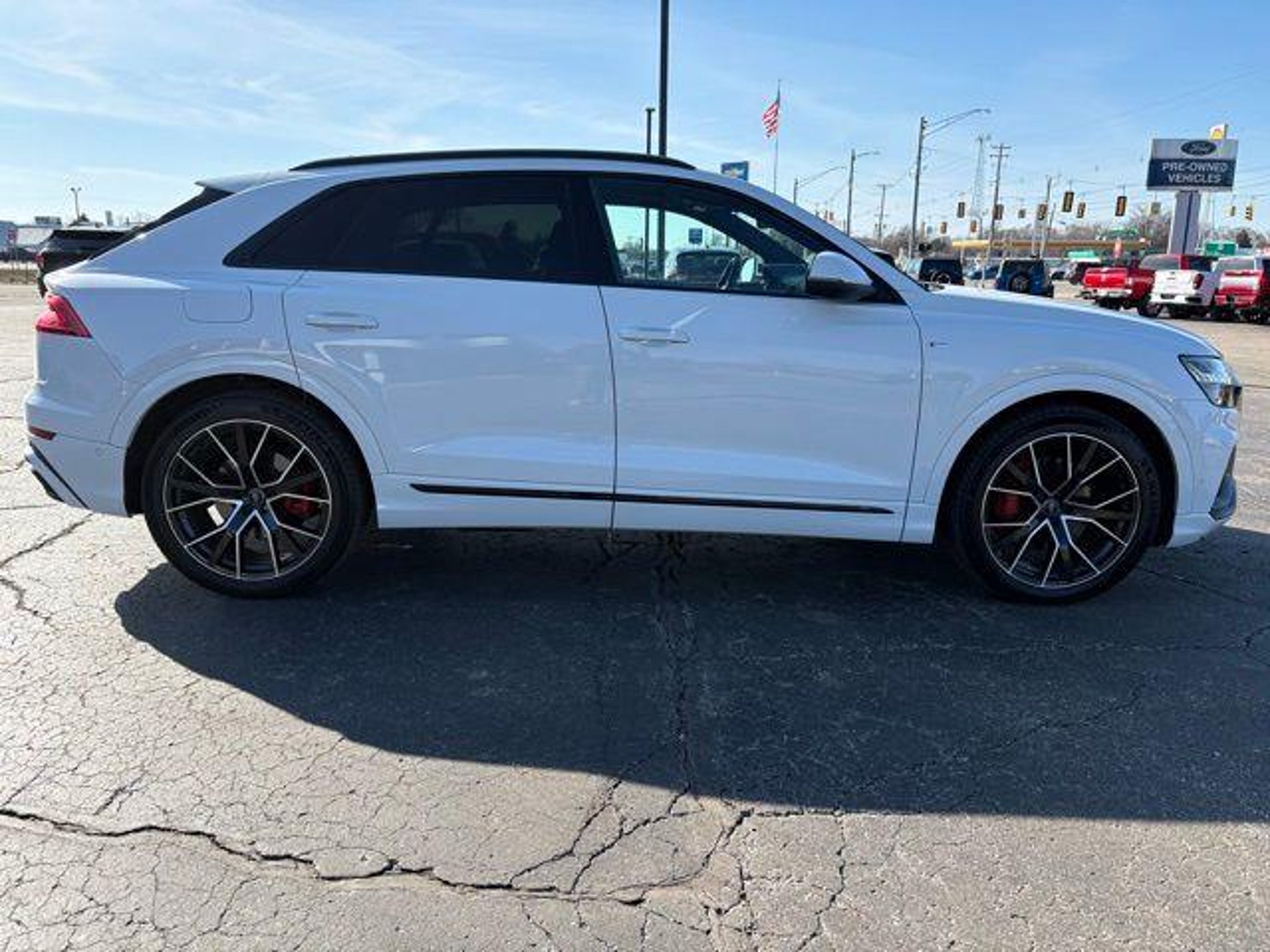 LOOKING FOR FUN AND EXCITEMENT IN AN SUV? LOOK NO FURTHER. 3.0L TURBO CHARGED V6, 335HP, HEATED/VENTED SEATS, PANORAMIC MOONROOF, LOCAL CAR Proudly serving the Holland area for over 75 years. 21 5-Segment-Spoke-Design Wheels, 4-Zone Climate Control, Alu Touch-Sensitive Interior Buttons, Audi Active Lane Departure Warning, Audi Adaptive Cruise Assist, Audi Phone Box w/Wireless Charging, Audi Side Assist w/Rear Cross Traffic Assist, Bang & Olufsen 3D Premium Sound System, Contour/Ambient LED Interior Lighting Package, Convenience Package, Driver & Passenger Front Seats w/Ventilation, Driver Assistance Package, Electric Sun Blinds for Rear Side Windows, HD Matrix-Design LED Headlights, Head-Up Display, Headlight Washers, Heated Auto-Dimming Power Folding Exterior Mirrors, Heated Front Bucket Seats, Illuminated Door Sills & Aluminum Inlays, Power Liftgate, Power moonroof, Power Soft-Closing Doors, Prestige Package, Top View Camera System, Traffic Sign Recognition, Upper Dashboard in Leather w/Stitching. Carrara White 2020 Audi Q8 55 Prestige quattro 4D Sport Utility quattro 8-Speed Automatic with Tiptronic 3.0L V6 Turbocharged DOHC 24V LEV3-ULEV125 335hp Recent Arrival!