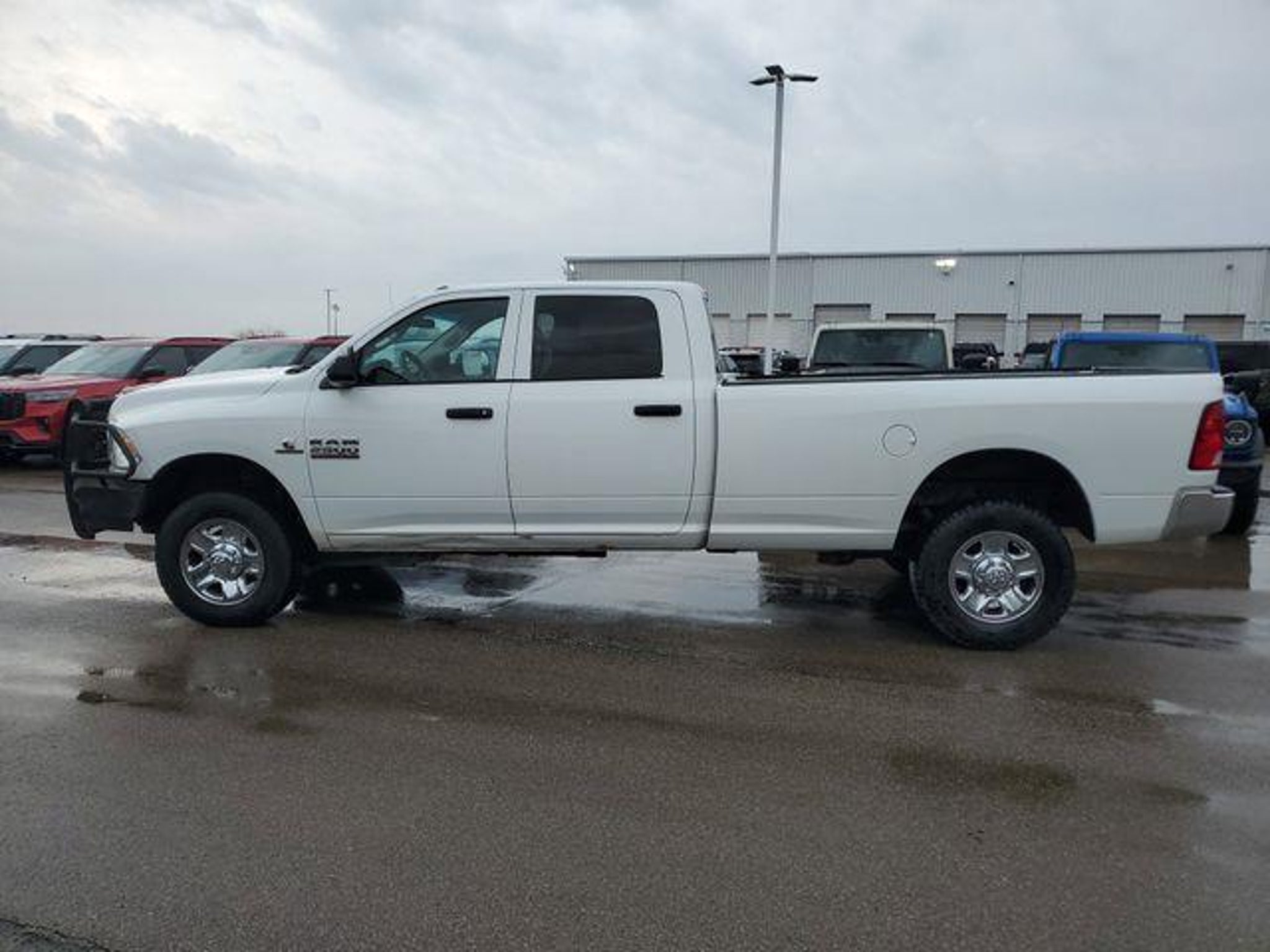 Bright White Clearcoat 2017 Ram 2500 Tradesman 4WD 6-Speed Automatic Cummins 6.7L I6 Turbodiesel Recent Arrival! This 2017 Ram 2500 Tradesman comes equipped with Chrome Appearance Group (Bright Front Bumper, Bright Grille, Bright Rear Bumper, and Wheels: 18 x 8.0 Steel Chrome Clad), Cold Weather Group (Engine Block Heater and Winter Front Grille Cover), Popular Equipment Group (1-Yr SiriusXM Radio Service, 40/20/40 Split Bench Seat, Carpet Floor Covering, Cloth 40/20/40 Bench Seat, For More Info, Call 800-643-2112, Front & Rear Floor Mats, No Satellite Coverage w/AK/HI, Rear Folding Seat, Remote Keyless Entry, and SiriusXM Satellite Radio), Protection Group, Quick Order Package 2FA Tradesman, 17 x 7.5 Steel Styled Wheels, 180 Amp Alternator, 4-Wheel Disc Brakes, 5.0 Touchscreen Display, 6 Speakers, ABS brakes, Air Conditioning, AM/FM radio, Anti-Spin Differential Rear Axle, Black Exterior Mirrors, Brake assist, Center Hub, Charge Only Remote USB Port, Delay-off headlights, Driver door bin, Dual front impact airbags, Dual front side impact airbags, Electric Shift-On-The-Fly Transfer Case, Electronic Stability Control, Electronically Controlled Throttle, Exterior Mirrors Courtesy Lamps, Exterior Mirrors w/Heating Element, Exterior Mirrors w/Supplemental Signals, Front anti-roll bar, Front Bumper Sight Shields, Front Center Armrest, Fully automatic headlights, GPS Antenna Input, Heated door mirrors, Heavy Duty Vinyl 40/20/40 Split Bench Seat, Hemi Badge, Integrated Voice Command w/Bluetooth, Low tire pressure warning, Manual Adjust Seats, Media Hub (USB, AUX), Next Generation Engine Controller, Occupant sensing airbag, Overhead airbag, Overhead Console, ParkSense Rear Park Assist System, ParkView Rear Back-Up Camera, Passenger door bin, Power Black Trailer Tow Mirrors, Power door mirrors, Power steering, Power windows, Radio data system, Radio: 3.0, Radio: Uconnect 3 w/5 Display, Rear step bumper, Rear View Auto Dim Mirror w/Display, Speed control, Storage Tray, Tachometer, Temperature & Compass Gauge, Tilt steering wheel, Tip Start, Traction control, Trailer Brake Control, Trailer Tow Mirrors, Variably intermittent wipers, and Voltmeter.