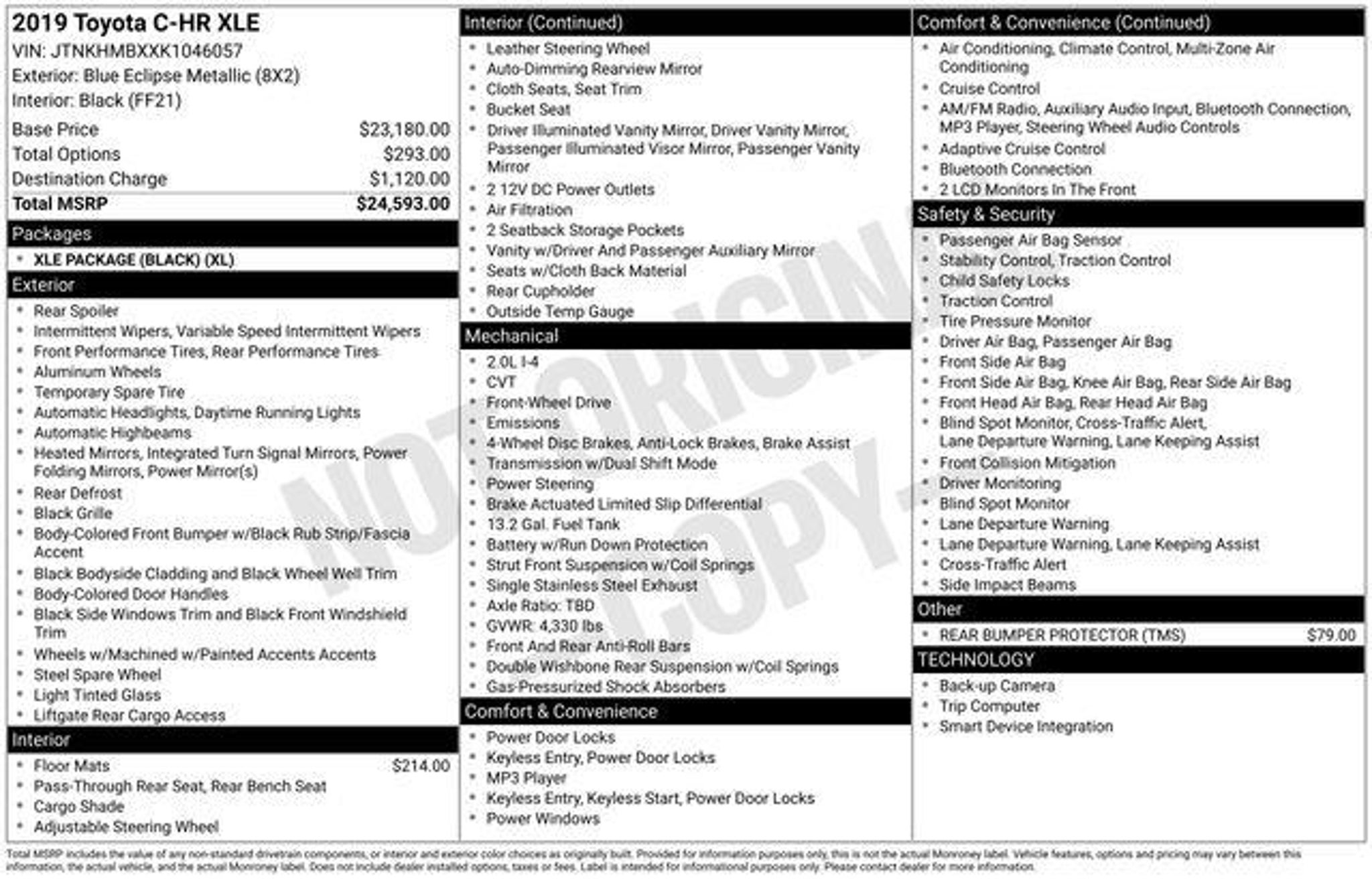 2019 Toyota C-HR LE 4DR Crossover