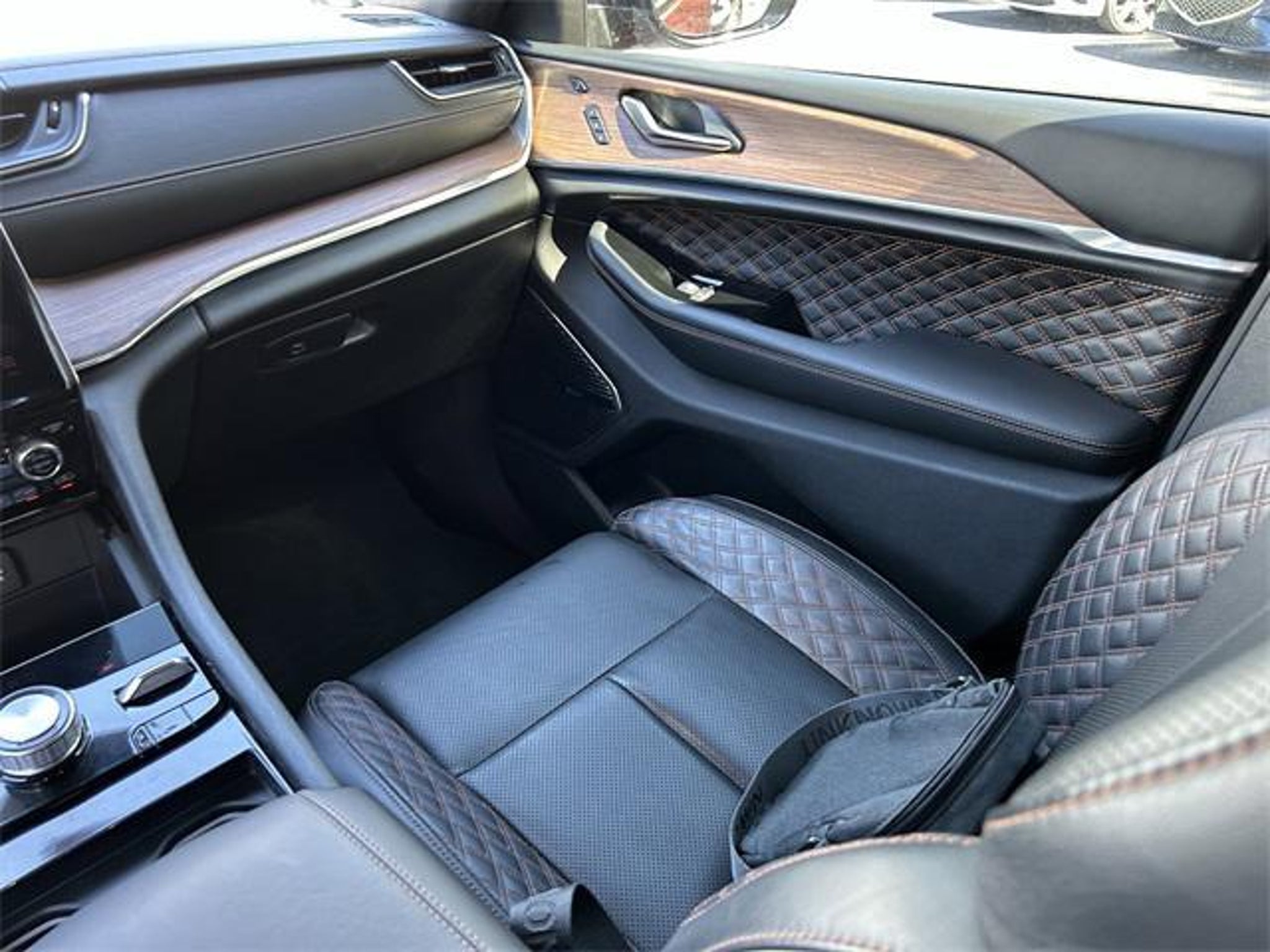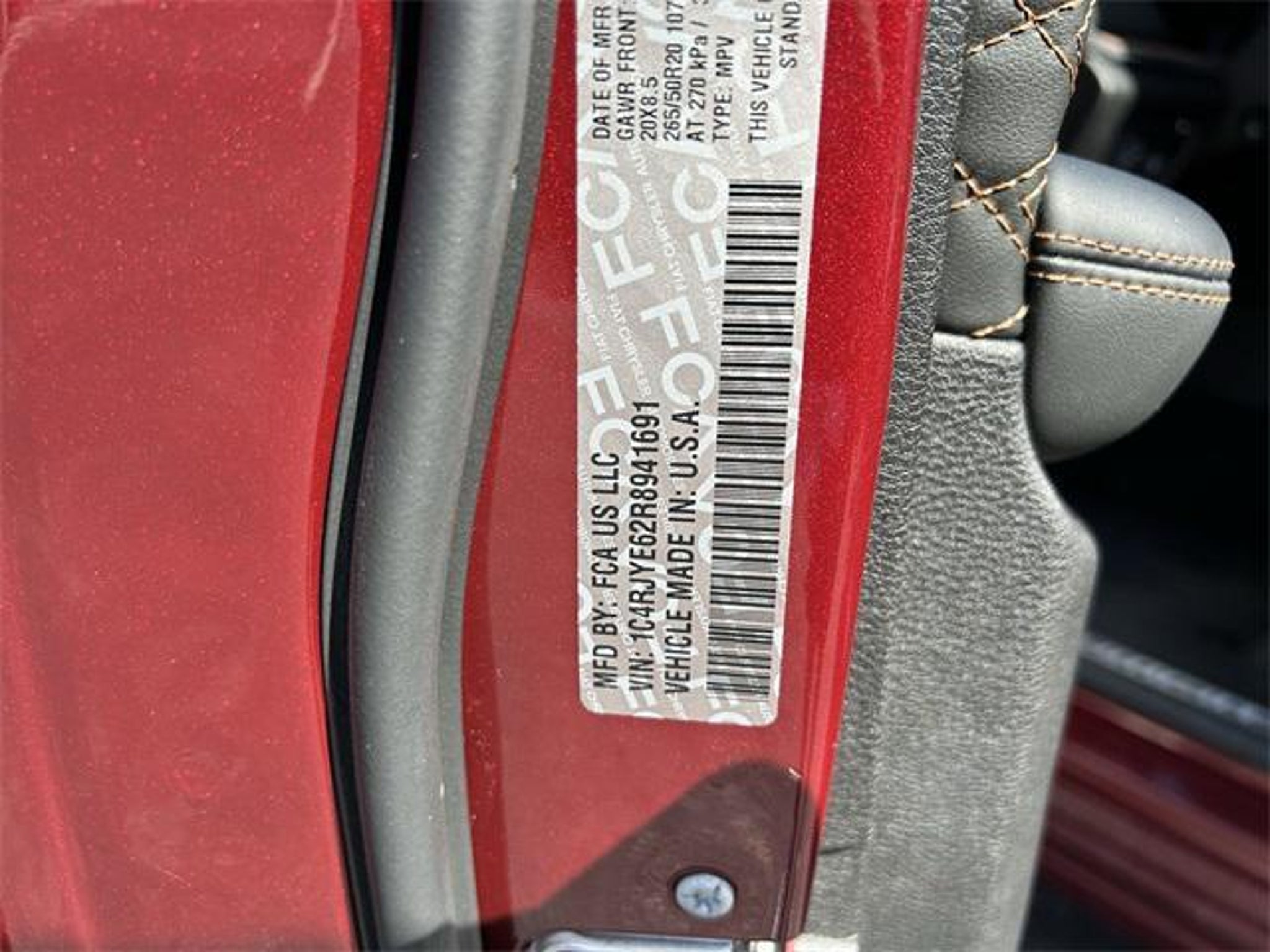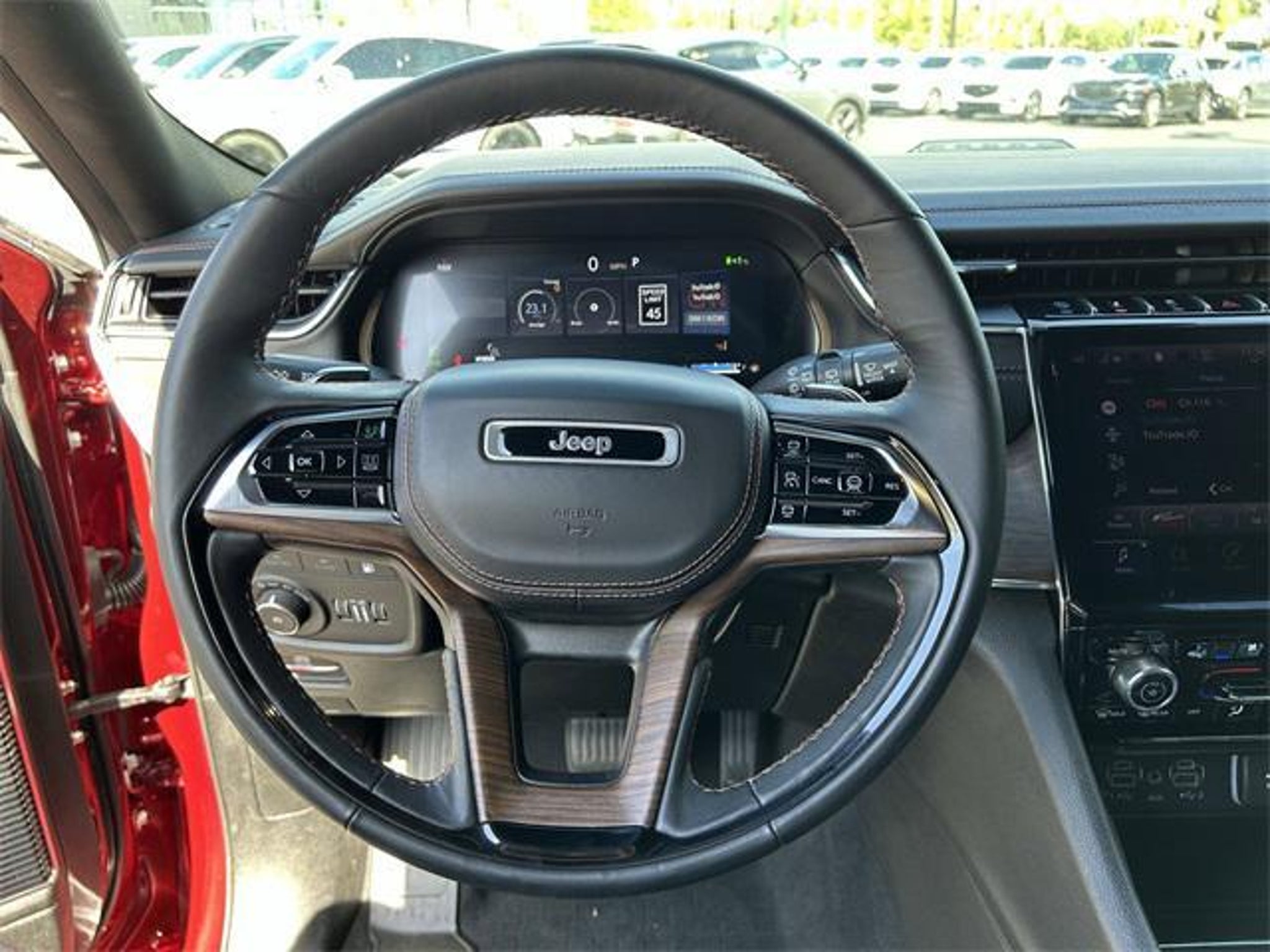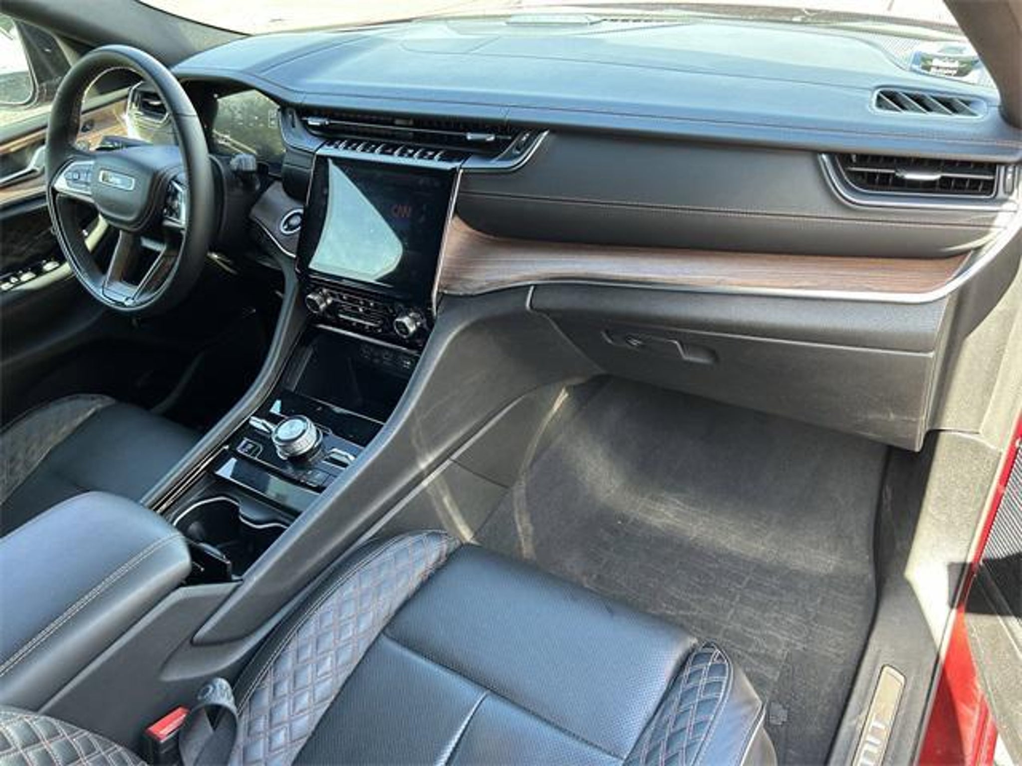 The price does not include tax, tag, license, an electronic filing fee of $449.00**, a private tag agency fee of $199.00**, and a predelivery service charge of $1199.00** **This charge represents costs and profit to the dealer for items such as inspecting, cleaning, and adjusting vehicles, as well as preparing documents related to the sale.* EPA-estimate metric: these are contingent on ideal conditions within a lab. Real-world situations such as carrying passengers or cargo, using climate control, driving style, and ambient temperatures can affect actual metrics. 2.0L I4 DOHC, 4WD. Velvet Red Pearlcoat 2024 Jeep Grand Cherokee 4WD 8-Speed Automatic 2.0L I4 DOHC This vehicle comes equipped with Advanced Protech Group IV (Heads-Up Display, Night Vision/Pedestrian-Animal Detection, and Rearview Autodim Digital Display Mirror), Quick Order Package 27T, Two Tone Paint Group, 2.0L I4 DOHC, 4WD, 19 Speakers, 3.70 Rear Axle Ratio, 4-Wheel Disc Brakes, ABS brakes, Adaptive suspension, Air Conditioning, Alloy wheels, AM/FM radio: SiriusXM with 360L, Anti-whiplash front head restraints, Audio memory, Auto High-beam Headlights, Auto-dimming door mirrors, Auto-dimming Rear-View mirror, Auto-leveling suspension, Automatic temperature control, Brake assist, Bumpers: body-color, Compass, Delay-off headlights, Driver door bin, Driver vanity mirror, Dual front impact airbags, Dual front side impact airbags, Electronic Stability Control, Four wheel independent suspension, Front anti-roll bar, Front Bucket Seats, Front Center Armrest w/Storage, Front dual zone A/C, Front fog lights, Front reading lights, Fully automatic headlights, Garage door transmitter, Genuine wood dashboard insert, Genuine wood door panel insert, Heated door mirrors, Heated front seats, Heated rear seats, Heated steering wheel, Heavy Duty Suspension, Illuminated entry, Knee airbag, Leather steering wheel, Low tire pressure warning, Memory seat, Nappa Leather Seats, Navigation System, Occupant sensing airbag, Outside temperature display, Overhead airbag, Overhead console, Panic alarm, Passenger door bin, Passenger vanity mirror, Power door mirrors, Power driver seat, Power Liftgate, Power moonroof, Power passenger seat, Power steering, Power windows, Radio data system, Radio: Uconnect 5 Nav w/10.1 Display, Rain sensing wipers, Rear air conditioning, Rear anti-roll bar, Rear dual zone A/C, Rear reading lights, Rear seat center armrest, Rear window defroster, Rear window wiper, Remote keyless entry, Security system, Speed control, Speed-Sensitive Wipers, Split folding rear seat, Spoiler, Steering wheel memory, Steering wheel mounted audio controls, Tachometer, Telescoping steering wheel, Tilt steering wheel, Traction control, Trip computer, Turn signal indicator mirrors, Variably intermittent wipers, Ventilated front seats, Voltmeter, and Wheels: 20 x 8.5 Fully Painted Aluminum Silver . Recent Arrival! Odometer is 5143 miles below market average!